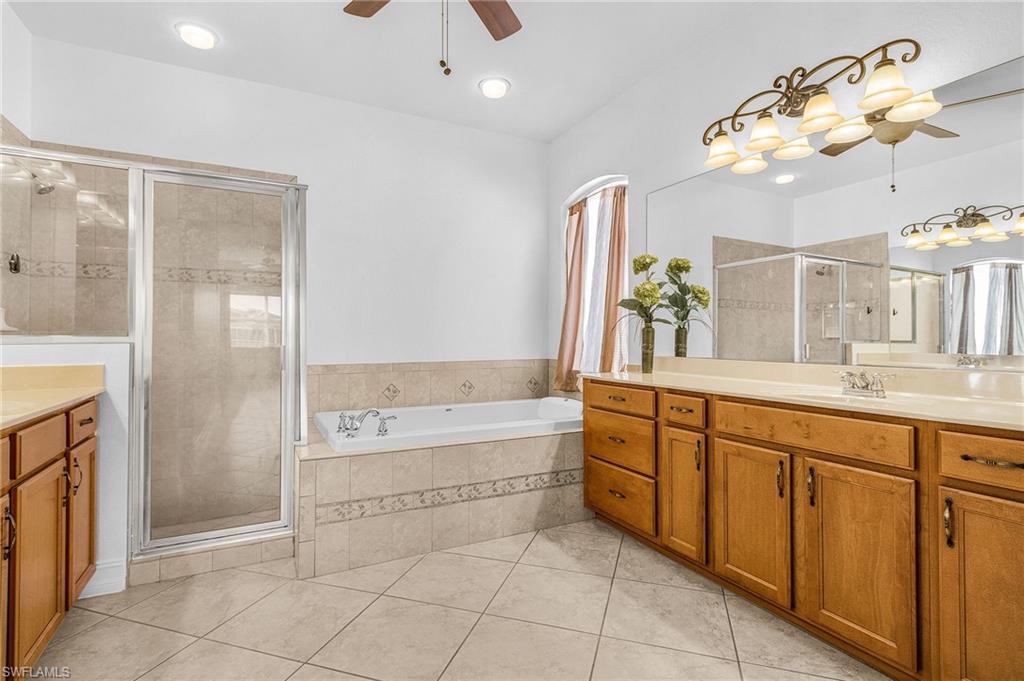 WHOLE HOUSE FRESHLY PAINTED WHITE" EPOXY GARAGE FLOOR looks beautiful. Welcome to your dream home in the highly sought-after Reflection Lakes of Naples! This single-family offers a comfortable open living space in a tranquil, gated community setting. Step inside this beautifully designed home featuring 3 spacious bedrooms, two full bathrooms, and an open-concept living area ideal for both entertaining and everyday living. The kitchen is a chef's delight featuring a breakfast area, granite countertops with seating, ample cabinetry and an open flow to the living room. The living room, bathed in natural light, opens seamlessly to a screened lanai where you can enjoy a private back yard with water lake views—a perfect backdrop for morning coffee or evening relaxation. The master suite is a private retreat complete with two large walk-in closets and a spacious en-suite bathroom featuring dual vanities, separate shower and stand alone tub and private WC. Additional highlights include a two-car garage , volume ceilings, a separate laundry room, and beautiful wood look flooring throughout. This home offers the perfect balance of convenience and luxury, located just minutes from top-rated schools, shopping, dining, and the pristine beaches of Naples. Reflection Lakes of Naples is a vibrant and picturesque residential community located in the heart of Naples, Florida. Known for its scenic beauty and serene environment, this gated community offers an array of amenities and features that cater to diverse lifestyles. As part of the Reflection Lakes community, residents enjoy access to amenities such as a resort-style pool, clubhouse, fitness center, game room, library and so much more! Surrounded by lush landscape, beautiful lakes and nature preserves residents enjoy stuffing views and a tranquil atmosphere. Whether you are looking for a peaceful retreat or an active lifestyle, Reflection Lakes of Naples provides a welcoming environment for families, retirees.