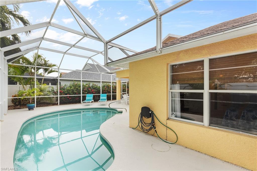 Immaculate 3-Bedroom, 2-Bath Pool Home in Sterling Oaks! Offered turnkey furnished, this charming residence is ready for you to move in and enjoy the Florida lifestyle. Features include a brand-new roof (2023), newer water heater, upgraded kitchen with granite countertops and stainless steel appliances, spacious living areas with diagonal tile, and a paver driveway that enhances curb appeal. The private sparkling pool and expansive screened lanai with sun-drenched deck create the perfect setting for relaxation or entertaining. Just a two-minute stroll to the clubhouse, enjoy resort-style amenities including a resort pool and spa with cabana bar, pickleball and bocce courts, fitness center with locker rooms and sauna, scenic walking paths, children’s play area, and a restaurant offering Friday night dinners, holiday celebrations, and special events. Located minutes from four world-class white sandy beaches, fine dining, shopping, theaters, and endless recreational opportunities, with an optional tennis membership featuring 12 Har-Tru courts, professional instruction, clinics, and team play, this home offers the ultimate combination of comfort, style, and convenience in one of Naples’ most desirable communities.
