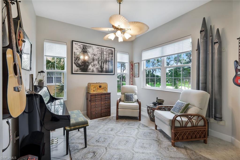 Experience elevated living in this updated residence in Merano at The Colony, where a recent community-wide transformation includes all-new exterior paint, and all new roofs. This second-floor home offers 2,748 square feet of thoughtfully designed space with three en-suite bedrooms, a den, a flexible bonus room and private elevator access. The renovated kitchen features high-end appliances, custom cabinetry, unsanded quartz countertops, a glass backsplash and a concealed drawer for added functionality. Impact windows, hurricane screens and recent mechanical updates provide lasting peace of mind — all within a historically storm surge-resistant location. Additional highlights include wiring for a generator or a possible electric vehicle charger, along with an oversized two-car garage that offers extra space for storage. Golf course views and morning sun enhance the home’s tranquil setting. Residents enjoy exclusive access to The Bay Club, a private island beach park and full suite of Pelican Landing amenities — all with one of the best social membership values in the area. This home offers modern comfort in one of Southwest Florida’s sought-after communities.