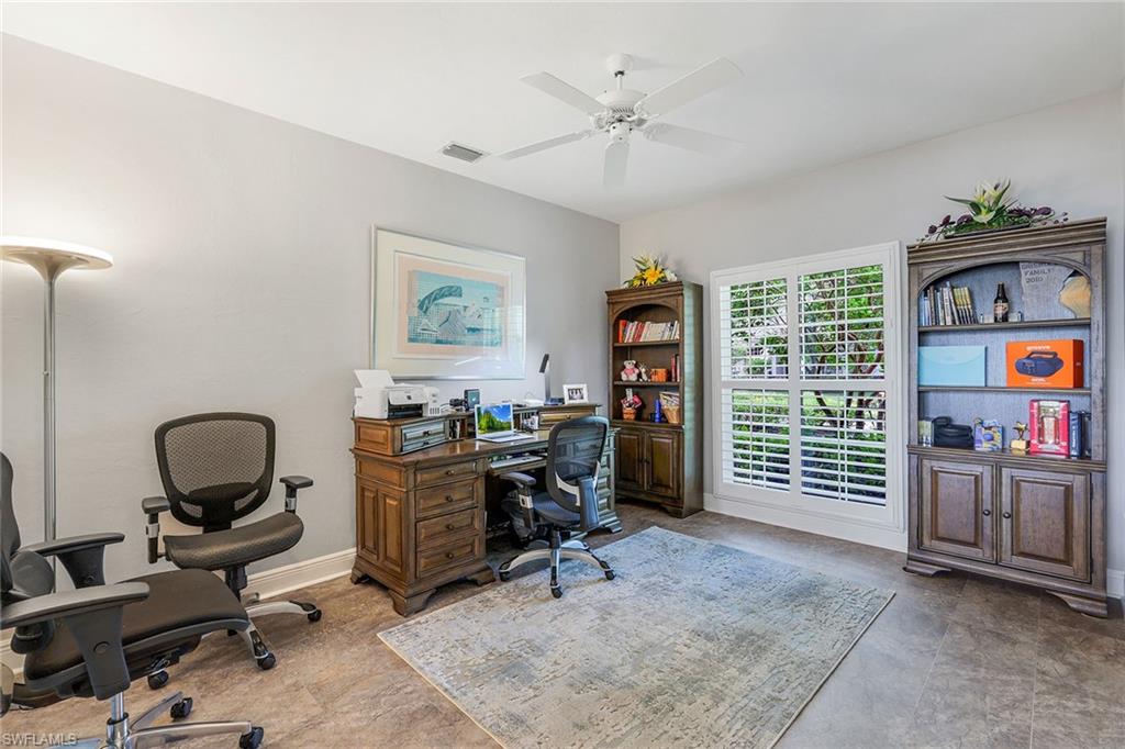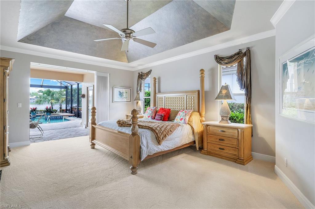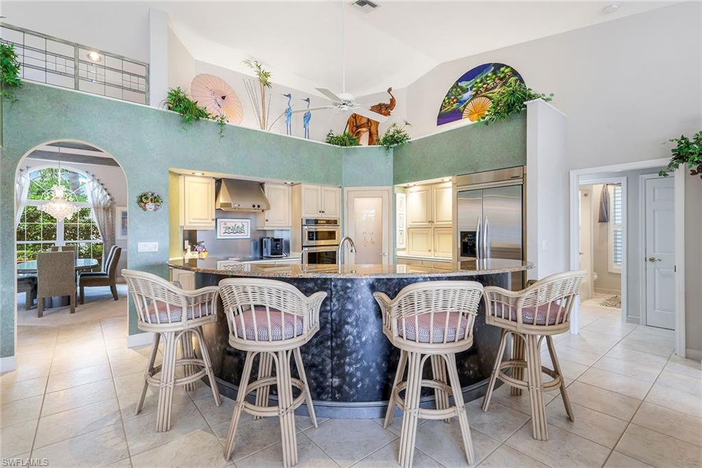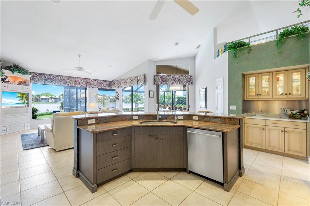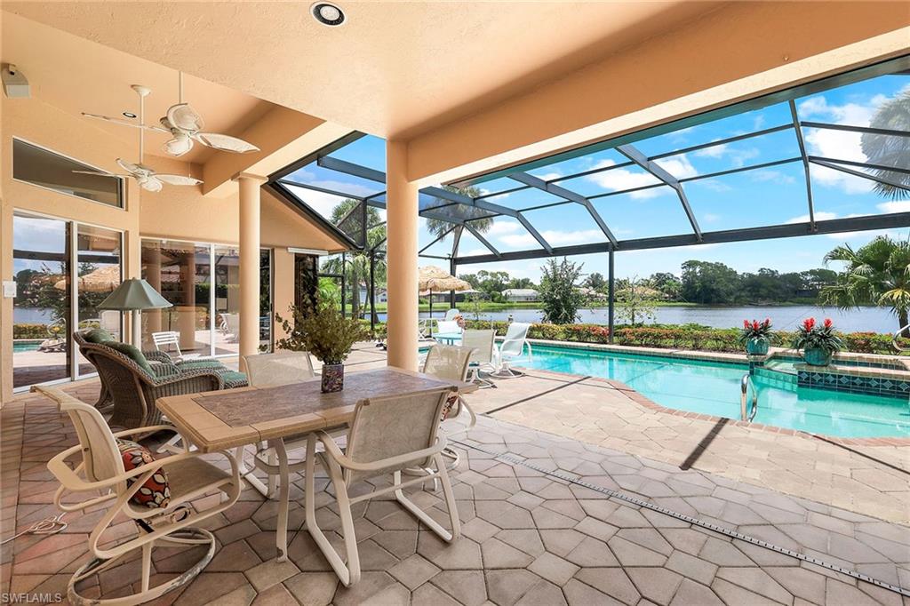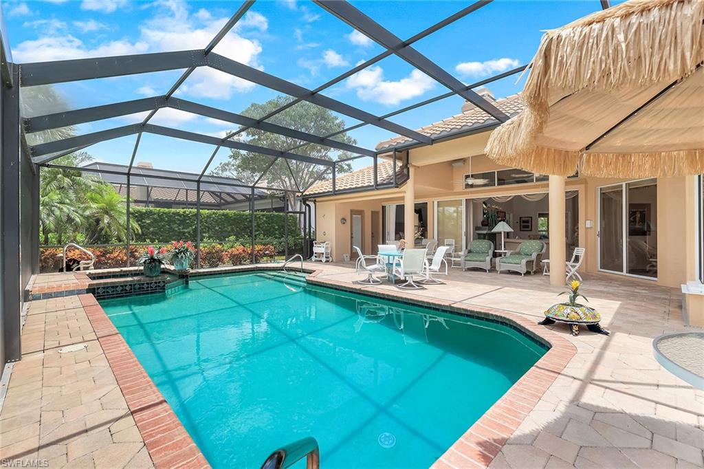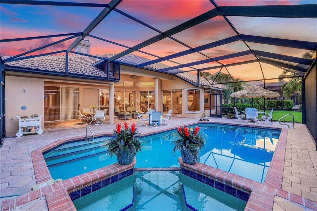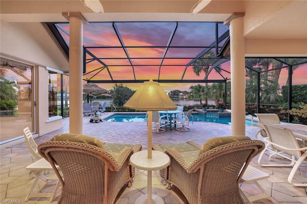 Welcome to this serene lakeside retreat in the heart of Pelican Landing, where tranquil water views serve as the ideal backdrop for refined Southwest Florida living. Known for the iconic pelican statue that greets visitors at front, this beautifully maintained residence features three bedrooms plus a den, two full baths, two half baths and a side-load two-car garage with additional storage. Thoughtfully designed with expansive ceilings and a split floor plan, the layout provides privacy and openness. A formal living room and a separate family room each offer relaxing views of the shimmering lake beyond. A wood-burning fireplace between the living room and the primary suite adds warmth and character. The gourmet kitchen includes one-piece granite countertops, a central island and a wet bar—ideal for everyday use and entertaining alike. Modern updates include replacement of all single-hung windows with impact-resistant glass (2024), a new air-conditioning system (June 2025), water heater (2023), screen enclosure (2017) and roof (2017). The primary and guest baths feature updated cabinetry, and the primary suite has been enhanced with on-trend elements. Outdoor living is elevated with an expansive screened lanai featuring a large pool, ample covered space and sweeping, unobstructed views of the lake, offering beauty and privacy. Residents of Pelican Landing enjoy access to an array of premier amenities, including a 34-acre private beach park accessible by boat shuttle, tennis and pickleball centers, a kayaking park, sailing center, community fitness center, and scenic walking and biking trails. Agents see offer instructions in remarks