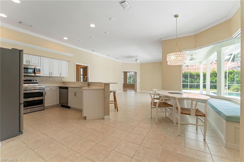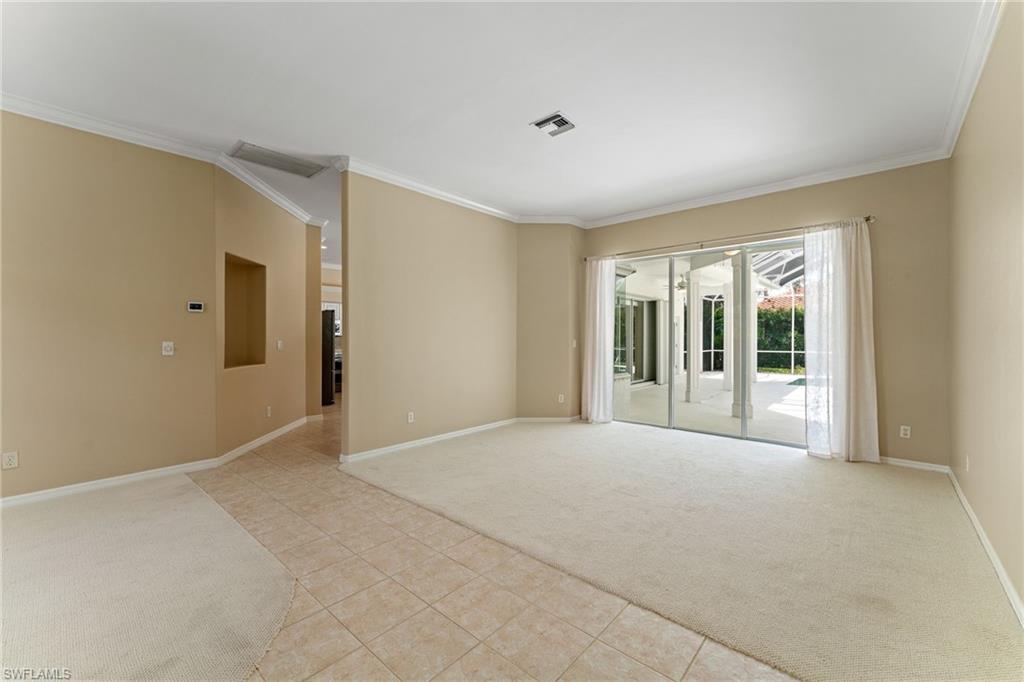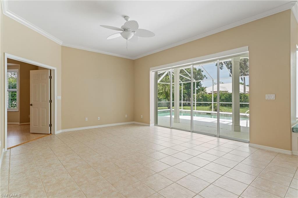Introducing this exceptional 4-bedroom, 3-bathroom residence situated on a sprawling 0.43-acre, nicely landscaped lot within the highly sought-after community of Imperial Golf Estates in Naples. Designed with comfort and functionality in mind, the expansive wide-format floor plan offers generous living space all on one level—ideal for both everyday living and entertaining. The open-concept layout seamlessly connects the living, dining, and kitchen areas, offering a versatile and inviting canvas that’s ready to be tailored to your personal style and vision. The home’s spacious interior is complemented by an abundance of natural light, creating a warm and welcoming atmosphere throughout. Step outside to the private lanai, where pool awaits—perfect for relaxing afternoons or entertaining guests in a serene outdoor setting. Oversized lot provides additional privacy and room to expand or customize the outdoor living space even further. Newer Updated, elegant tile roof. The generous 3-car garage offers ample room for vehicles, recreational gear, and additional storage—meeting all your space and convenience needs. Imperial Golf Estates is a prestigious, gated community offering an optional golf membership, giving residents access to an exceptional lifestyle without mandatory fees. The location provides unparalleled convenience, just minutes away from top-rated schools, world-class shopping and dining, and the pristine white sands of the Gulf of Mexico. With low quarterly HOA fees of just $631, this home represents an outstanding opportunity to enjoy the best of Naples living. Whether you're looking for a primary residence, a seasonal retreat, or an investment property, this home offers limitless potential in a prime Southwest Florida location. All recent updates done in 2022 & 2023 include: Painted exterior, outdoor light fixtures, front door, Lanai fans and lights, Landscape uplighting, Shutters, freshly painted garage floor and driveway, Pool Heater with remote control, Garage door motors. New A/C, Vanities and fixtures in bathrooms, Fridge, Oven and range, Dryer, Solid interior doors and roof.