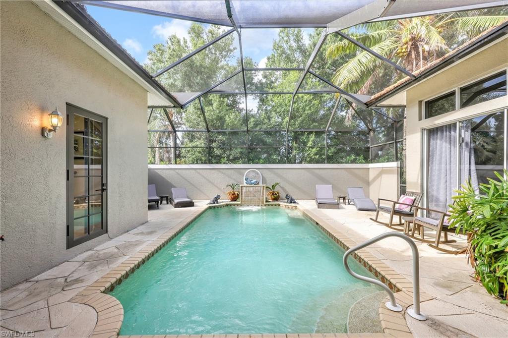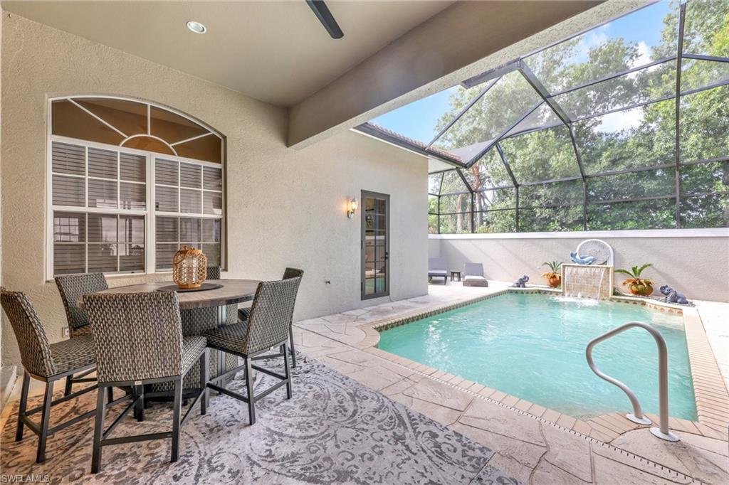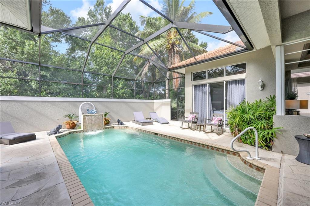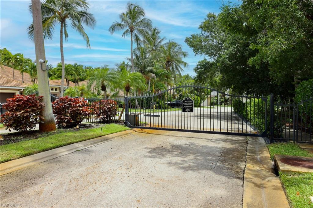 Location! Location! This beautiful 4 Bedroom/3 Bath home is situated west of 41 located in a quiet, gated, single-street cul-de-sac. This community of just 17 homes has low HOA fees of only $2000 per year. You're less than one mile from the beach, parks, and Mercato at the Strand, a hub for dining and shopping. Built in 2003, this house features a neutral color palette, making decorating a breeze. It has built-ins, crown moldings, upgraded tile, and granite throughout. It matches all the expectations of an estate home. When entering you are welcomed with a grand front entry, outdoor columns set a luxurious tone right from the start. Enjoy great natural lighting with plenty of windows and sliders, enhancing the spacious and open feel. Upgrades include a Den/4th Bedroom where there is custom wooden build-ins for storage. The master bath includes a jetted tub, shower, and dual sinks with access out to the pool area. The Master also has custom built walk-in closet. The totally remodeled kitchen has a gorgeous quartz island, stainless steel appliances, beverage cooler, custom cabinetry and a large deep sink. Other features include two HVAC Systems, Wet bar, crown molding, tray ceilings, recessed lighting, an alarm system and a laundry room with sink and granite counters. The outside courtyard area offers a beautiful heated pool with a waterfall feature, and features a privacy wall with southern exposure for ample sun and pool time. This home is Truly a cut above all the rest!