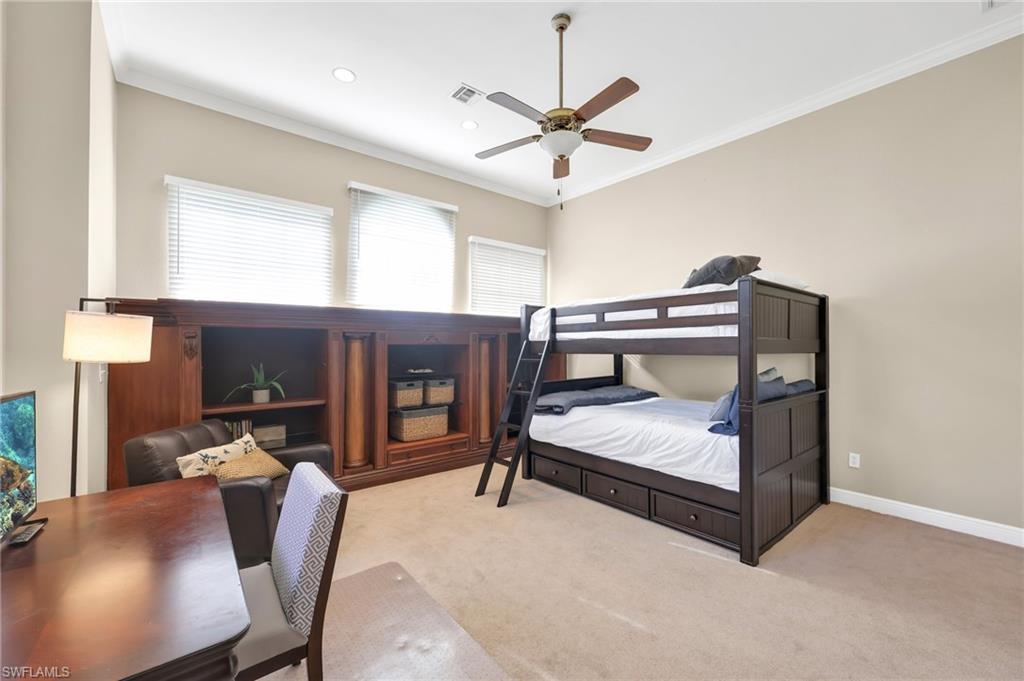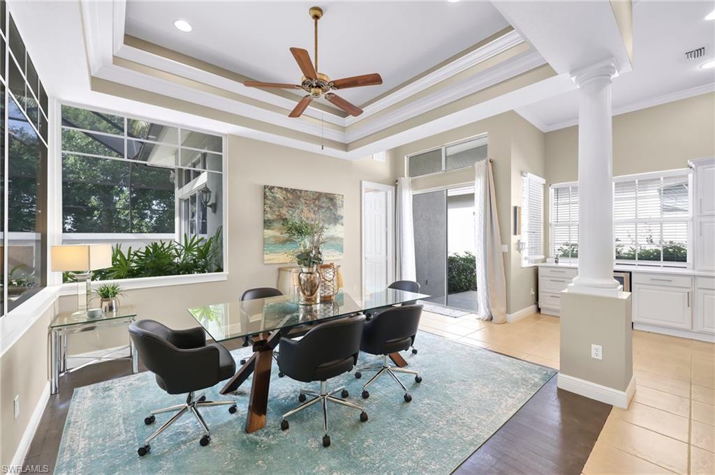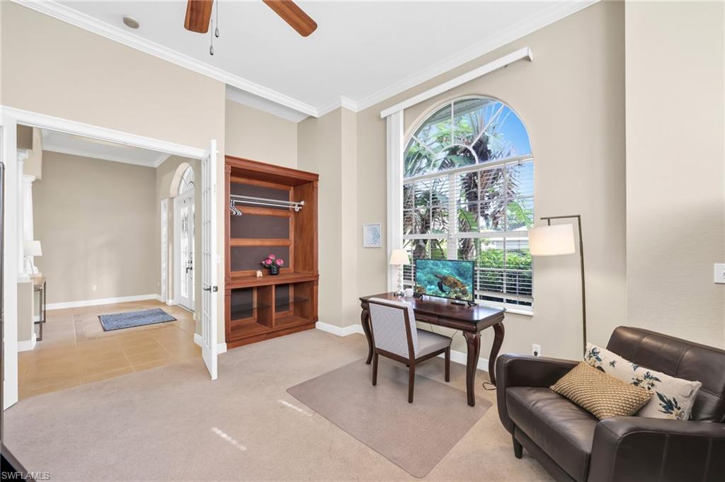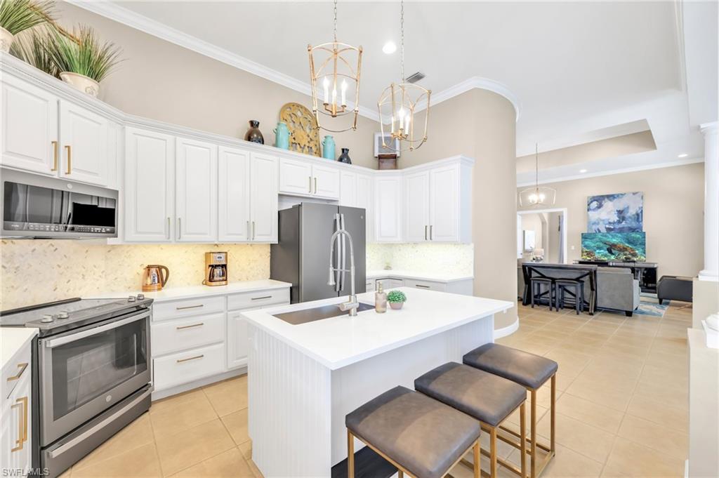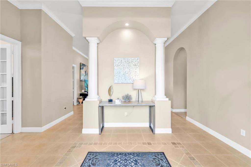 Location! Location! This beautiful 4 Bedroom/3 Bath home is situated west of 41 located in a quiet, gated, single-street cul-de-sac. This community of just 17 homes has low HOA fees of only $2000 per year. You're less than one mile from the beach, parks, and Mercato at the Strand, a hub for dining and shopping. Built in 2003, this house features a neutral color palette, making decorating a breeze. It has built-ins, crown moldings, upgraded tile, and granite throughout. It matches all the expectations of an estate home. When entering you are welcomed with a grand front entry, outdoor columns set a luxurious tone right from the start. Enjoy great natural lighting with plenty of windows and sliders, enhancing the spacious and open feel. Upgrades include a Den/4th Bedroom where there is custom wooden build-ins for storage. The master bath includes a jetted tub, shower, and dual sinks with access out to the pool area. The Master also has custom built walk-in closet. The totally remodeled kitchen has a gorgeous quartz island, stainless steel appliances, beverage cooler, custom cabinetry and a large deep sink. Other features include two HVAC Systems, Wet bar, crown molding, tray ceilings, recessed lighting, an alarm system and a laundry room with sink and granite counters. The outside courtyard area offers a beautiful heated pool with a waterfall feature, and features a privacy wall with southern exposure for ample sun and pool time. This home is Truly a cut above all the rest!