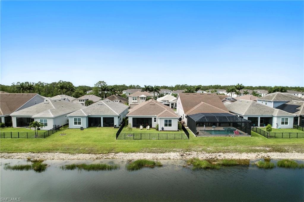 Modern, move-in ready, and effortlessly fresh—this North Naples home blends smart design with a laid-back, community-driven lifestyle. Located in the gated community of Compass Landing, this 3-bedroom + den, 2.5-bath home is full of stylish upgrades and custom touches that set it apart. Property comes with $3,000 worth of interior design services - ask the agent for details! Soaring vaulted ceilings welcome you in the entry and primary suite. The chef’s kitchen features quartz countertops, LED under-cabinet lighting, and upgraded cabinetry, while the custom birch slab desk, laundry room cabinets, framed mirrors, and built-in bench add both character and functionality. Bathrooms include tile to the ceiling and elevated finishes, and every bedroom is wired with co-ax cable and dimmer switches. Enjoy peaceful water views from every back window, a fully fenced yard with a privacy wall, a screen-enclosed lanai, and pre-wiring for a pool. Epoxy garage floors and built-in garage storage round out the thoughtful upgrades. Compass Landing offers a resort-style clubhouse, pool and spa, fitness center, shaded playground, and vibrant neighborhood events throughout the year. Zoned for Bear Creek Elementary and Gulf Coast High School. And when it’s time for dinner or drinks? Hop on your golf cart, bike, or ride over to nearby Founder’s Square—it’s all just minutes away.
