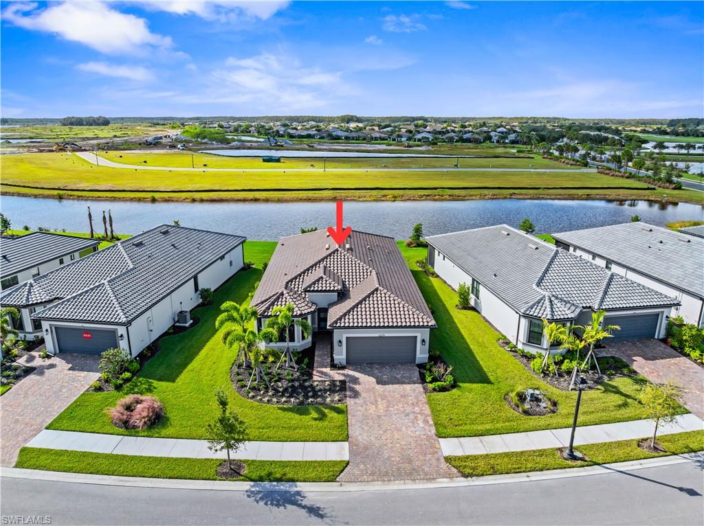 This Mystique floorplan offers 2 bedrooms, 2 bathrooms, a versatile den, and a spacious two-car tandem garage—perfect for additional storage, a workshop area, or even a golf cart. Designed with both function and elegance in mind, this home features an extended covered lanai with zero-corner sliding glass doors for seamless indoor-outdoor living and is pre-wired for an outdoor kitchen and pool or spa. The owner’s suite is a true retreat, showcasing an oversized walk-in shower with upgraded tile and frameless glass. The kitchen boasts built-in appliances, gray cabinetry paired with quartz countertops, and 12"x24" tile flooring that flows throughout the home. Additional upgrades include a full laundry room with cabinetry, countertops, and a sink; 8-foot interior doors; 5" upgraded baseboards; impact windows; a tile roof; and epoxy-finished garage floors. Located in Del Webb Naples, a premier 55+ resort-style community, residents enjoy access to over 30,000 square feet of amenity space across two stunning clubhouses: The Oasis Club and Grand Hall. The community is home to an 18-hole championship golf course (optional membership), two resort-style pools including an 8,000 sq. ft. beach-entry pool and a lap pool, a fitness center, movement studio, golf simulator, fire pit lounge, and The Rusty Putter Bar & Grille. Outdoor enthusiasts will love the 12 lighted pickleball courts, tennis courts, bocce ball courts, community garden, and miles of walking and biking trails. With a full calendar of events—including game nights, fitness classes, arts & crafts, and social gatherings—Del Webb Naples offers an unmatched lifestyle designed for relaxation, recreation, and connection. Live the active adult lifestyle you’ve dreamed of in a beautifully upgraded new home. Photos are from a furnished model. Options for this home may vary.
