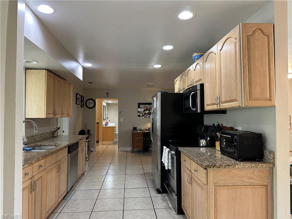 Spacious 3-bedroom, 2-bath pool home featuring two primary suites and an attached 2-car garage. The open layout includes 18" tile flooring throughout, a large kitchen with granite countertops and stainless steel appliances, and three sets of impact-rated French doors that open to a screened lanai and kidney-shaped pool — perfect for indoor-outdoor living. High-impact windows add to your peace of mind, while one of the primary suites offers a massive walk-in closet. Located in a quiet, established neighborhood with a voluntary HOA of just $50 per year and no rental restrictions, this property offers exceptional flexibility for full-time residents, seasonal use, or investment. Conveniently close to 5th Avenue, world-class beaches, fine dining, shopping, and everything Naples has to offer.