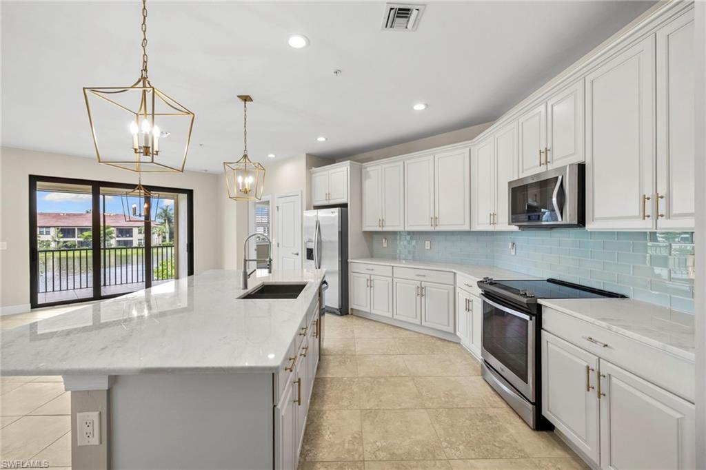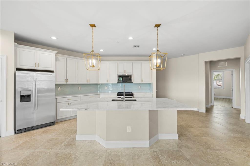 Spacious and stylish 2nd floor condo in desirable Livingston Lakes in north Naples. Welcome to this beautifully maintained 2nd floor condominium in the highly sought-after community of Livingston Lakes. Boasting nearly 1,800 square feet of living space, this spacious residence features elegant updates, including stunning marble kitchen countertops and upgraded designer lighting. Enjoy the Florida lifestyle from your large private screened lanai with lighted water feature just outside your lanai, perfect for relaxing or entertaining. The home also includes tile and luxury vinyl, a convenient separate laundry room, a third bedroom/home office, electric storm shutters and an open-concept layout that maximizes space and natural light. Livingston Lakes offers a vibrant, active lifestyle with a well-appointed clubhouse, state-of-the-art fitness center, below-ground heated pool with private cabanas with a separate area featuring a fountain and outdoor fireplace and a calendar full of regular social events. Located just minutes from top-rated restaurants, upscale shopping and everything North Naples has to offer.