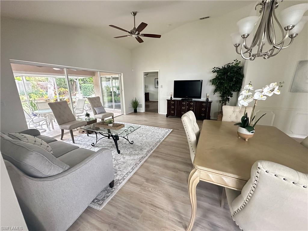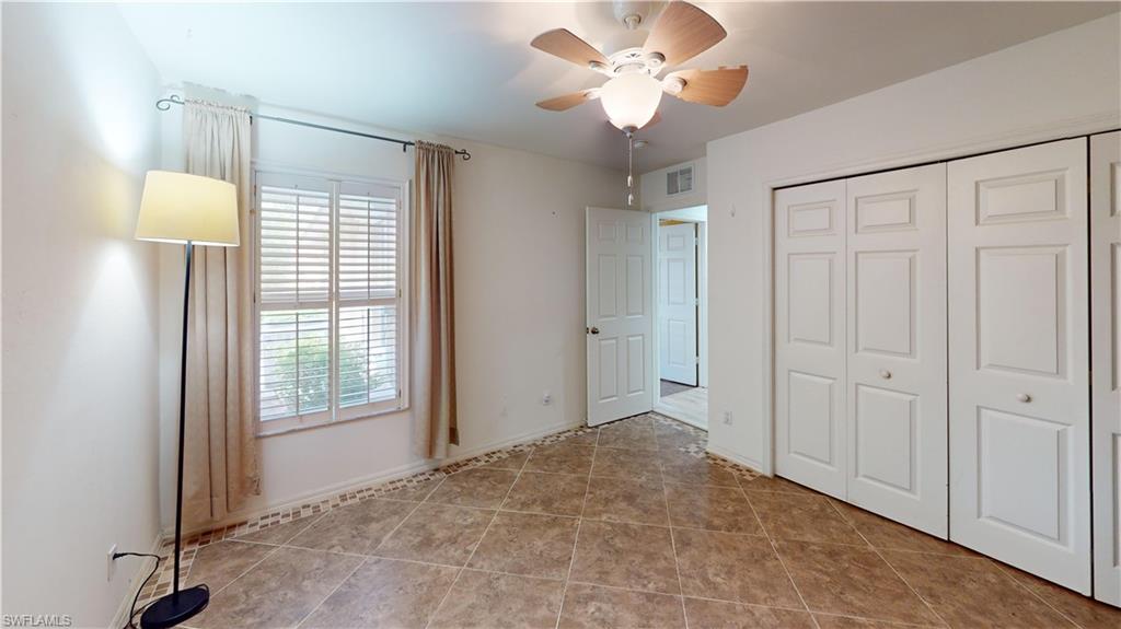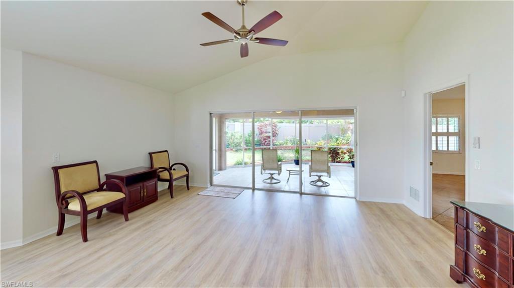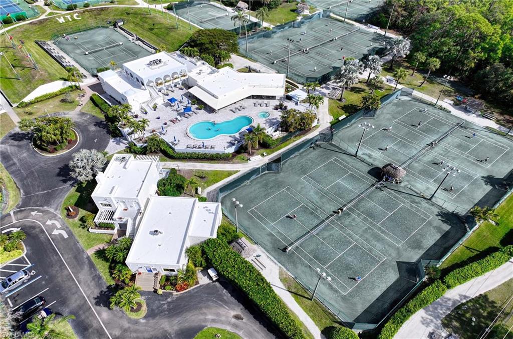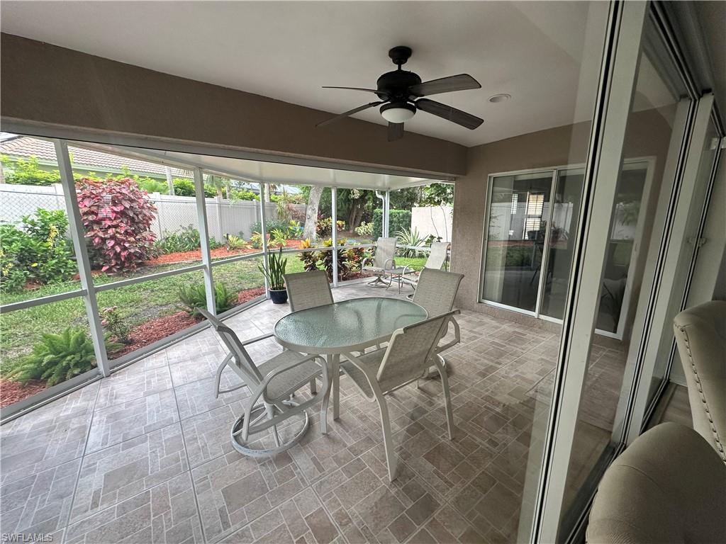 This 3 bedroom, 2 bath attached villa with 2-car garage is ready for a new owner! Enjoy a peaceful and private back yard, tucked in to the corner of the community with a long brick paver driveway. This home has been maintained beautifully! The tile roof was replaced in 2019, HVAC system replaced in 2021, water heater replaced 2024, and the entire house has Storm Smart hurricane screens and plantation shutters throughout. Located in Flood Zone X, flood insurance is NOT required! The huge extended lanai is completely covered, creating a wonderful outdoor space that keeps your furniture dry! The master bathroom has been beautifully redesigned and updated with a walk-in shower featuring gorgeous tile work and no need for a glass enclosure! Bay windows and vaulted ceilings in the great room create a vast, open concept. A beautiful built-in Murphy bed in the guest bedroom is included, and all of the flooring is either laminate or tile...no carpet! World Tennis Club is a gated community centrally located in North Naples and features 2 community pools, poolside cafe'/bar, 14 tennis courts and 4 pickleball courts with fully staffed pro shop, bocce, basketball play area, saunas and a wonderful social calendar of events.