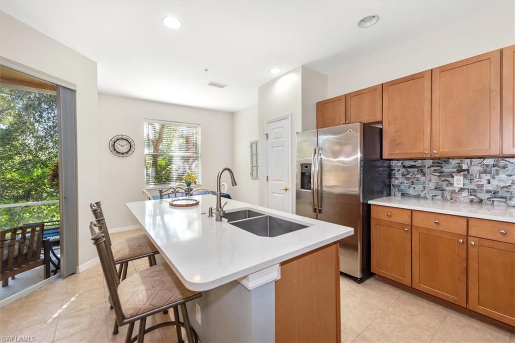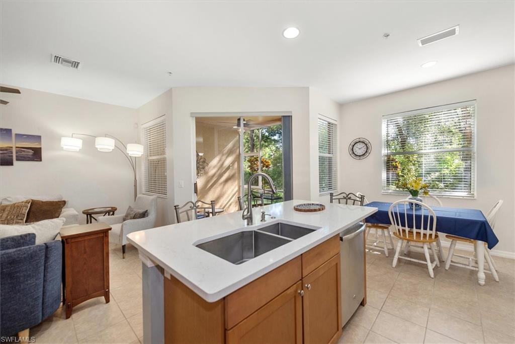 Offered Turnkey Furnished!! Great opportunity to own a move in ready slice of paradise located in Spanish Wells golf Community, Bonita Springs. This desirable, turnkey furnished, first floor unit is move-in ready with 3 bedroom/2 bath open floor plan and attached garage. Recent updates include quartz countertops, an extended/oversized island, stainless steel appliances and a beautiful glass backsplash. The eat-in kitchen plus formal dining provides ample room for entertaining friends and family. The lanai faces the morning sun with a private view of the natural preserve. The spacious primary suite is designed for relaxation, featuring a generous en-suite bathroom with dual sinks, a soaking tub, and a walk-in shower. The additional two bedrooms provide ample space for guests, a home office and Murphy bed. Other highlights include tile and carpet flooring throughout, a built-in alarm system, a new AC system installed in 2021 and new water heater in 2024. The maintenance fee covers the following amenities: guard at the gate security, 2 community pools, Direct TV/wi-fi, water, pest control, natural reserve, landscaping and street maintenance. Situated within the prestigious Spanish Wells Golf & Country Club, this gated community offers optional golf club and social memberships - club amenities including pickle ball, tennis, fitness center, pool, club house and golf. Prime Location! Enjoy the best of Southwest Florida living with shopping, dining, entertainment, and world-renowned beaches just minutes away. Plus, you’re only a short drive to RSW International Airport, making travel a breeze. Schedule your private showing today!