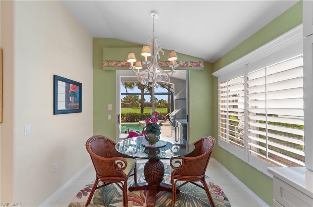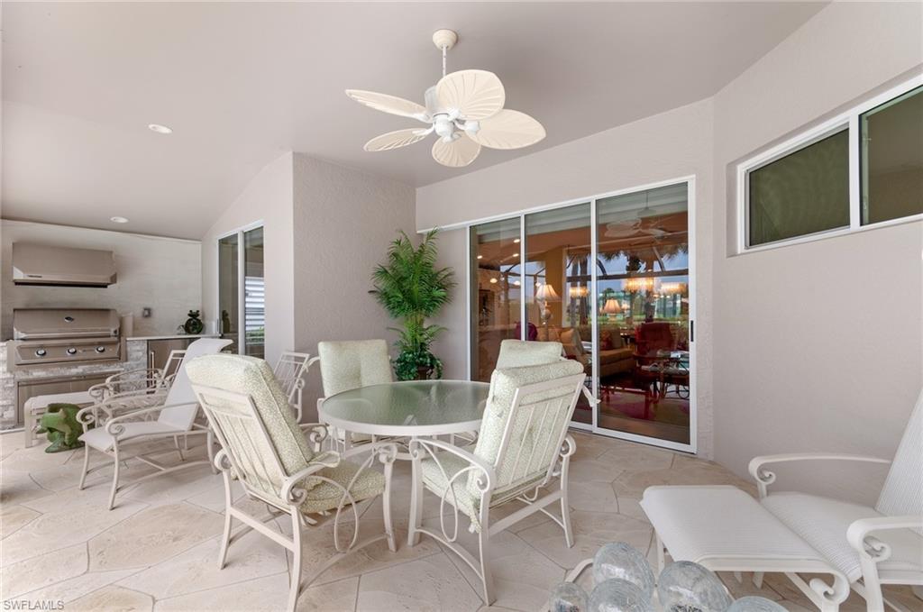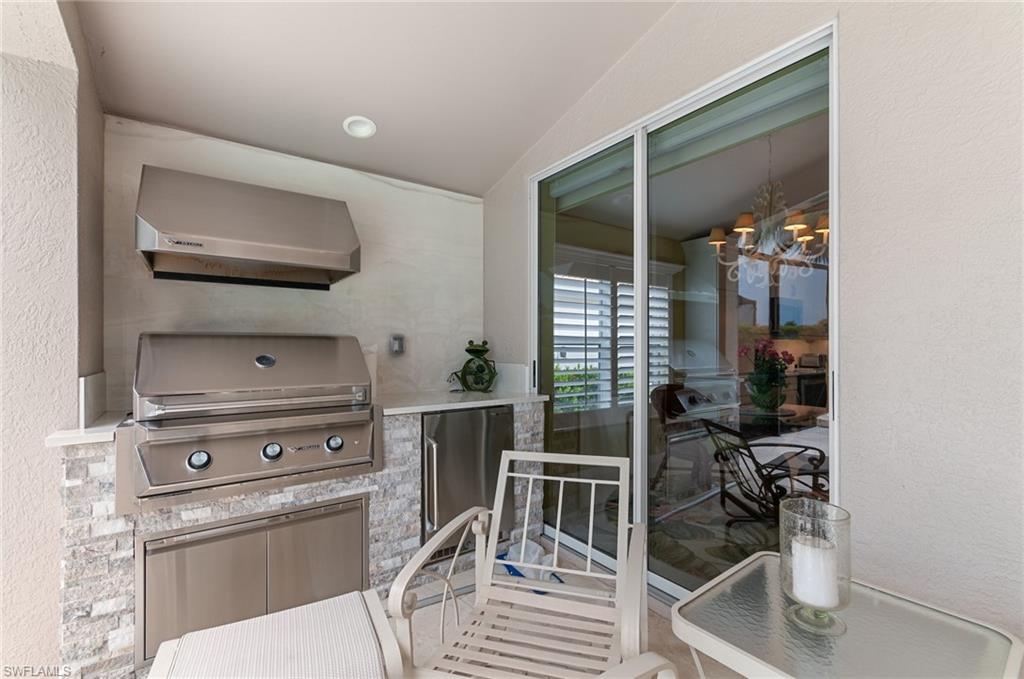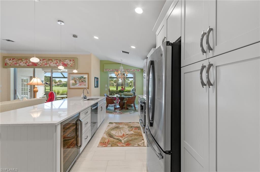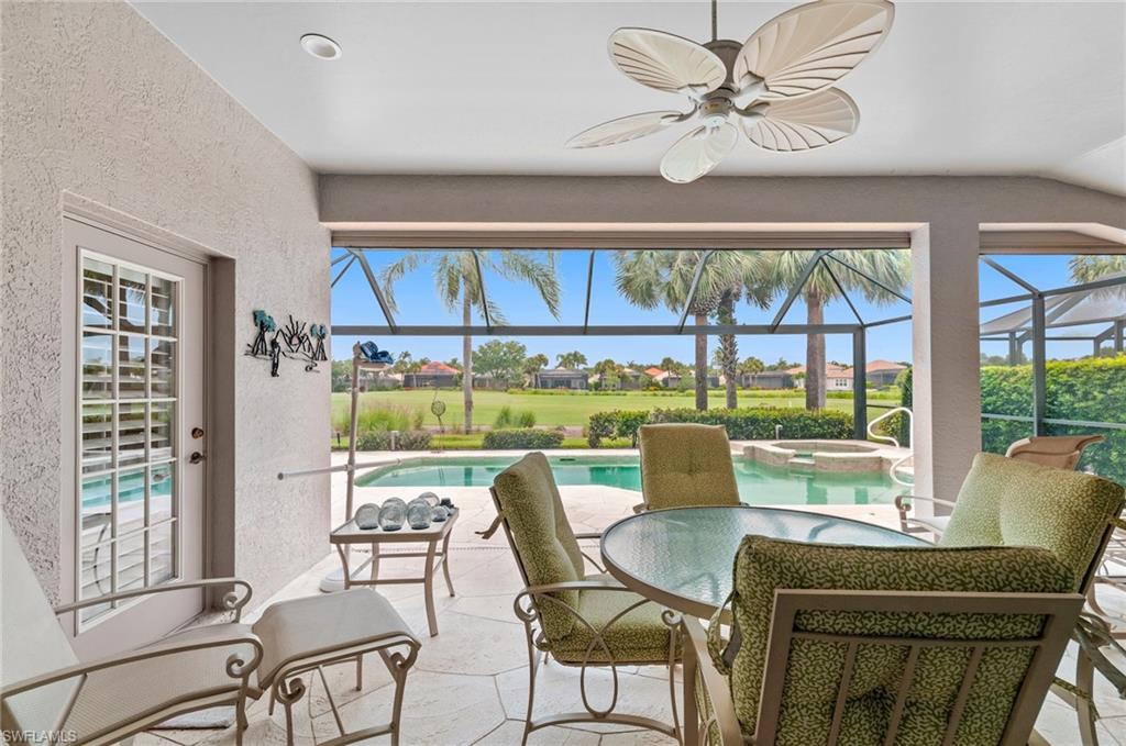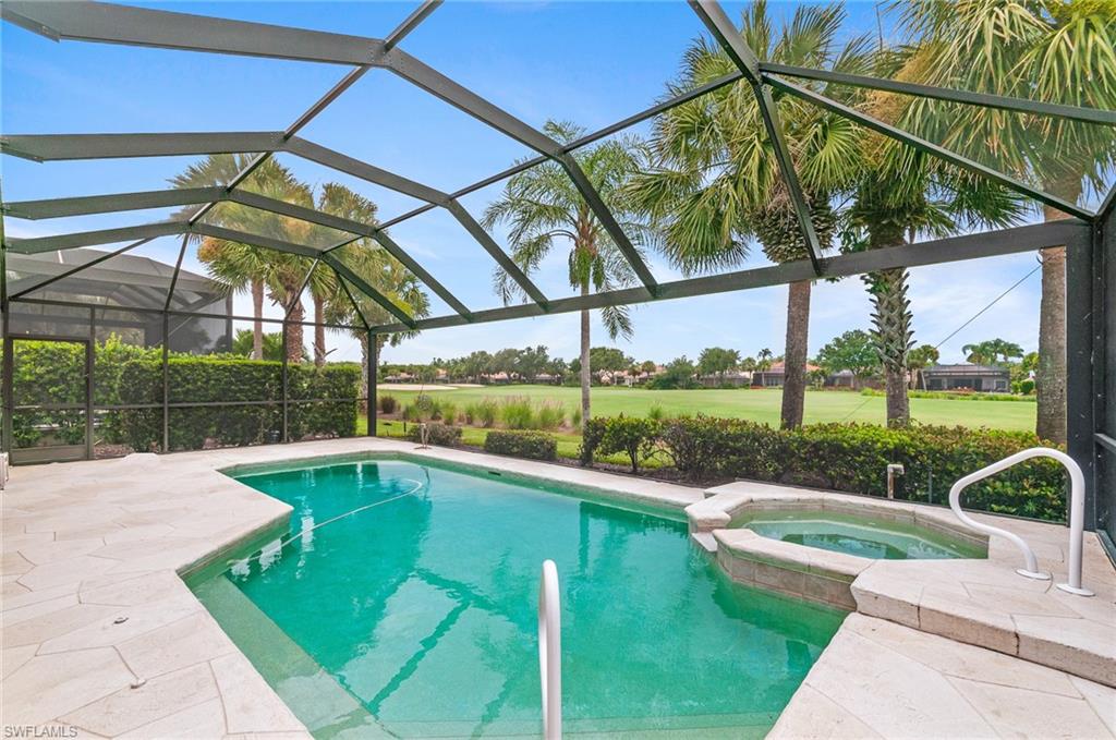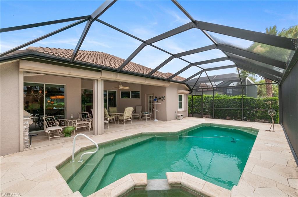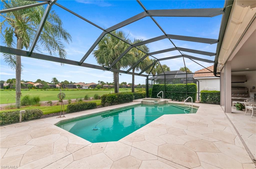 Discover this meticulously maintained and beautifully updated 2-bedroom and a den, 2-bathroom home, ideally situated in the highly sought-after Jasmine Lake community of Copperleaf at The Brooks. Step inside and be greeted by an inviting open-concept floor plan, thoughtfully enhanced by the removal of the wall separating the kitchen and great room, perfect for entertaining. The gourmet kitchen is a chef's delight with sleek granite countertops, ample cabinetry, and a wine refrigerator. This light and bright home also features updated bathrooms, flooring, and plantation shutters throughout. Enjoy the Western facing extended lanai featuring stamped concrete, pool & spa, a new pool cage with a panoramic picture window installed in 2021 overlooking the golf course, and a fantastic outdoor kitchen, ideal for al fresco dining. Rest easy with a new roof (2019/2020), new HVAC approximately 5 years ago, new water heater (2023), new pool heater approximately 4 years ago, electric hurricane shutters on the lanai and front door, as well, non-electric shutters on all other windows. Copperleaf offers a wealth of amenities: bundled golf, clubhouse, fitness center, resort-style pool, tennis courts & more. And with its convenient location, you will be just minutes away from world-class shopping, dining, & entertainment.