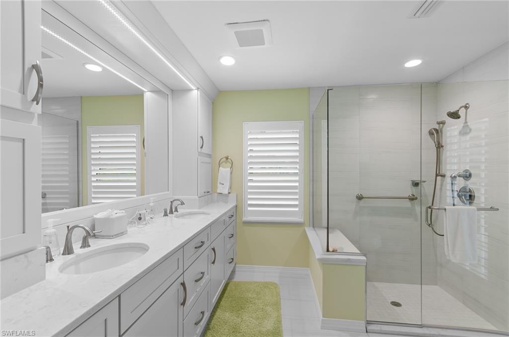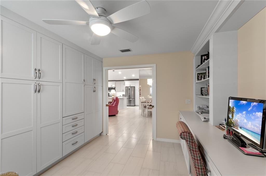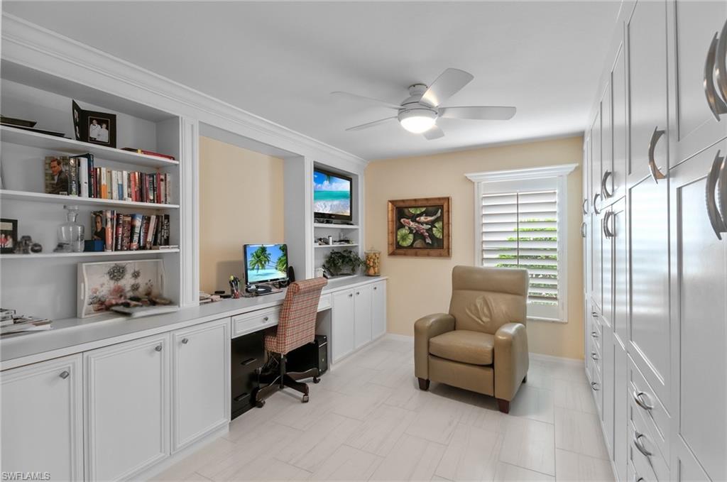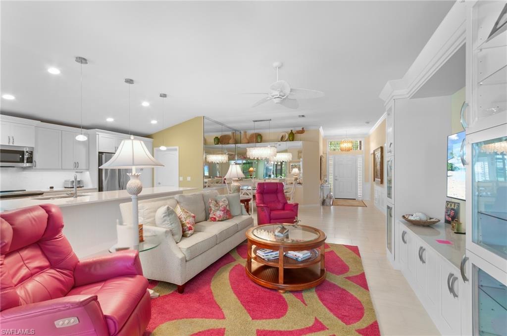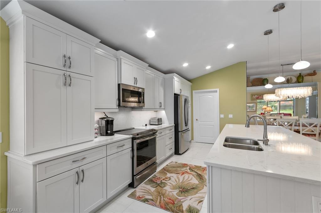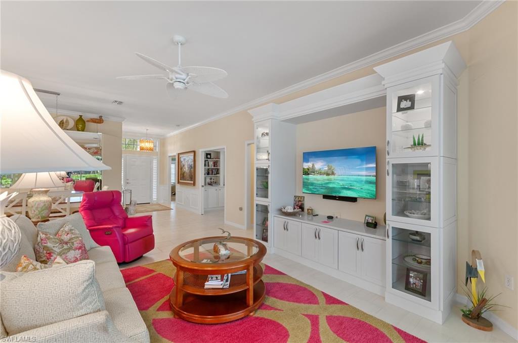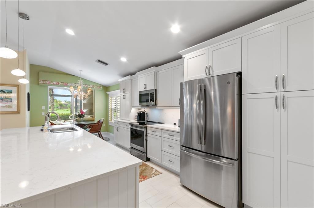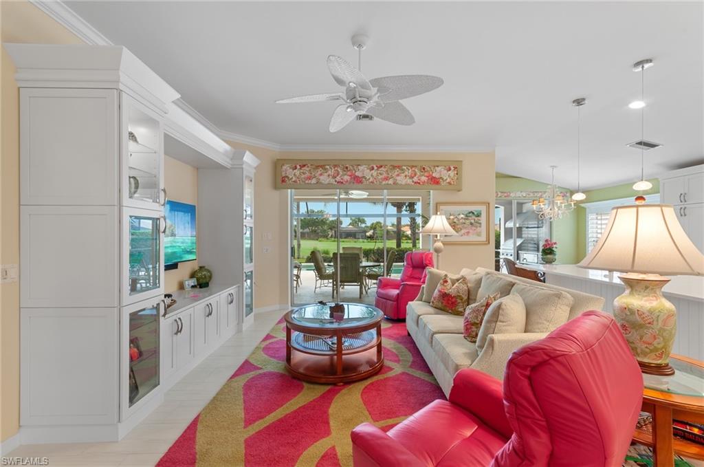 Discover this meticulously maintained and beautifully updated 2-bedroom and a den, 2-bathroom home, ideally situated in the highly sought-after Jasmine Lake community of Copperleaf at The Brooks. Step inside and be greeted by an inviting open-concept floor plan, thoughtfully enhanced by the removal of the wall separating the kitchen and great room, perfect for entertaining. The gourmet kitchen is a chef's delight with sleek granite countertops, ample cabinetry, and a wine refrigerator. This light and bright home also features updated bathrooms, flooring, and plantation shutters throughout. Enjoy the Western facing extended lanai featuring stamped concrete, pool & spa, a new pool cage with a panoramic picture window installed in 2021 overlooking the golf course, and a fantastic outdoor kitchen, ideal for al fresco dining. Rest easy with a new roof (2019/2020), new HVAC approximately 5 years ago, new water heater (2023), new pool heater approximately 4 years ago, electric hurricane shutters on the lanai and front door, as well, non-electric shutters on all other windows. Copperleaf offers a wealth of amenities: bundled golf, clubhouse, fitness center, resort-style pool, tennis courts & more. And with its convenient location, you will be just minutes away from world-class shopping, dining, & entertainment.