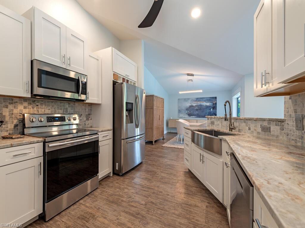 Welcome to your dream home in desirable Marco Island! This updated single-family pool home exudes Florida charm and modern elegance. Step inside to an inviting open floor plan that offers a graceful flow, perfect for both entertaining and everyday living. The beautiful solid surface countertops and stainless steel appliances in the kitchen create a stylish yet functional space for culinary enthusiasts. The master bedroom is a true retreat, featuring a luxurious freestanding soaking tub and a modern walk-in shower, ensuring your personal oasis for relaxation. Step outside into the screened lanai, where you can unwind by the inviting pool sunny pool, ideal for soaking up the sun or enjoying a refreshing swim. Located just minutes away from the vibrant shopping, dining, and entertainment options that Marco Island has to offer, this home allows you to experience the best of the Florida lifestyle. Don't miss the chance to make this stunning property your own!