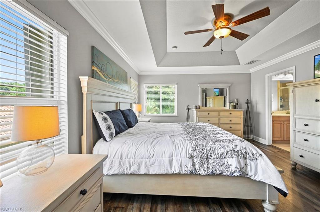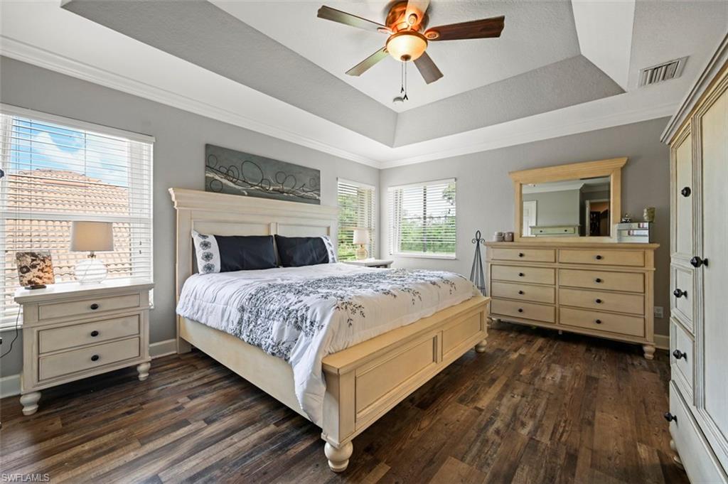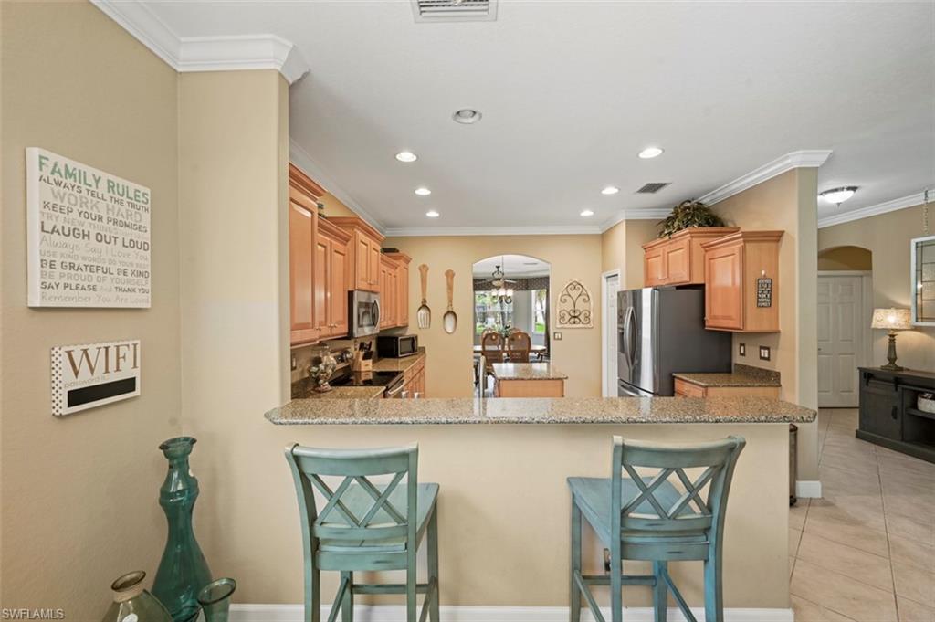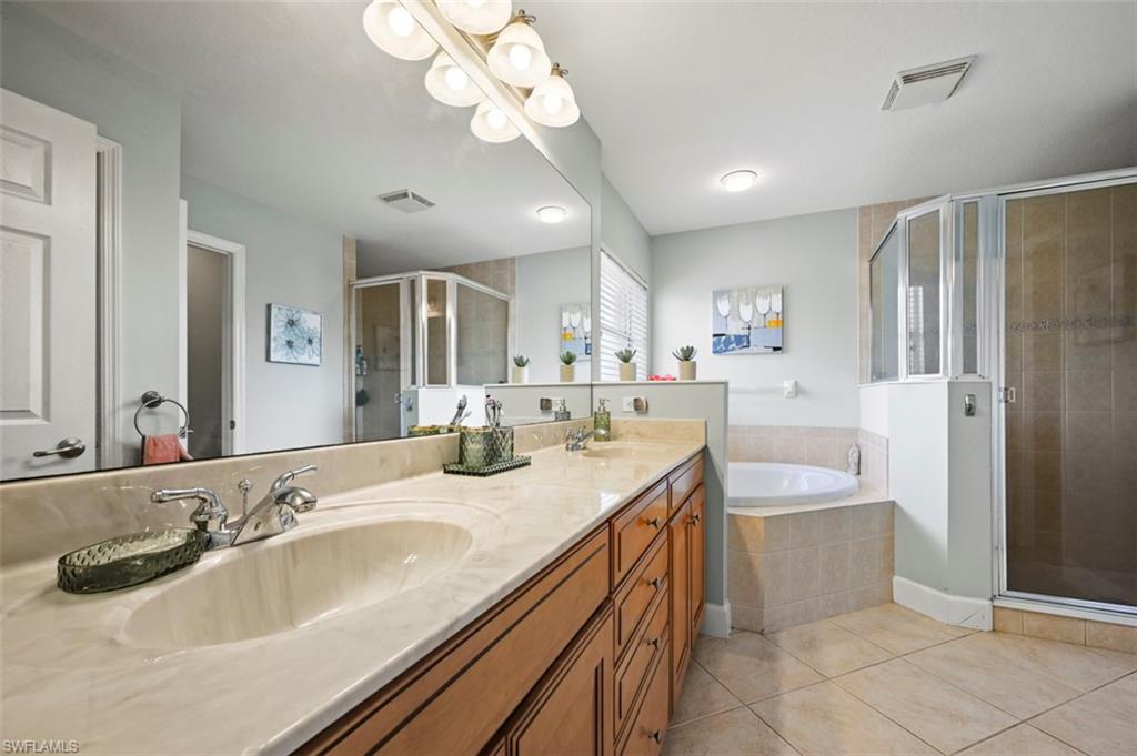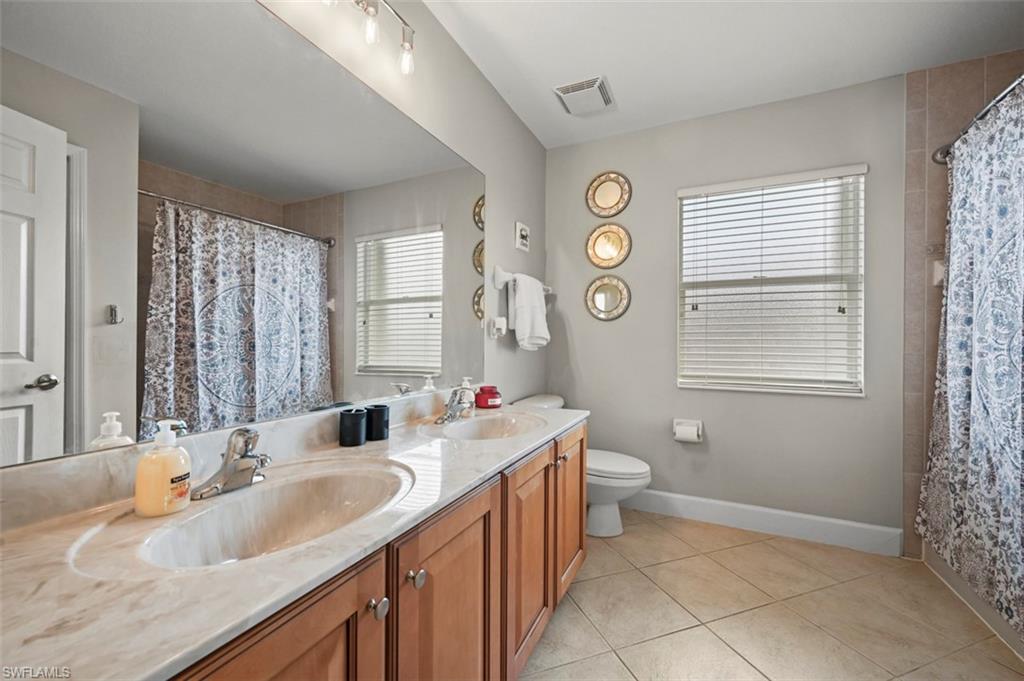 5-Bedroom Oxford Model with Pool & 3-Car Garage in Bella Terra Discover your slice of paradise in this ~3,000 sq. ft. Oxford model pool home, perfectly positioned on a tree-lined street in the sought-after gated community of Bella Terra. This spacious 5-bedroom, 3-bath home with a 3-car garage features a thoughtful layout with distinct living and dining areas, an open kitchen-to-family room design, and a convenient first-floor bedroom with full bath — ideal for guests, a home office, or multi-generational living. The kitchen is a chef’s delight, offering granite countertops, stainless steel appliances, and direct views of the family room for effortless entertaining. Low-maintenance luxury vinyl and tile flooring runs throughout — no carpet — creating a clean, modern, allergy-friendly home. Upstairs, the expansive primary suite offers a large walk-in closet and an en-suite bath with dual sinks, soaking tub, and walk-in shower. Three additional bedrooms and a full bath complete the second floor. Key updates include a newer roof and A/C's all replaced in 2019, accordion shutters on all second-floor windows, and a secure no-flood-zone location. Step outside to your private tropical oasis: a screened lanai with sparkling pool and a wide, landscaped backyard offering privacy and relaxation. Bella Terra spans 999 acres with 400 acres of preserves and 100 acres of lakes. Amenities include a resort-style clubhouse, 24-hour fitness center, resort pool and spa, shaded children’s play area, tennis, pickleball, basketball, softball, bocce, sand volleyball, in-line skate rink, butterfly garden, and a vibrant social calendar featuring bingo, boot camp, water aerobics, poker, and food truck nights. Schedule your private showing today and experience why Bella Terra is one of Estero’s most desirable addresses.