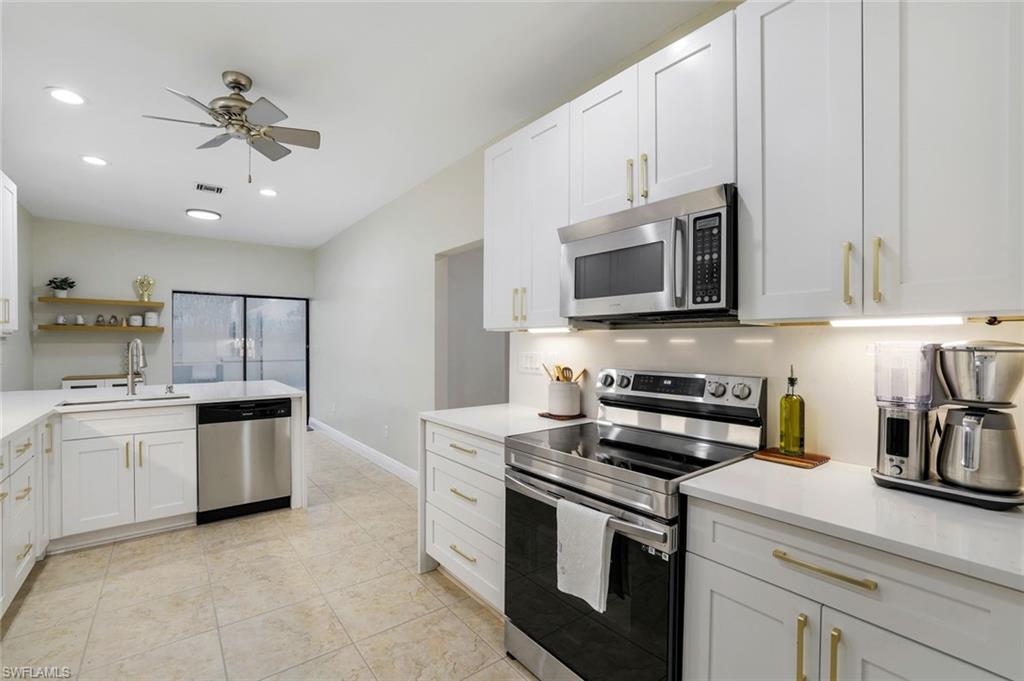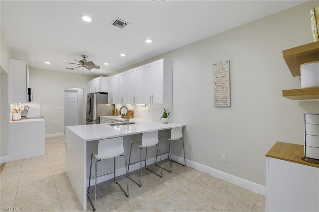 Welcome to 9741 Campbell Circle — A Modern Retreat in the Heart of North Naples Discover this beautifully updated 4-bedroom, 5-bathroom (3-full, 2 half) One story estate home nestled in the highly sought-after north Naples community of Crescent Lake Estates. Located in a no-flood zone (no flood insurance required), within Naples’ top-rated school districts and a 5 minutes drive to NCH. This meticulously maintained residence seamlessly blends timeless elegance, modern comfort, and functional design across 2,325 sq. ft. of living space under air. Enjoy peace of mind with a low annual HOA fee of just $387, no CDD fees, and a prime North Naples location that places you steps from Pelican Marsh Elementary School, allowing children to walk safely on a private road—no major intersections to cross. This estate home location is unbeatable, it's safe and centrally located close to everything Naples has to offer and is west of I75 away from traffic jams. Step inside into this estate home to find an expansive floor plan offering: 3 spacious bedrooms, with their own walk-in closet and en-suite full bathrooms, and a fourth bedroom with a walk-in closet and half bath. In addition, there is a guest powder room. This salt-water pool estate home has a new kitchen featuring sleek quartz countertops, custom contemporary cabinetry, and stainless-steel appliances. New flooring throughout all bedrooms, creating a fresh and unified aesthetic A large great room and two family rooms offering versatile living and entertaining spaces. This home offers dedicated laundry room, breakfast nook, and formal dining alcove for everyday convenience and hosting. It also has an oversized two-car garage with storm-rated garage door and a driveway that accommodates up to four vehicles. School zoning includes: Pelican Marsh Elementary-North Naples Middle School and The new Aubrey Rogers High School. Noteworthy major recent upgrades include: New roof & seamless gutters (2025). New kitchen and appliances (2024), New floors in each bedroom. New water heater (2024), Saltwater pool with screened enclosure (2022), New plumbing (2021) Freshly painted interior and exterior. Supplied by city water and city sewer. This is a rare opportunity to own a turnkey estate home in one of North Naples’ most desirable neighborhoods, offering amazing value in updates and low maintenance costs to own. Schedule your private showing today—this one won’t last!