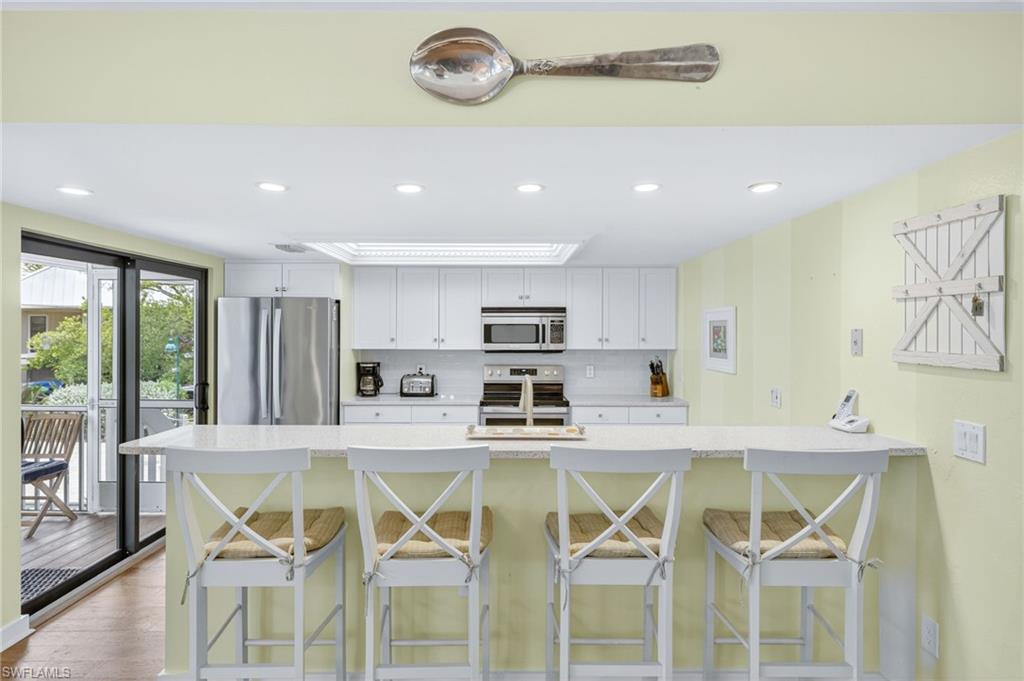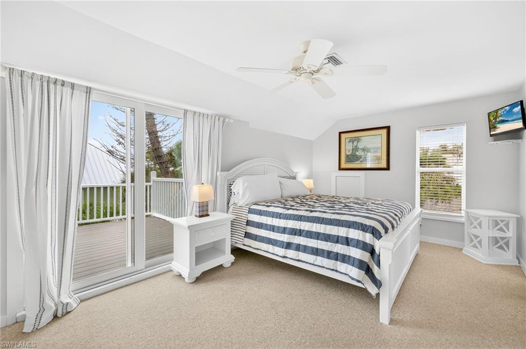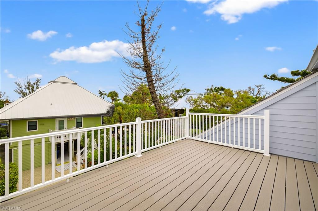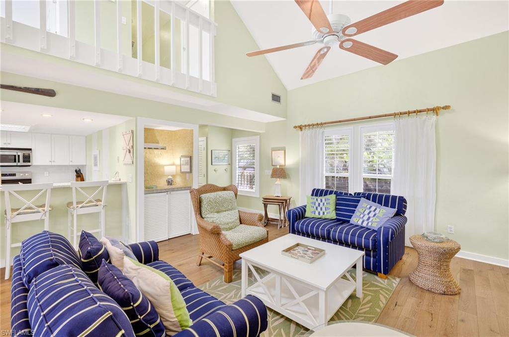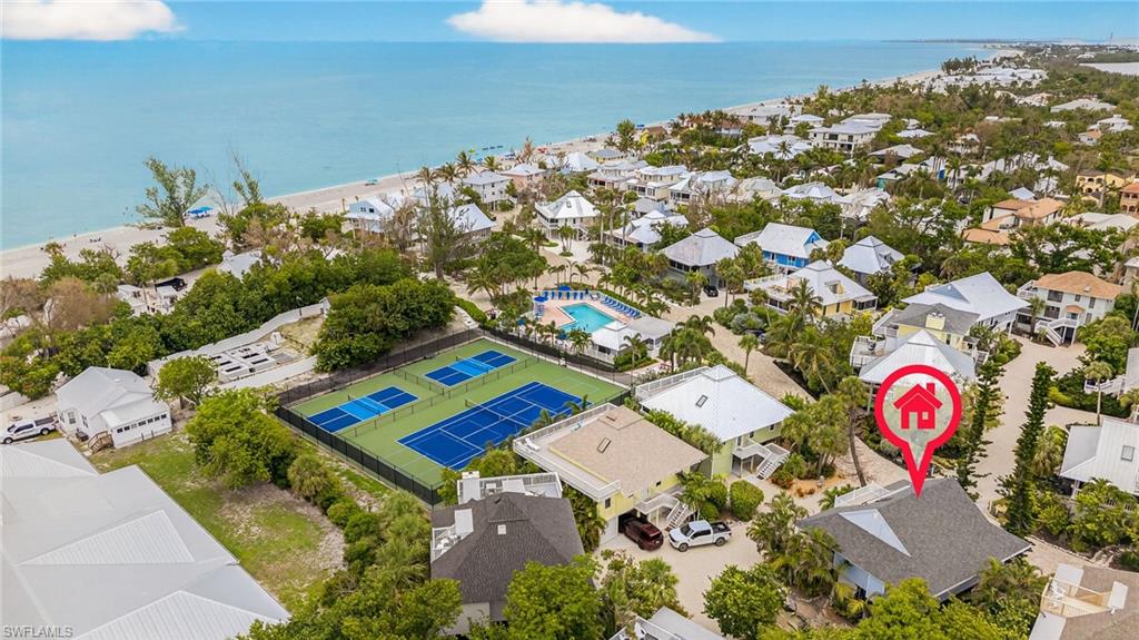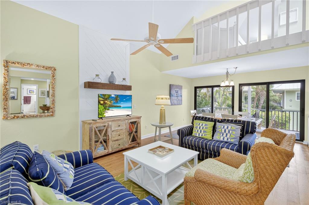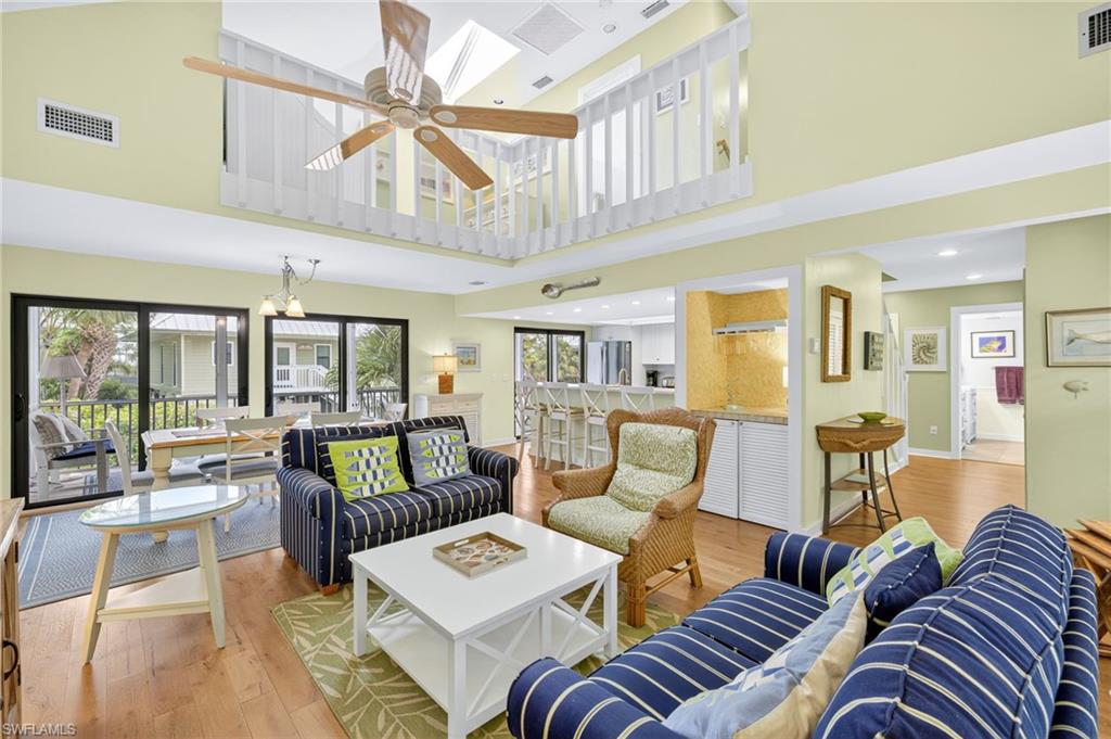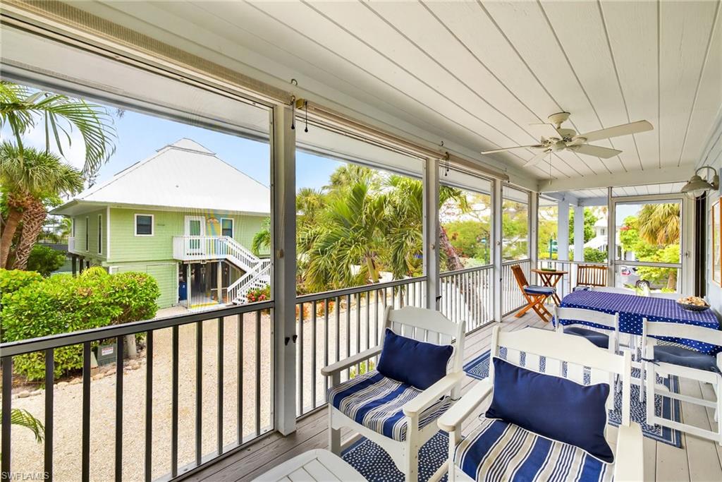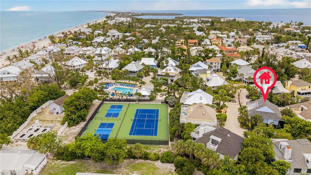 Welcome to Sunset Captiva, a small community nestled in Captiva's "Village". This Gulf to Bay community offers private deeded beach access to the sugar sand and shell strewn beaches of Captiva and community docks with water and electricity for your convenience after a day of fishing in Pine Island Sound. Enjoy the sparkling community pool, BBQ grills with picnic tables and pickleball/tennis courts. Walk to shopping, island restaurants with live entertainment and the marina. This island getaway has 2 bedrooms, 2 baths and a loft. New A/C 2024, New Roof 2023, newly painted exterior and new engineered hardwood floors. Enjoy the 2nd floor private sundeck directly off the spacious primary suite. Open kitchen design with stainless steel appliances and Corian counters. Great room with vaulted ceilings and a large screen enclosed lanai. Impact windows and doors. Home is being sold furnished and is move-in ready.