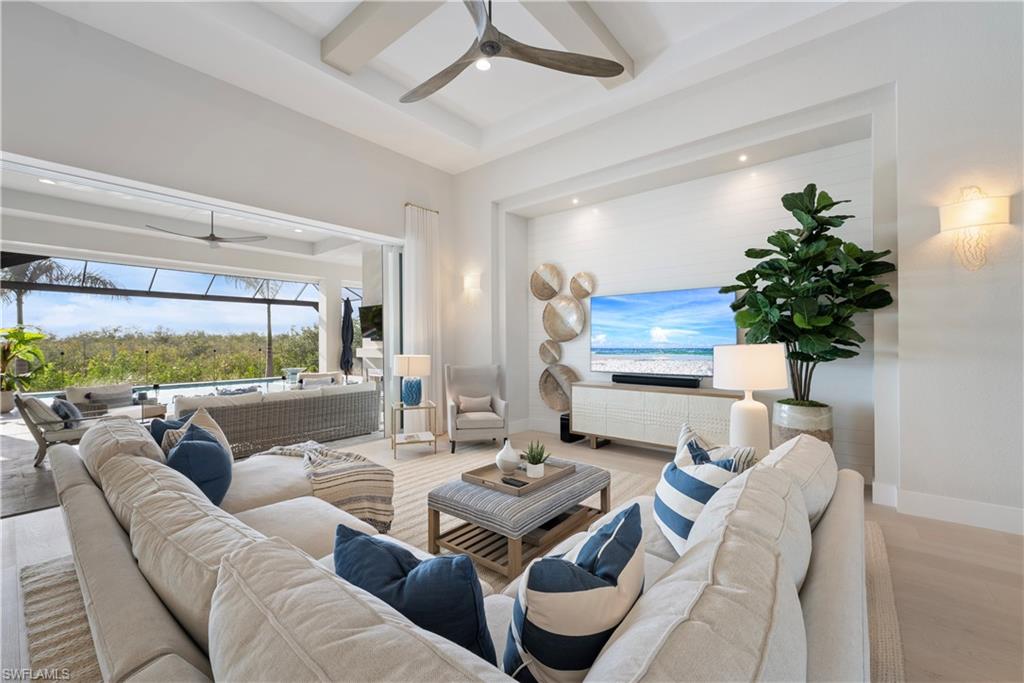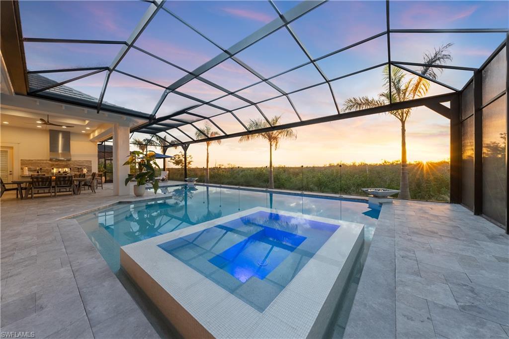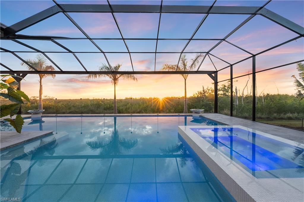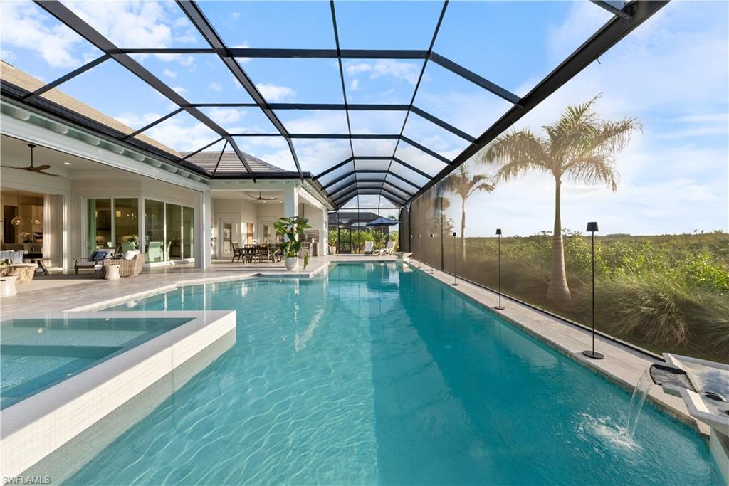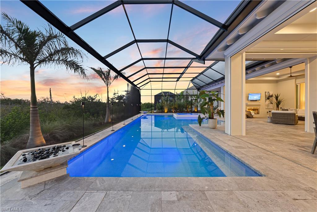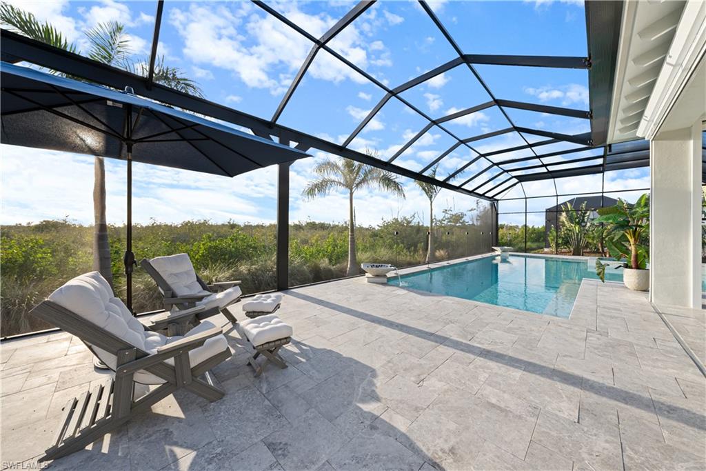 Rarely available and coveted Cocoplum model built by award winning builder STOCK, this estate home is situated on one of the most desirable streets in the private gated section of the Isles of Collier’s Preserve with only 61 homes that back up to beautiful preserve, stunning sunsets and privacy galore. 8923 Nevis Way is new construction, in like new condition. Finished in 2024, it spans an impressive 3,641 square feet of living area with an additional 1,896 square feet of outdoor living to enjoy the breathtaking preserve views. This 4 bed + den, 4.5 bath Cocoplum was built with $640,000 in high quality STOCK builder upgrades, notably hardwood flooring, upgraded kitchen and appliances and oversized pool/lanai area. Designer interior furnishings, custom curtains, art work and lighting, meticulously curated by Soco Interiors, provide a move in ready upscale luxury retreat, with sophistication and serenity at every turn. Additionally, $150,000 of enhancements to the home after close include Custom Inspired Closets, Storm Smart hurricane screens for effortless protection, a 26kW whole-house generator with a 10-year warranty for uninterrupted comfort, garage door insulation and mini-split for energy efficiency and year-round climate control, premium LG OLED TVs for a truly immersive entertainment experience, a Kinetico whole-house water purification system, Plantation shutters, custom landscaping and an expanded driveway, making this home a great value for the discerning buyer. Outdoors a professionally designed resort-style oasis, featuring expansive covered and uncovered spaces, a gorgeous over sized salt water gas-electric heated pool and spa along with “no-see-um” screened lanai and complete bug spray system by SWAT, outdoor kitchen, and comfortable high-end furniture to enjoy sunsets on your Southwest Exposure. Set within more than 2,400 acres of unspoiled beauty, The Isles of Collier Preserve is a gated enclave with over half the community devoted to lakes, preserves, and natural surroundings. Residents enjoy world-class amenities including The Isles Club, The Overlook Bar & Grill, tennis, pickleball, and bocce courts, eight miles of scenic walking and biking trails, kayak and paddleboard launches, and the Canine Cove dog park. Just minutes from downtown, white sand beaches, the Naples Botanical Garden, and the Bayshore Arts District, this extraordinary home presents a rare opportunity to experience luxury living immersed in nature. Perfectly situated just minutes from historic downtown, Naples’ famous sandy white beaches, and the Bayshore Arts District, you are sure to enjoy SWFL living in this exclusive community. This section of the Isles adjoins to the Hamilton Harbor Yacht Club, a magnificent club and marina right in your backyard.