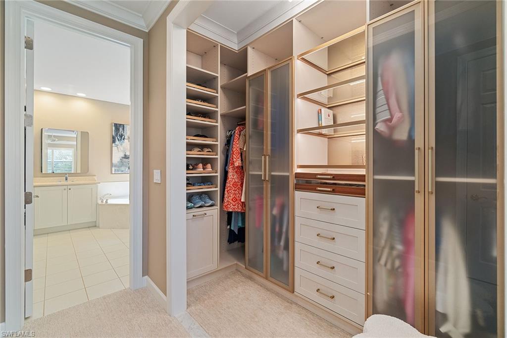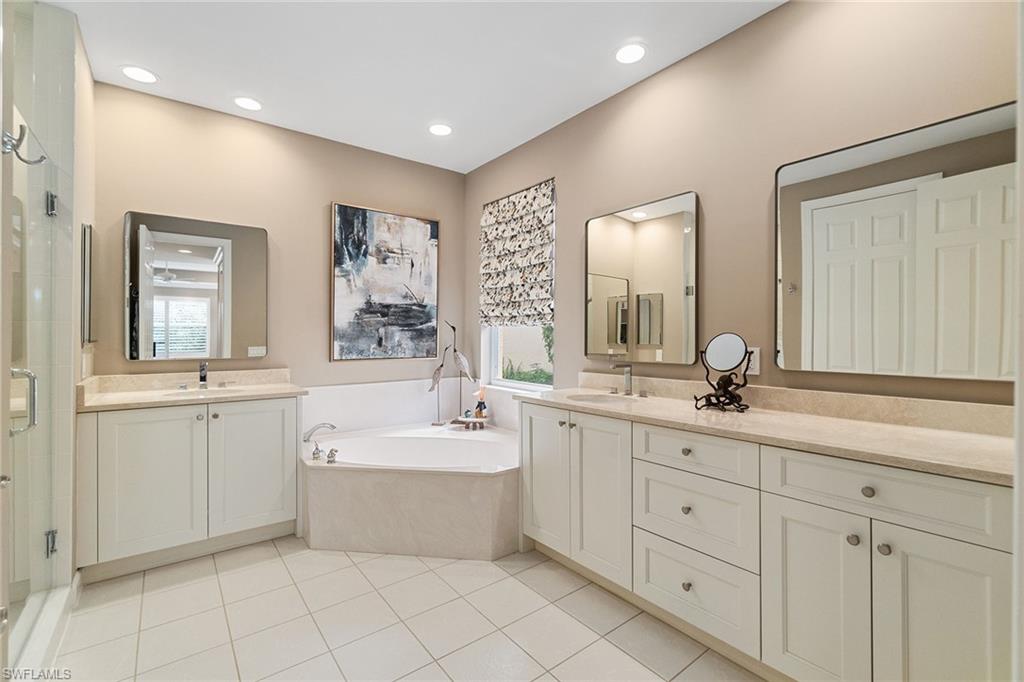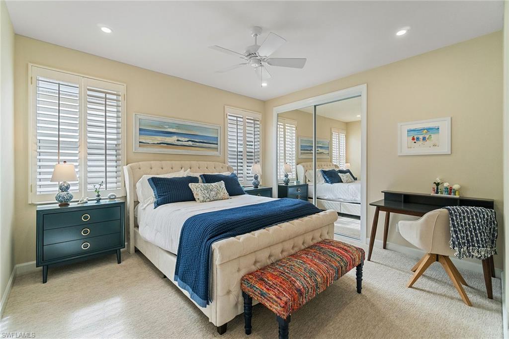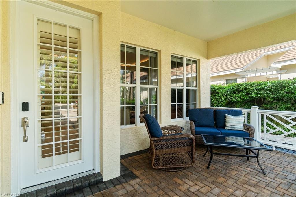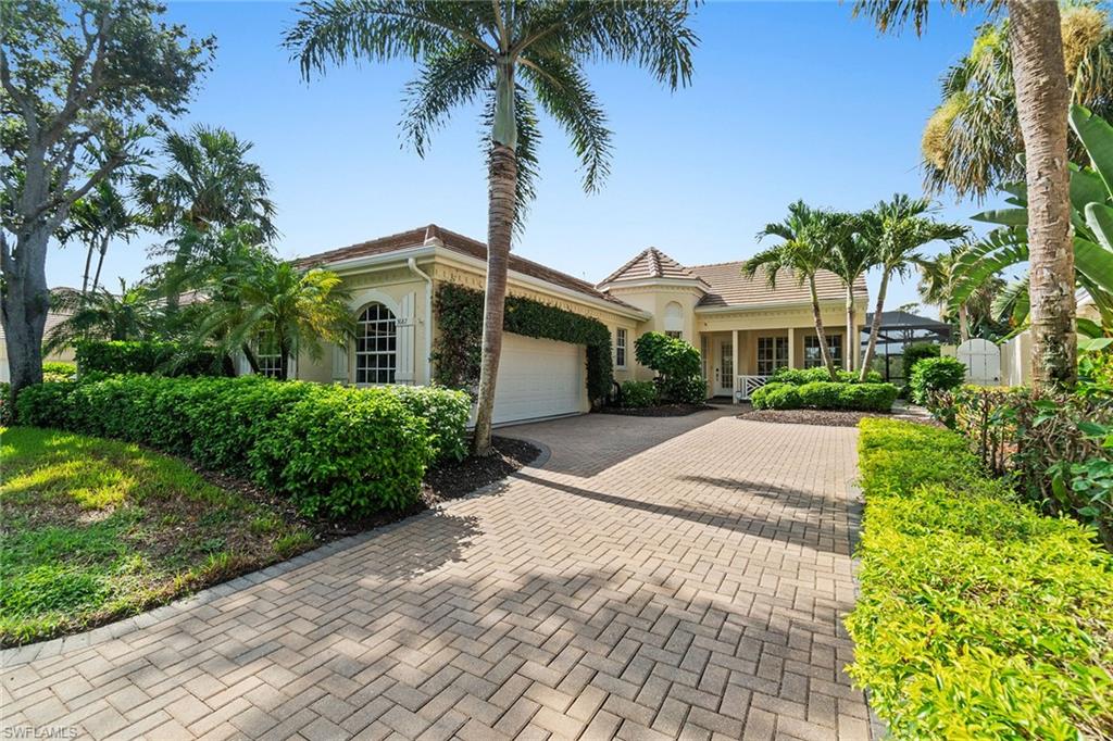 Built around the breathtaking golf course and water views, this beautifully updated residence, tucked away on a quiet cul-de-sac, reflects meticulous attention to detail at every turn. Inside, volume ceilings, plantation shutters, recessed LED lighting, and lighted tray ceilings create an open, refined ambiance. Gleaming tile floors extend throughout the main living areas, while plush new carpet adds comfort in the bedrooms, all enhanced by custom California Closets. In the kitchen, granite and quartz countertops pair with soft-close cabinetry and premium KitchenAid appliances. The primary suite is equally impressive, offering dual walk-in closets with built-ins, quartz-topped vanities, and a luxurious heated toilet seat. Storm protection includes impact-rated glass doors and hurricane screens on the lanai and primary suite. A picture-frame screen enclosure (2023) on the lanai maximizes the panoramic view of lush fairways, a glistening pond, and no rooftops in sight. Southern exposure fills the space with light, while a private courtyard off the kitchen offers a charming space to unwind. Additional highlights include a 2021 roof, 2023 air-conditioning unit, 2021 water heater, two-car garage with epoxy flooring, and an extra refrigerator. Enjoy exclusive access to Pelican Landing’s world-class amenities, including a private 34-acre Gulf beach island, 12 Har-Tru tennis courts, pickleball, fitness center, kayaking, sailing, fishing piers and more. Whether you're seeking a year-round residence or a serene seasonal escape, this property offers the ultimate blend of luxury, privacy and resort-style living, all framed by a view you'll never tire of.