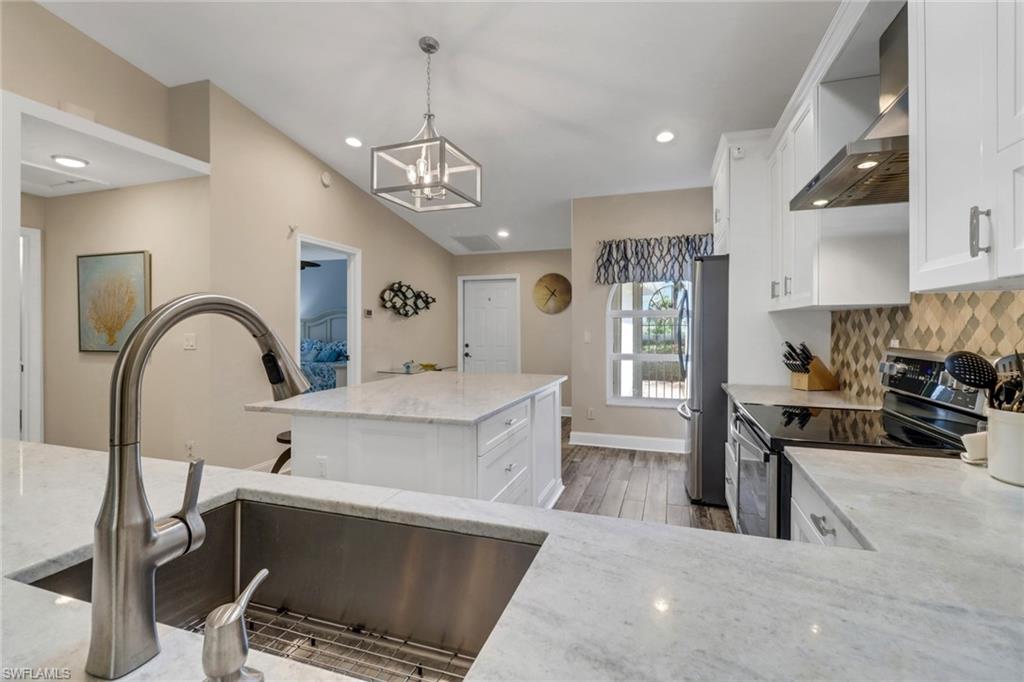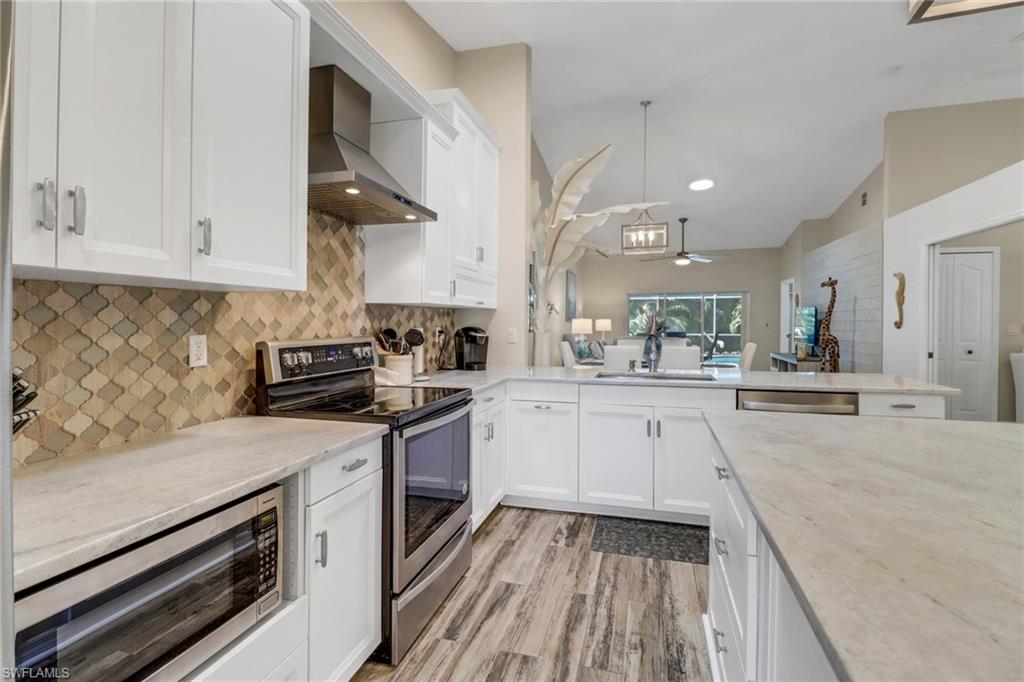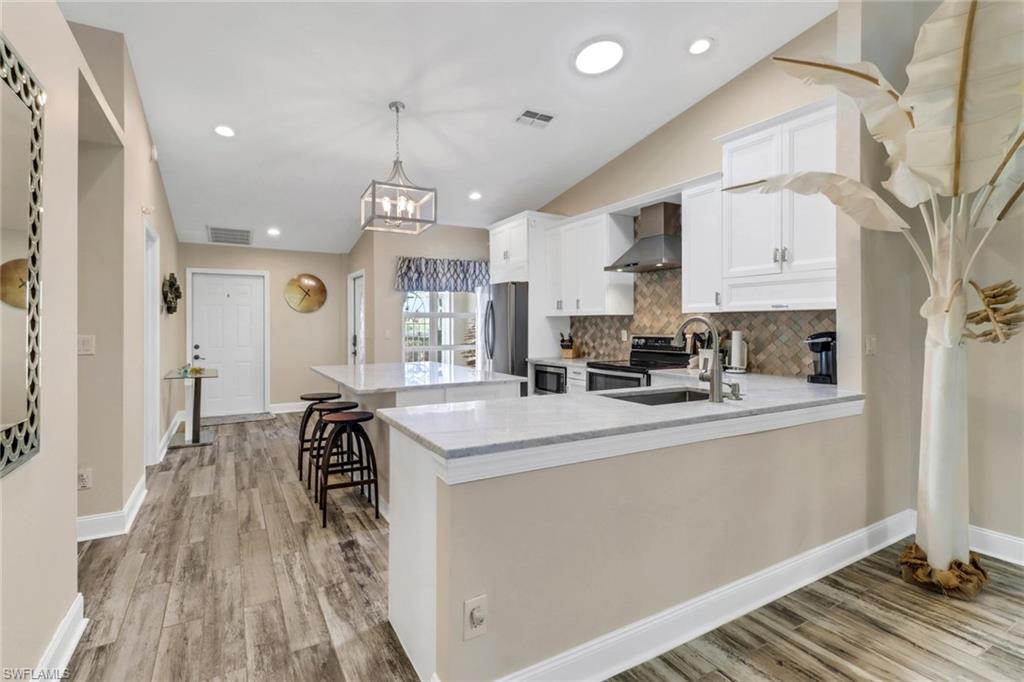 TURNKEY RENOVATED POOL VILLA – MINUTES TO THE BEACH & NOT IN A FLOOD ZONE! Located in sought-after Wiggins Bay, this stunning 3BR/2BA villa offers modern coastal living at an unbeatable value. Featuring an open layout with soaring ceilings, the home boasts impact windows and sliders, a newer roof, wood-look tile flooring, and a fully remodeled kitchen with quartz countertops and stainless steel appliances (2023). Enjoy a private outdoor oasis with a heated pool (new pump 2023), extra green space, and a 2-car garage. Major updates include a new A/C, hot water heater, and whole-home plumbing. The spacious primary suite includes a spa-style walk-in shower and upscale finishes. Flood insurance not required per 2025 FEMA maps. Pet-friendly (2 pets, no weight limit). Optional membership to Tarpon Cove Yacht & Racquet Club with beach shuttle, tennis, resort pool, and more.