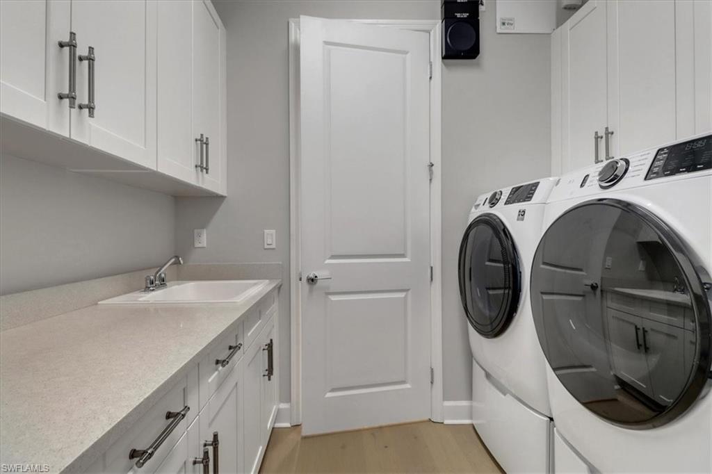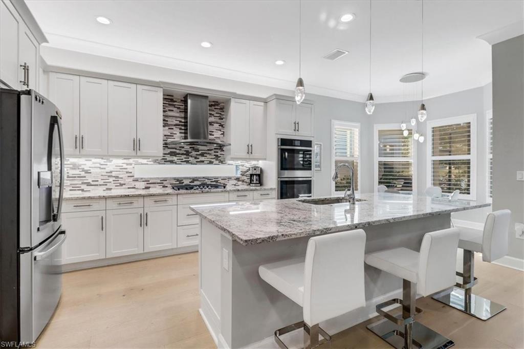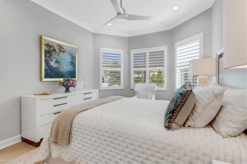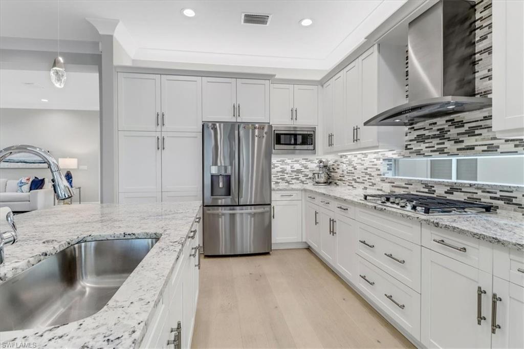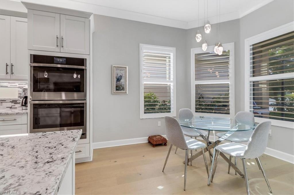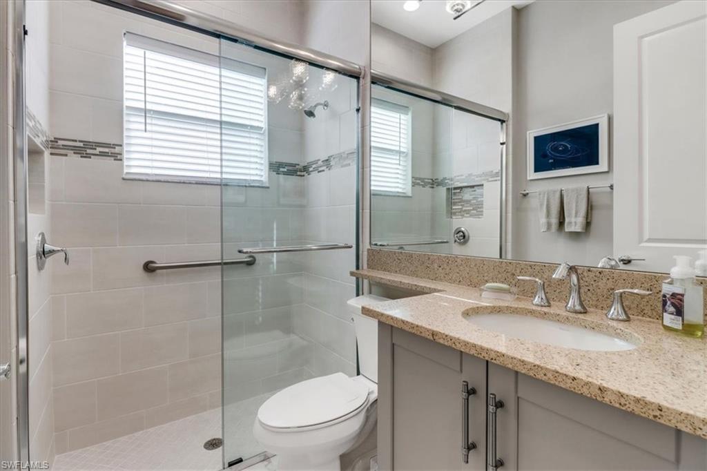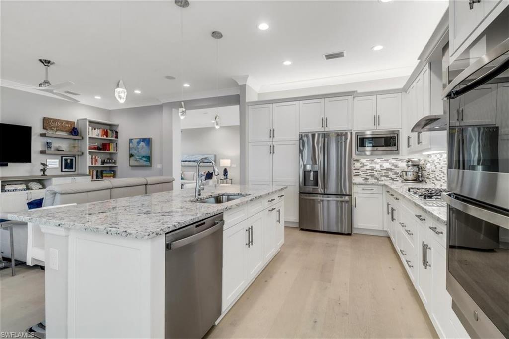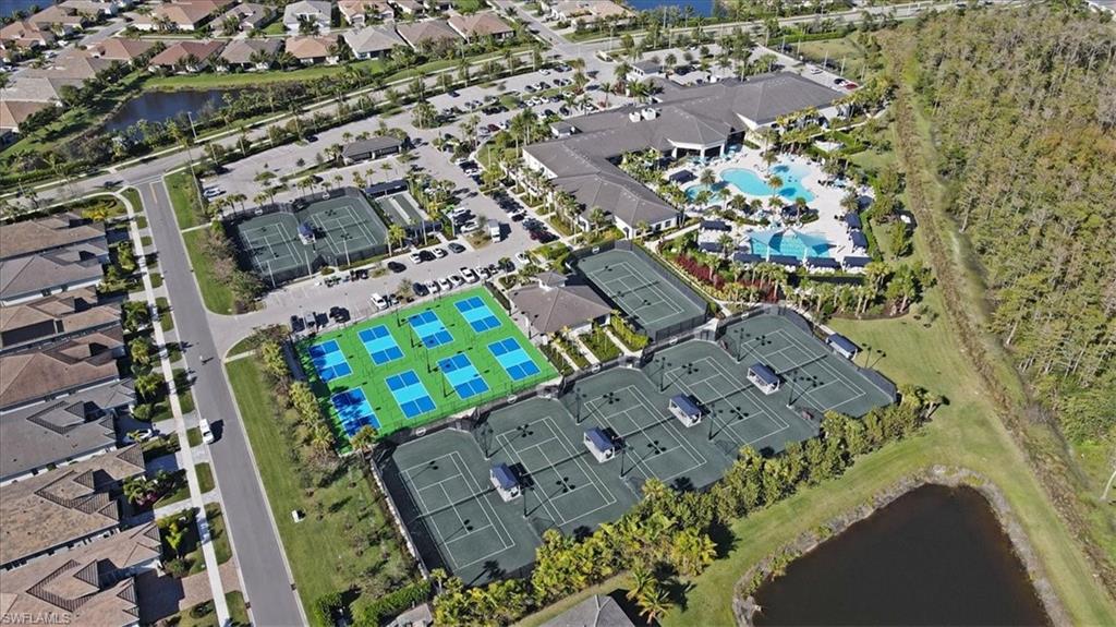 This impeccably maintained Portofino model offers the perfect blend of luxury and comfort, set on a serene lakefront lot with desirable southern exposure. Inside, you’ll find elegant crown molding, rich wood flooring, plantation shutters, decorative light fixtures, and ceiling fans throughout. The upgraded laundry area includes a premium washer and dryer, plus a utility sink for added convenience. Enjoy thoughtful touches like custom closets, built-in storage solutions, and a luxurious jetted tub in the primary suite. The home is equipped with impact-resistant windows and a stunning pool and spa framed by picture window screening for unobstructed views. The garage is finished with a sleek epoxy floor and custom storage cabinetry. Located in Valencia Bonita—Southwest Florida’s premier active adult community—residents have access to a 45,000-square-foot clubhouse, the acclaimed Oasis restaurant, a full-service spa and salon, multiple resort-style pools, tennis and pickleball courts, bocce, a state-of-the-art fitness center with classes, over 40 social clubs, card rooms, and a vibrant social hall hosting live entertainment and events. Tucked just off Bonita Beach Road, Valencia Bonita offers the perfect mix of peace, luxury, and an active lifestyle.