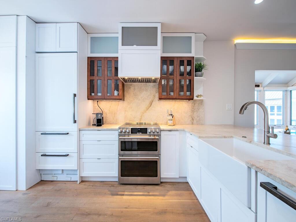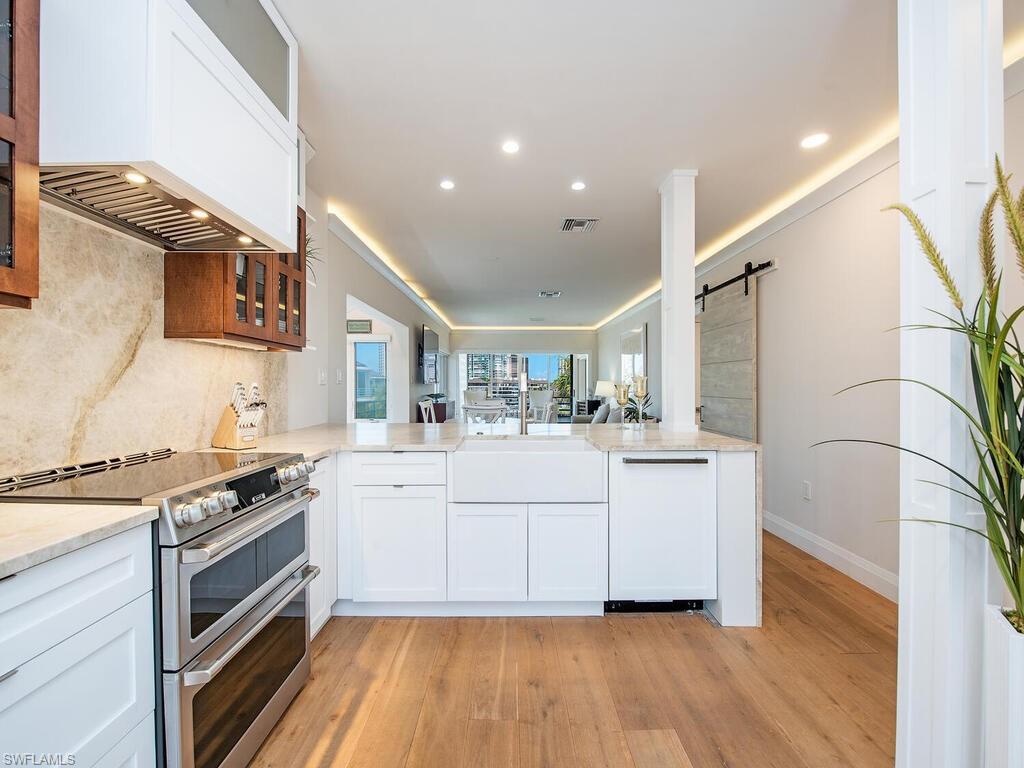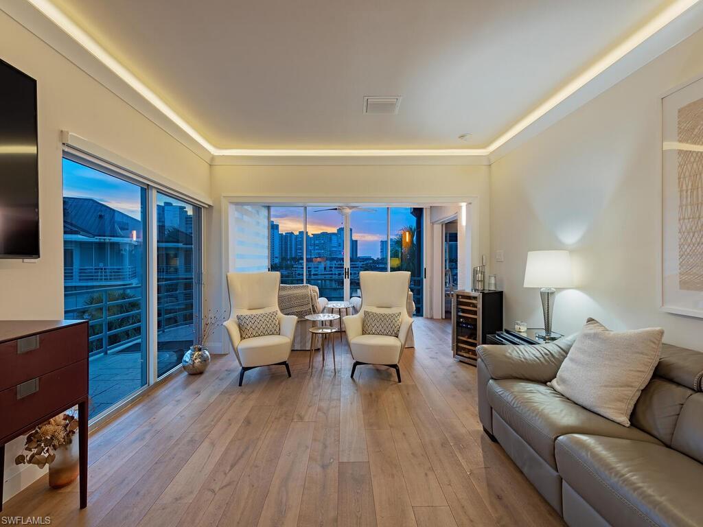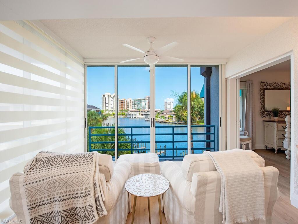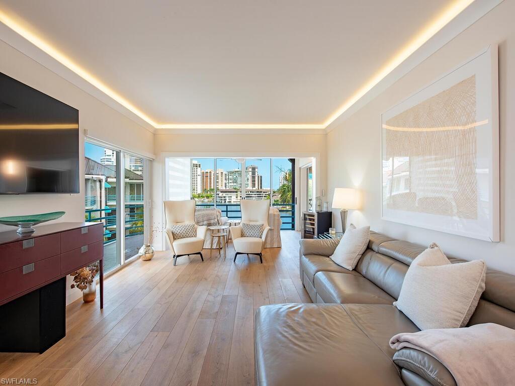 Park Shore Landings is one of the most sought-after low-density bay-front communities in Naples, ideally positioned along the serene waters of Venetian Bay and just a short stroll to the shops and dining found at Venetian Village. Known for its intimate setting, manicured grounds, and private beach access, the community offers a relaxed yet upscale coastal lifestyle in the heart of Park Shore. The unit offered is a rarely available top-floor, end-unit showcasing unobstructed western views across the bay, where evening skies and water reflections create a quiet, dramatic backdrop. The open-concept floor plan connects the kitchen, dining, office nook, and living areas, with natural light pouring in from multiple exposures, while the two bedrooms and two bathrooms are quietly secluded. Additional notable enchancements include rich wood floors throughout, a modernized kitchen with stainless steel appliances and precoius-stone countertops, as well as custom lighting—offering both style and comfort in every detail. Park Shore Landings features a bay-front pool and spa, private guest suite, grilling areas, available boat docks, and a resident clubhouse. Owners also enjoy private beach access through the Park Shore Association. This is a prime opportunity to own in one of Park Shore’s most desirable bay-front enclaves, just minutes from Gulf beaches, Waterside Shops, the upcoming Four Seasons Naples Beach Club, and downtown Naples.