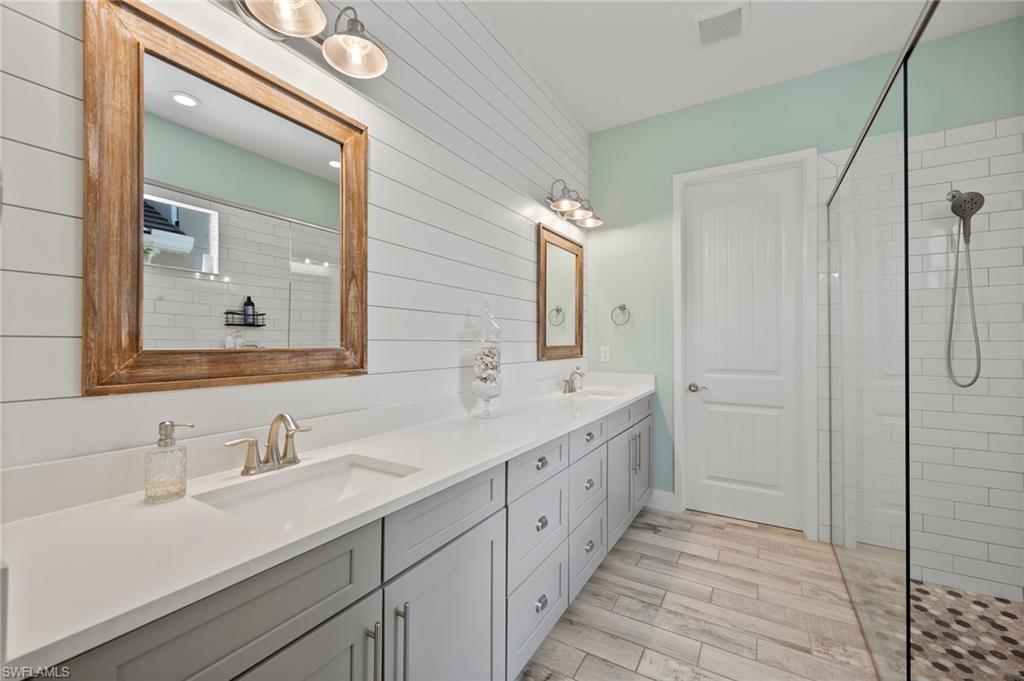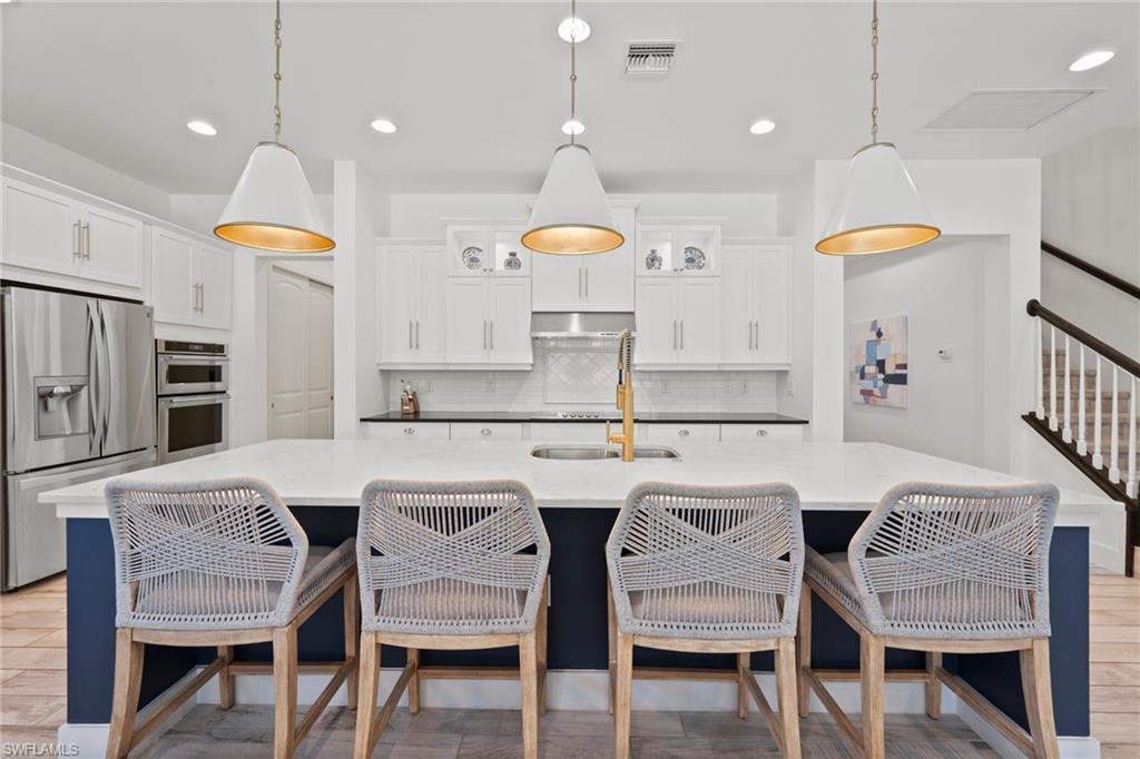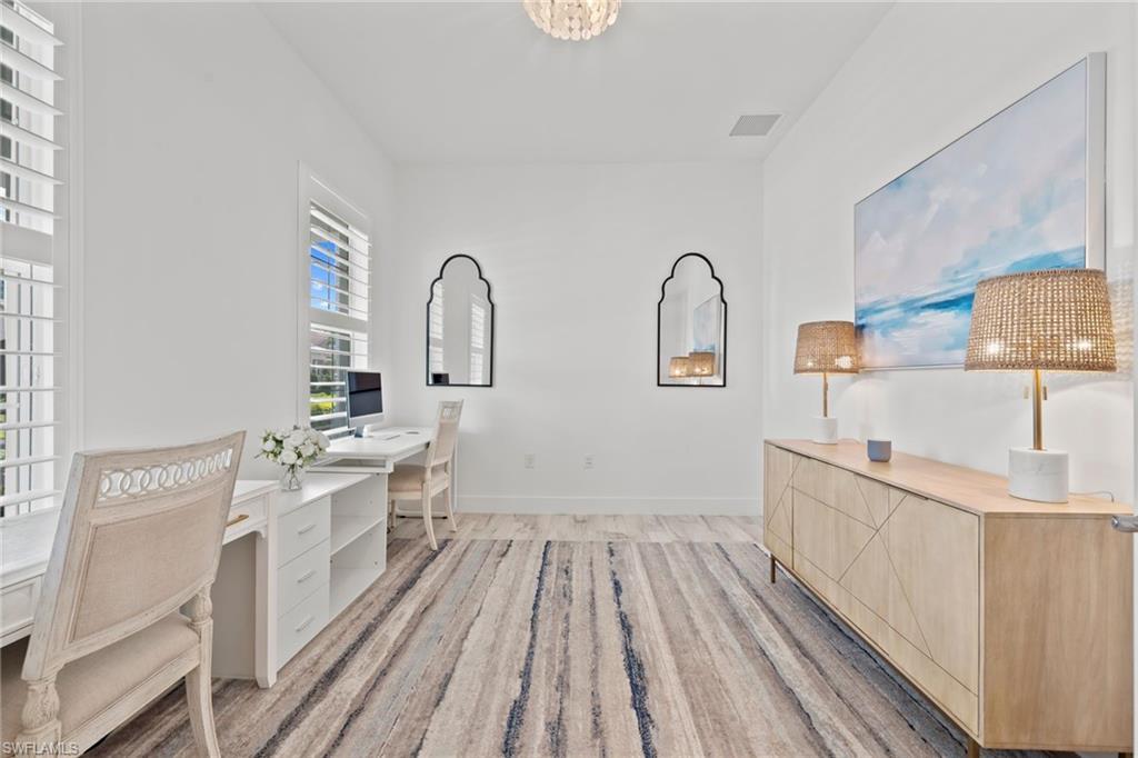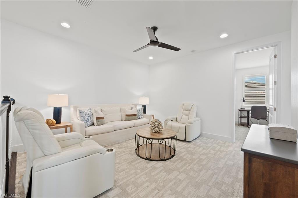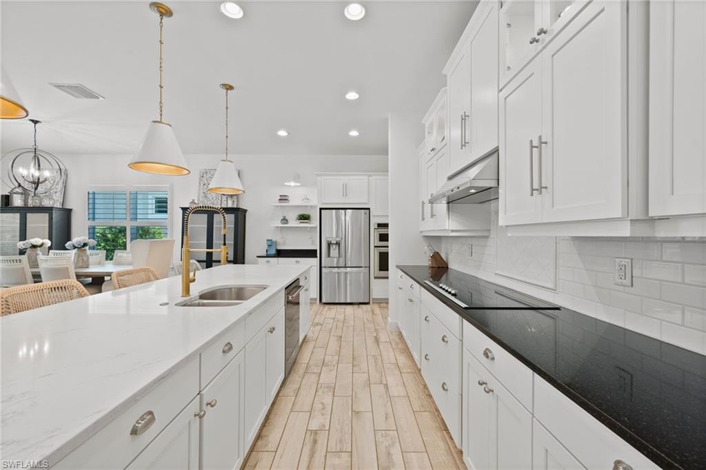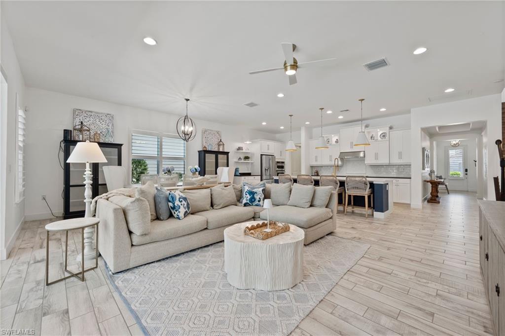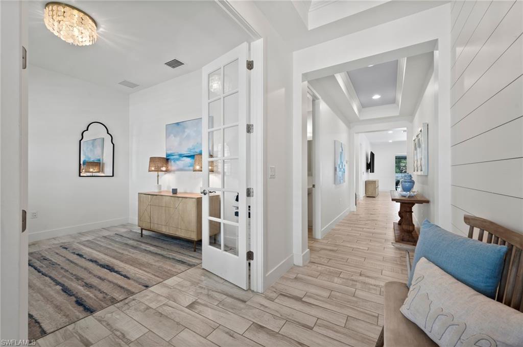 Welcome to The Luxury Coastal Commodore: a beautifully upgraded and thoughtfully curated residence in the highly sought-after gated community of Compass Landing. This 4-bedroom + loft + den pool home exudes elevated coastal elegance, offering refined finishes and relaxed sophistication throughout. Step into a space where style meets serenity. Porcelain plank flooring grounds the home in warmth and texture, while custom doors and designer lighting add curated charm. The open-concept chef’s kitchen features a grand-scale island that becomes the heart of the home; perfect for gathering, entertaining, and creating a seamless indoor-outdoor flow to the lanai and pool beyond. Step outside to your private, fenced-in backyard oasis featuring a 2024 saltwater pool heater, lush privacy hedges, and maintenance-free astro turf. All designed for effortless living and maximum enjoyment. Smart upgrades include: electric shutters in the living room and primary suite, a fully wired camera system, hardwired TVs in every room, and plantation shutters throughout. All paired with negotiable designer furnishings that make this home truly Move-In Ready!! Tucked on a quiet street and located just minutes from top-rated schools, shopping, dining, and white-sand beaches. This is not just a home, it’s a lifestyle. Luxury, elevated. Welcome to Compass Landing.