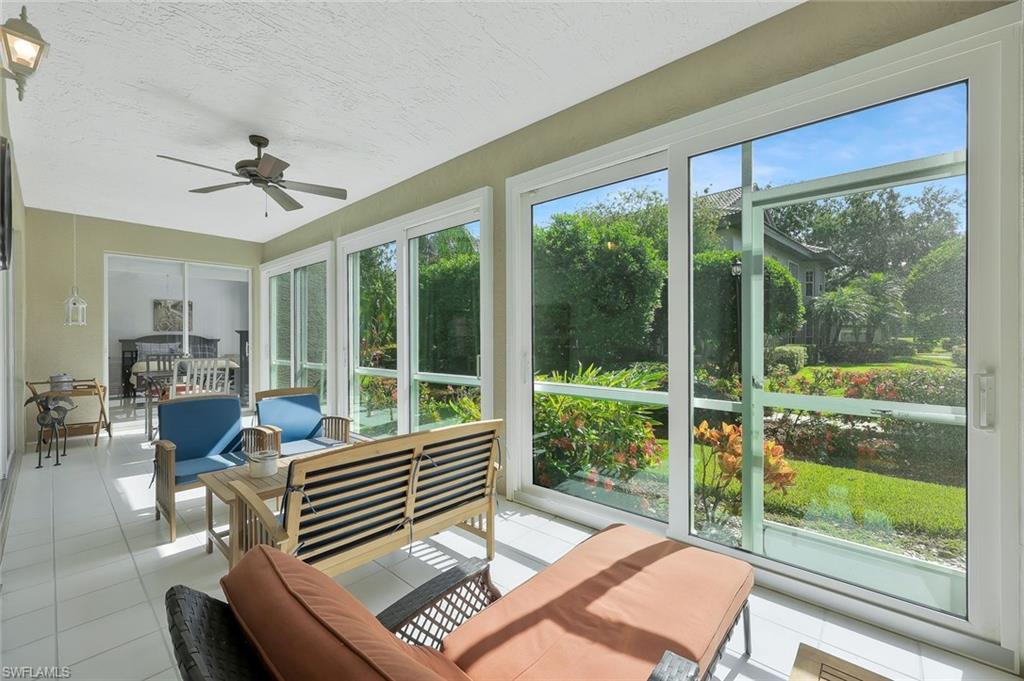 Step into a lifestyle of comfort and community in Tra Vigné — a private, beautifully maintained enclave of just 77 coach homes tucked within the sought-after Vineyards community. This rarely available, first-floor end unit offers the privacy and feel of a single-family home, with the ease and convenience of a lock-and-leave lifestyle. From the moment you enter, the wide-open layout welcomes you with rich hardwood floors, coffered ceilings, and walls of natural light that enhance the home’s airy, inviting ambiance. With 3 spacious bedrooms, 2.5 baths, a versatile den, and a one-car garage, this thoughtfully designed plan provides for both everyday living and effortless entertaining. The expansive lanai — your private outdoor sanctuary, offers serenity as well as hurricane protection, perfect for morning coffee or relaxing after a day at the beach. Residents of Tra Vigné enjoy quiet, tree-lined streets, a short stroll to one of four sparkling pools, and ample guest parking — all within a gated, secure setting. Just outside your door, you’ll find Naples’ best shopping, dining, and entertainment minutes away. For those looking to elevate their lifestyle even further, Vineyards Country Club offers optional memberships to a world-class wellness center and spa, two championship golf courses, tennis, pickleball, bocce, and a year-round calendar of social events that create connections and memories. Don’t settle for just another home — discover a place where every day feels like a vacation. Welcome and cheers to new beginnings!