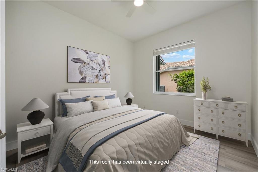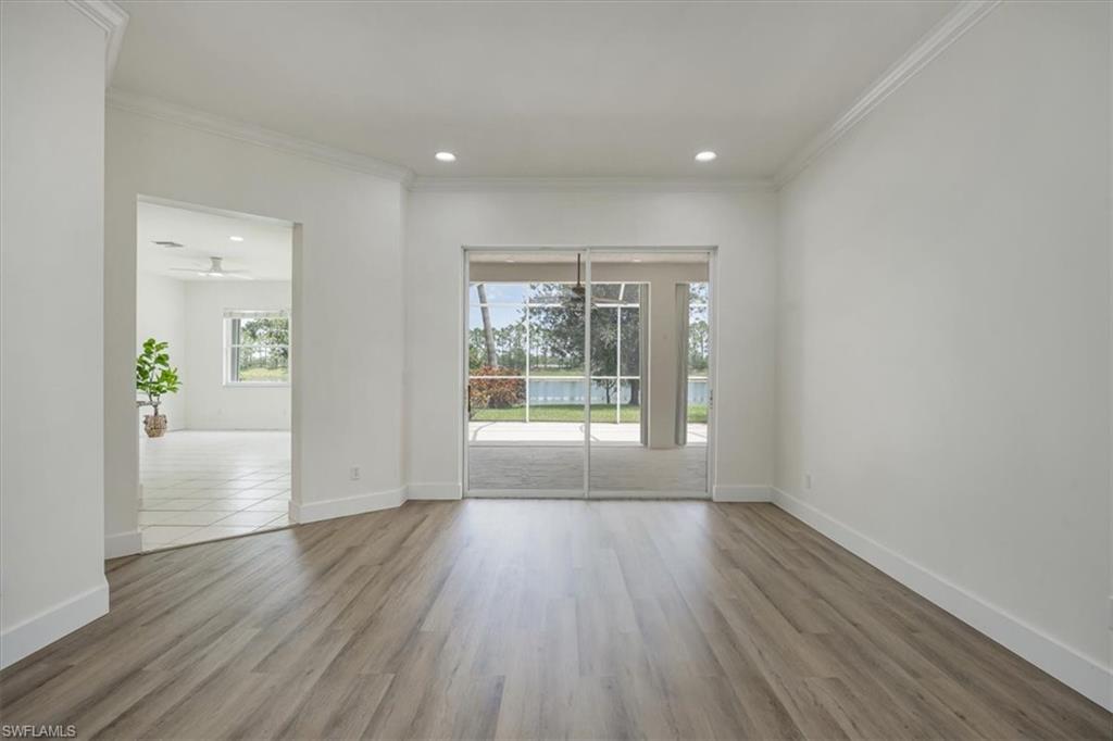 Welcome to Your Naples Lake View Home! Discover this beautifully updated 4-bedroom, 2-bath single-family home in Naples, FL, ideally located on an oversized lake-view lot with desirable southern exposure. With a NEW ROOF (2024), extended screened lanai, and spacious three-car garage, this property is truly move-in ready. Step inside and enjoy fresh interior paint, new luxury vinyl plank flooring, elegant 6-inch baseboards, modern light fixtures, new ceiling fans, and lush professional landscaping. The open floor plan is filled with natural light and features formal living and dining rooms plus a versatile flex space—perfect for a home office, playroom, or hobby room. The private primary suite includes a generous walk-in closet, while the large eat-in kitchen offers ample counter space, a roomy walk-in pantry, and plenty of space for entertaining. Relax outdoors on the extended screened lanai with lake views, an ideal spot for outdoor dining, lounging, or creating your dream pool. Located near top-rated “A” schools in Naples, community parks, shopping, and everyday conveniences, this property offers the perfect blend of comfort, style, and location. Bright, clean, and ready to move in—all that’s missing is you! Schedule your private showing today to see why this Naples lake view home for sale won’t last long. Property has been physically and virtually staged. Staging items do not convey—see exclusions list in supplements.