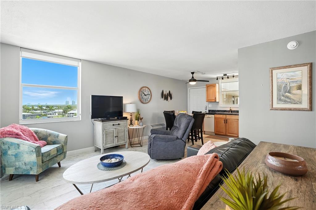 Sweeping Gulf Views from this 6th Floor West Facing Condo! An amazing location just steps away from Bonita Beach where you can enjoy watersports, sunbath, shelling and many other beach activities. Restaurants withing walking distance and world class shopping, dining all at your fingertips. Two pools open and ready to use along with common laundry rooms, temporary pickleball courts and grill areas, many other amenities coming soon. Condo tastefully updated and nicely furnished selling TurnKey! A lucrative investment opportunity with only a 3-day min. for renters allowing owners to create immediate income renting on popular sites such as Airbnb/VRBO. Complex has undergone recent concrete restoration and hurricane reconstruction including new generators, electric rooms, storage rooms, common ground floor bathrooms and laundry rooms just to name a few. Catch a sunset from your 6th floor balcony which offers direct Gulf Views.
