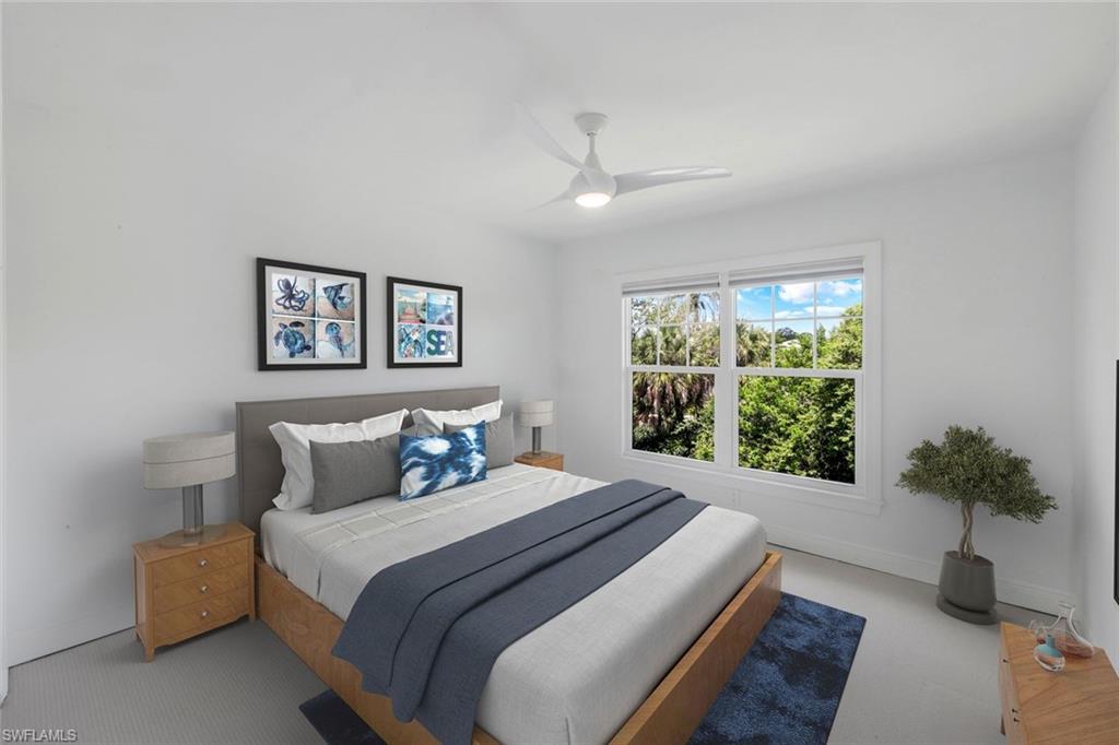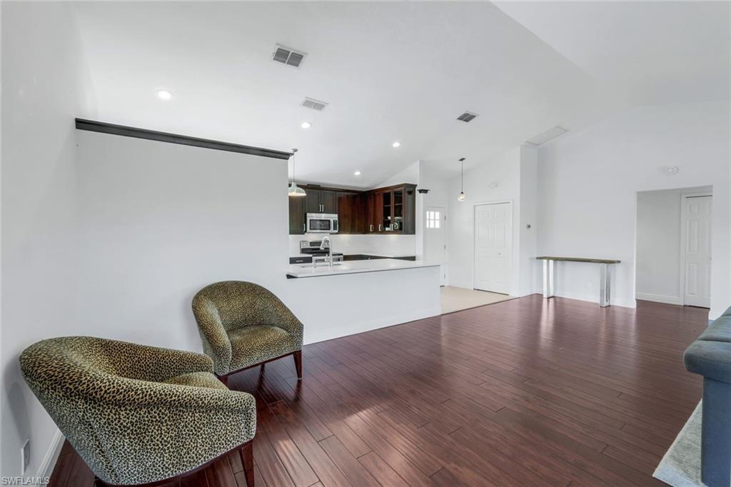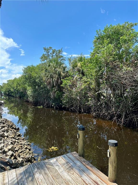 Light & bright, canal-front gulf access home, with recently rebuilt dock (w/ water & electric), has been meticulously cared for. Beautiful wood floors in the main living area and pristine carpet in the bedrooms, new stairs on front and rear of the home. Kitchen has solid wood custom cabinetry, new quartz countertops as well as a breakfast nook space with bay window. Large master bedroom has custom walk-in closet & frameless shower door in the master ensuite. Enjoy peaceful canal views from either the second level 234 Sq Ft screened-in deck or the first level patio. Pocketing sliding glass doors from both the master bedroom and living room lead out to the screened in deck. The laundry room is a great size and downstairs has a 630 Sq Ft enclosed space for storage and/or a workshop. Located just off of W. Terry St which has wide sidewalks, great for biking or walking to Starbucks and Publix, or the dining & shopping at The Promenade at Bonita Bay. Located across the street from Bonita Fairways and a 5 min drive to the restaurants, coffe shops, and entertainment venues of Downtown Bonita. A wind mitigation was conducted on the reinfornced metal roof in 2023 (ask agent for report), the property has a transferrable flood policy as well as a low interest rate VA loan that can be assumed by qualified veterans.