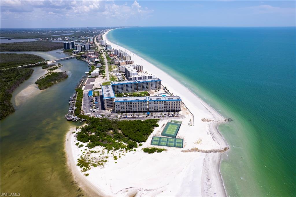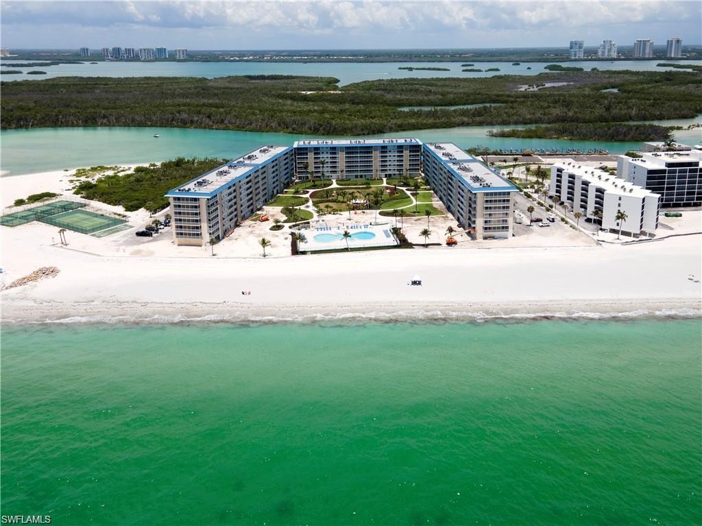 THE COVETED "A" BUILDING...GULF VIEWS FROM EVERY WINDOW...ONE UNIT AWAY FROM THE SANDY BEACH...BONITA BEACH CLUB...WHERE THE BEACH AND BAY MEET! ~THE CONDO~ Situated in the "A" Building with Gulf and Coastal Views all the way to Sanibel from the back open balcony and all the way to Naples from the front screened balcony. Also, only one unit from the end of the building, closest to the beach, allowing for stunning views and privacy. Staircase next to the unit and common elevator down the hallway. Also extra storage closet by the elevators. ~THE KITCHEN~ Beautiful renovated kitchen with solid wood cabinetry, custom pull-out drawers, quartz counters with waterfall edge, SS Frigidaire Gallery appliances, over cabinetry lighting, subway tile backsplash, large farm-stye sink and Gulf Views! ~THE GREAT ROOM~ The kitchen opens up to a large dining and living room. Impact Sliders and Impact Glass Entry Door allow for an abundance of natural light and open up to the front screened lanai with extraordinary Gulf Views & beautiful sunsets! High end designer furniture throughout the condo is included in this purchase. (sold turnkey) Neutral tile throughout except for new carpet in the bedrooms. ~THE BEDROOMS & BATHROOMS~ Both bedrooms have impact sliders leading to the back open shared balcony with panoramic coastal views all the way to Sanibel! Both also have walk-in closets. The Primary Oasis is in hues of sea glass green. The en suite has custom tiled flooring & shower, heavy glass shower door, newer vanity, & lighting/plumbing fixtures. The spacious guest bedroom is located next to guest bath. Guest bathroom with granite counters and walk-in shower. ~A laundry room with stackable washer/dryer, 2024 Water Heater, & 2021 AC complete this Piece of Paradise~ ~THE AMENITIES~ There is not a community on Bonita Beach with such an Abundance of Amenities as BBC: (all amenities are brand new) beachside Tennis/Pickle Ball, huge Fitness Center, 3 stunning Community Rooms, BBQ area, Library, Sparkling Beach Side POOL-(largest on beach), On-Site Manager, Shuffle board, Game Room with Billiards, Ping Pong, Fuse ball, Arcade Games and more! Community Fishing Pier, and lease or purchase a dock to explore the Gulf & Bay! ~THE LOCATION~ Nestled at the very tip of the private Little Hickory Island where the Beach and Bay meet is the Gated Community of Bonita Beach Club! Surrounded by both beach and bay, this unique property allows for beach bathing and boating all on the same property! Bike the island, walk the newly refurbished & wider sandy beach, walk/bike/boat/ or drive to the nearby restaurants and shopping. 30 minutes to the airport! ~THE BUILDING~ Is in the process of some final repairs, a 4' wall installed surrounding the beachside of the property, refurbished pool already in use, new roof in 2021, pool house to be built near pool, beautiful courtyard landscaping, and lastly the parking lot paving to begin work soon. ~WELCOME TO BBC A-202~