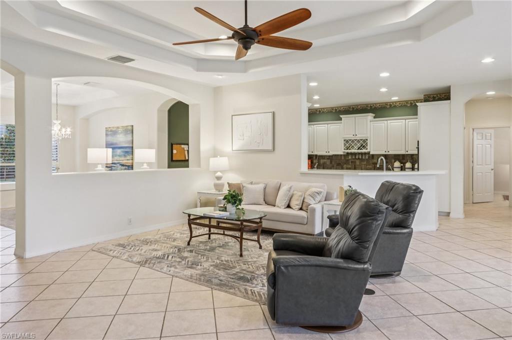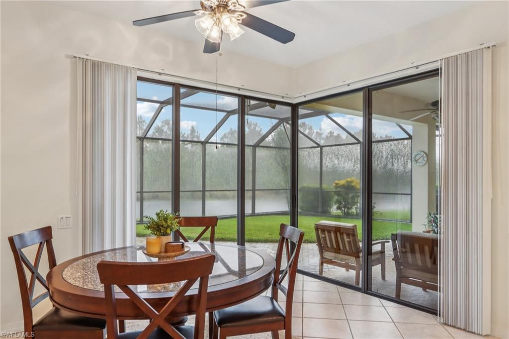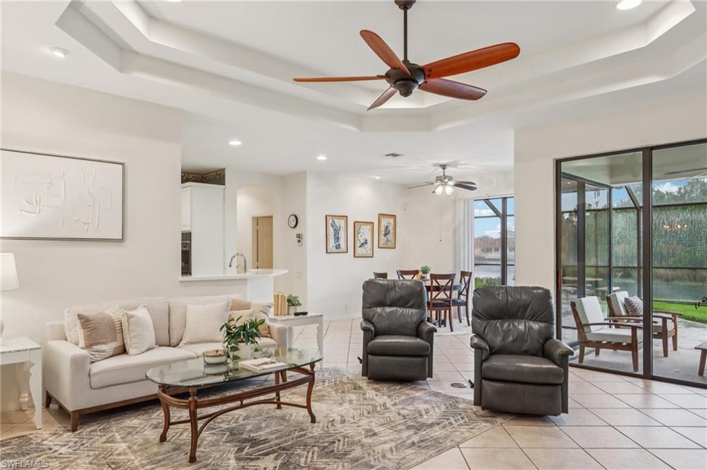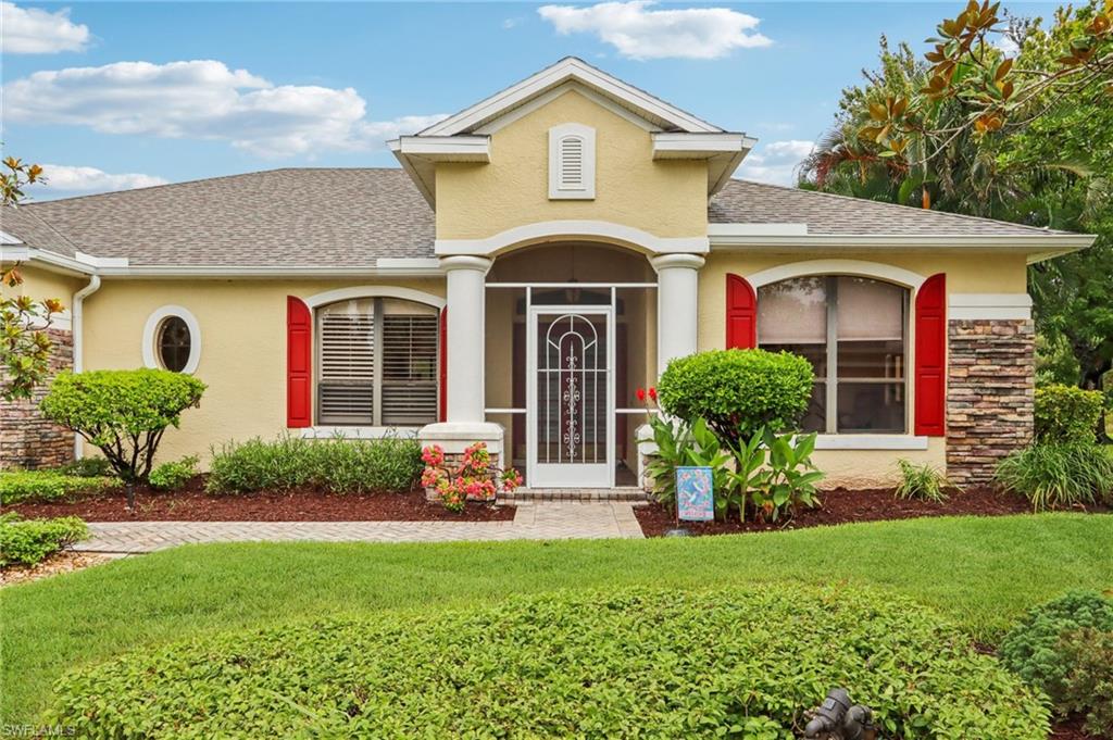 265 Shellstone Ct is a beautifully maintained single family pool home located in the gated community of Pebblebrooke Lakes in North Naples. This 4-bedroom, 2-bath residence offers 2,432 square feet under air and sits on a pie-shaped oversized lot with over 150 feet of lake frontage and tranquil preserve views. The home features a split-bedroom floor plan, formal living and dining rooms, and a spacious family room with abundant natural light. The kitchen is equipped with stainless steel appliances, a Jenn-Air cooktop, island, tile backsplash, and a water filtration system, along with a heat recovery unit for energy-efficient water heating. The solar-heated pool and spa are enclosed in a screened lanai, with unmatched views and privacy. Complemented by a paver patio and driveway for ideal outdoor living. Interior enhancements include crown molding, tray ceilings, and quality finishes throughout. Constructed by Arthur Rutenberg, this home is a rare “Islander II” model. Located close to top-rated schools including Laurel Oak Elementary, Oakridge Middle, and Gulf Coast High School, and just minutes from shopping, dining, and beaches. Pebblebrooke Lakes amenities include clubhouse, community pool, tennis courts, basketball court, playground, and fitness center. Low HOA fees and a prime location make this an exceptional opportunity.