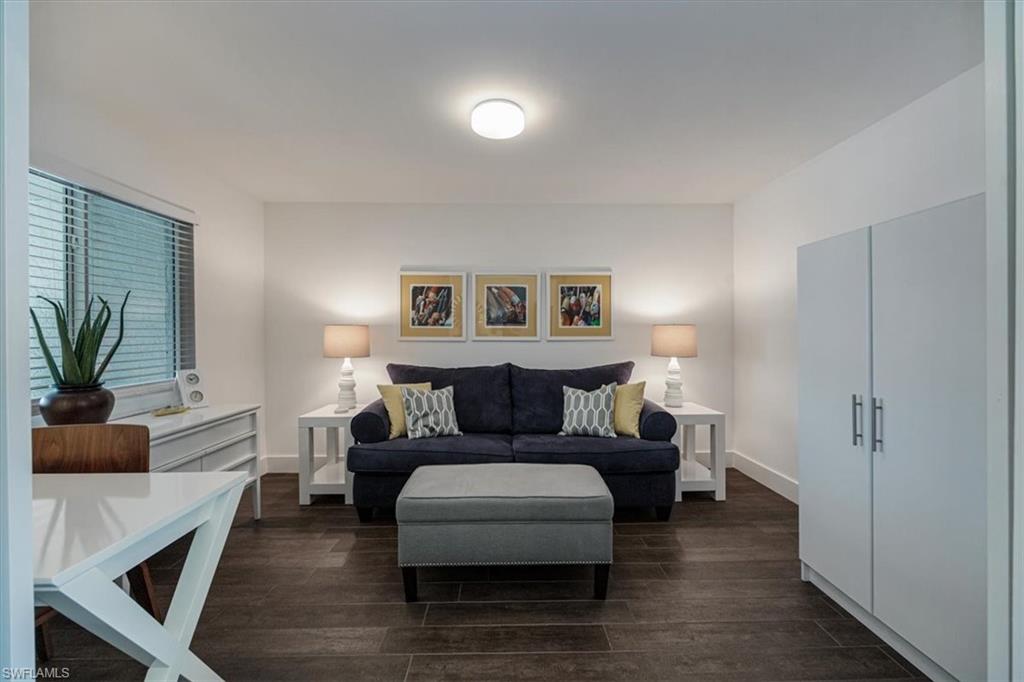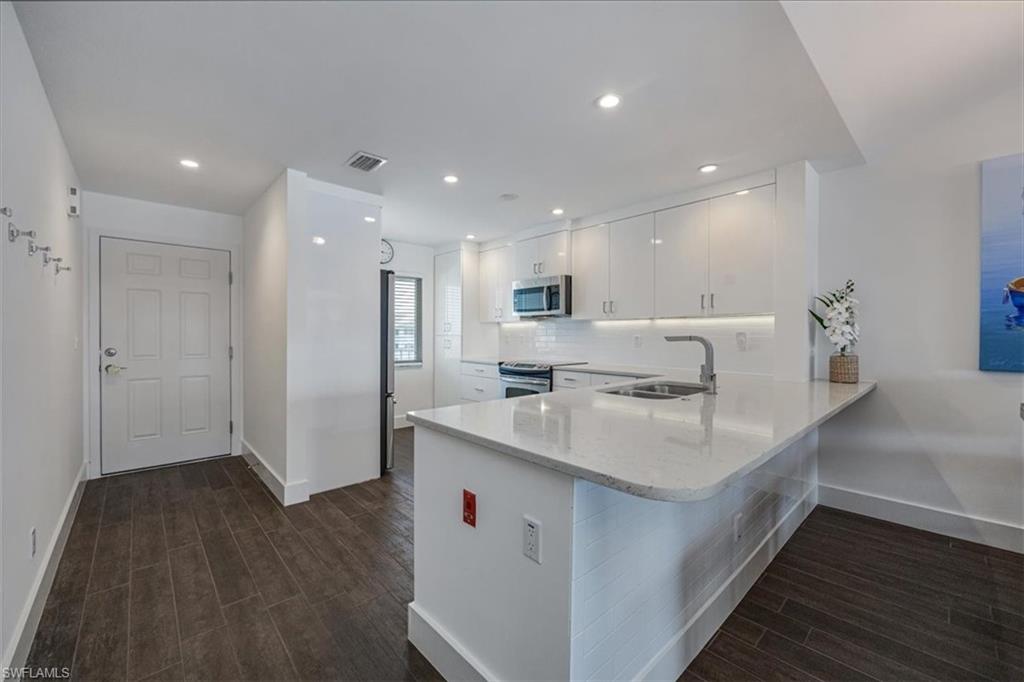Bay views & Beach access! This bayfront property is located directly across the street from a walkway to Vanderbilt Beach delivering a lifestyle that’s as priceless as every Naples sunset you’ll enjoy from it. Designed in a contemporary coastal style, this fully renovated turnkey condo offers 1,248 of living space and features tile flooring, high-end finishes, and designer furnishings. With two full bedrooms and a flexible den space equipped with a sleeper sofa and sliding barn doors for privacy, there is room to comfortably host and entertain everyone. The updated kitchen features quartz counters, European style cabinetry, stainless steel appliances, ample counter space, and a breakfast bar that flows seamlessly into the living and dining area that spill onto your Southern facing screened patio. Conveniences include a 2023 air conditioning, a large laundry area with newer Samsung washer & dryer, a gated entrance, a reserved covered parking space, and plenty of storage. A generous rental policy allows up to 12 rentals (30 day minimum) annually. This conveniently located condominium offers unparalleled access to some of Naples' most vibrant and upscale attractions, including Mercato, La Playa, Waterside Shops, The Ritz-Carlton, The Turtle Club, Whole Foods, and Delnor-Wiggins Pass State Park.