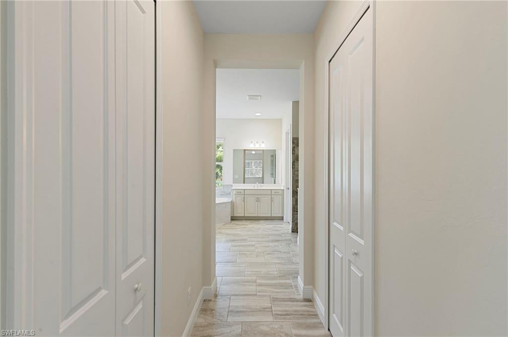 Imagine landing at the airport and being poolside in under 15 minutes. This nearly new, 3-bed + den, 3-bath, 3-car garage home in the private, gated enclave of Oaks of Estero makes seasonal living effortless and luxurious. Less than 10 miles from the warm sandy beaches, just 7 minutes to Coconut Point (where you’ve got every shop, restaurant, and service under the sun), and quietly tucked away from flight paths and highway noise, this home delivers the perfect blend of access and tranquility. With a wide paved driveway leading to your spacious 3-car garage, there’s plenty of room for guests, beach gear, and even your golf cart. This home is move-in ready and built for comfort, convenience, and peace of mind. Speaking of peace of mind. This home was built for it... Low E energy efficient hurricane impact glass windows, electric Kevlar hurricane screens, and a whole-house Generac generator (connected to city gas) that kicks on automatically during any power outage. No scrambling for propane or gasoline. No stress, just seamless protection. Let’s talk ease. Landscaping and yard maintenance? Included. Flooding? This lot stayed high and dry through Florida’s worst. You’re steps away from Estero Community Park’s walking trails, pickleball, amphitheater, and moreand just minutes to Miromar Outlets and Gulf Coast Town Center. Now let’s talk luxury. Inside, neutral tile floors flow throughout, with 8’ doors, 5” baseboards, tray ceilings, and custom lighting. The gourmet kitchen shines with white 42” cabinets, quartz countertops, subway backsplash, and stainless appliances—including a GAS cooktop and built-in wall ovens. The primary suite is your retreat: soaking tub, dual vanities, walk-in shower, and his & hers closets. Triple sliders lead from the open-concept great room to a private lanai and the pool oasis is already pre-plumbed for your future outdoor kitchen dreams. Only 23 homes make up this quiet, hidden neighborhood and this one’s ready for you to move in with no updates needed.