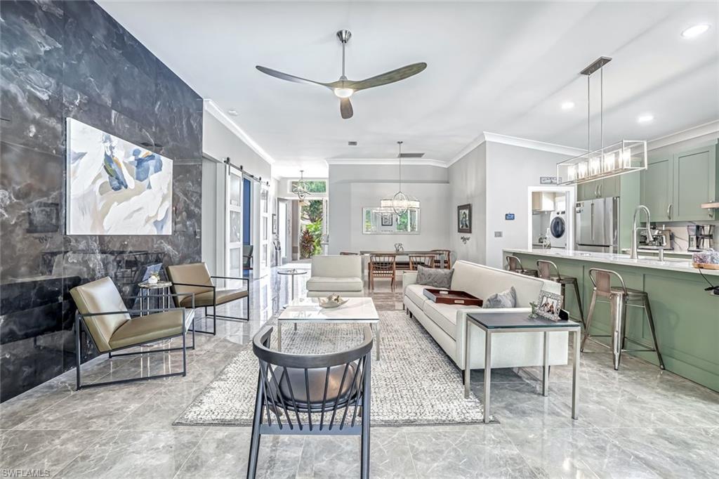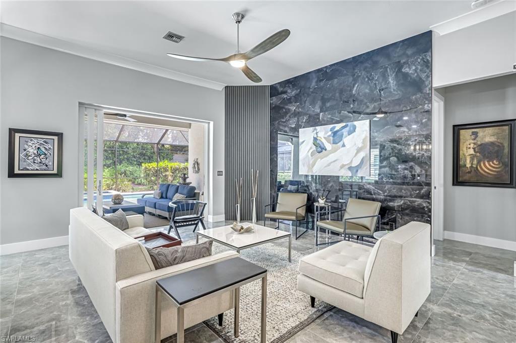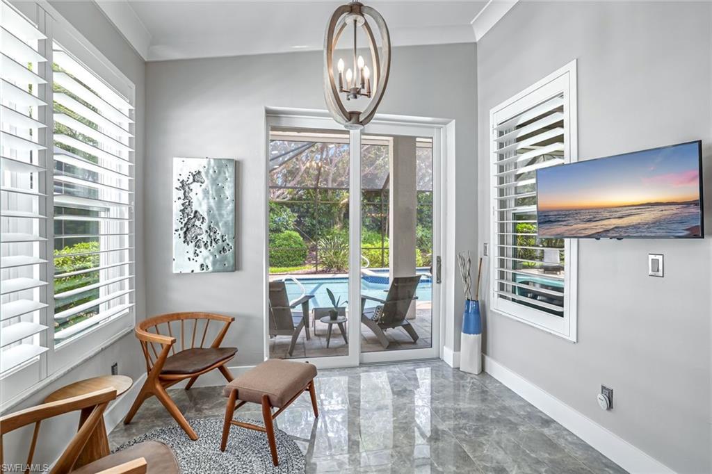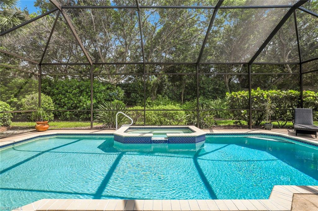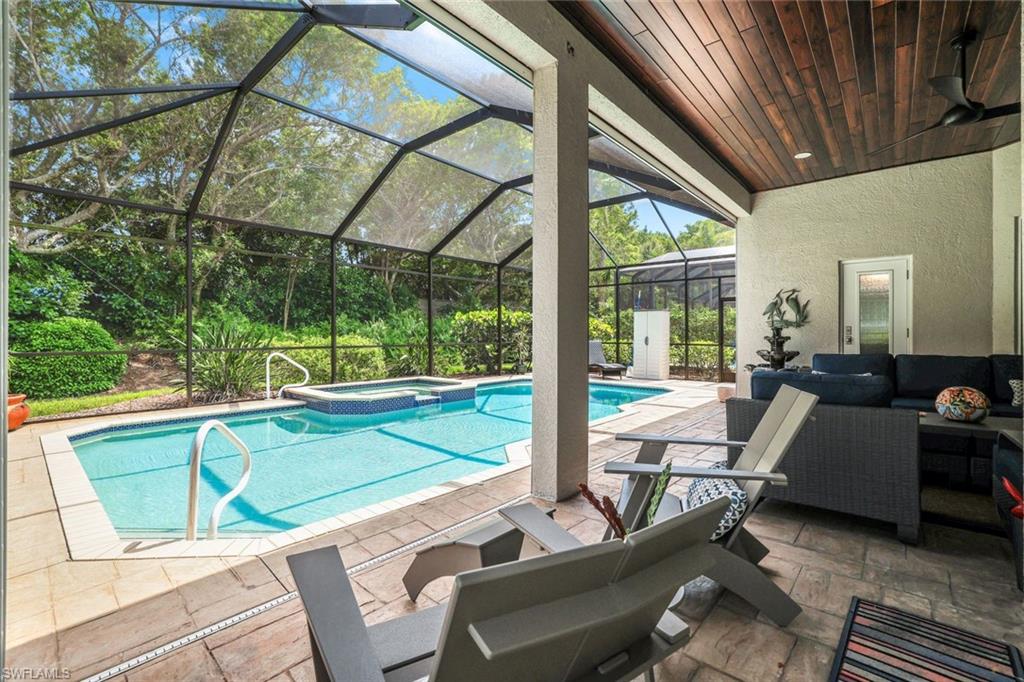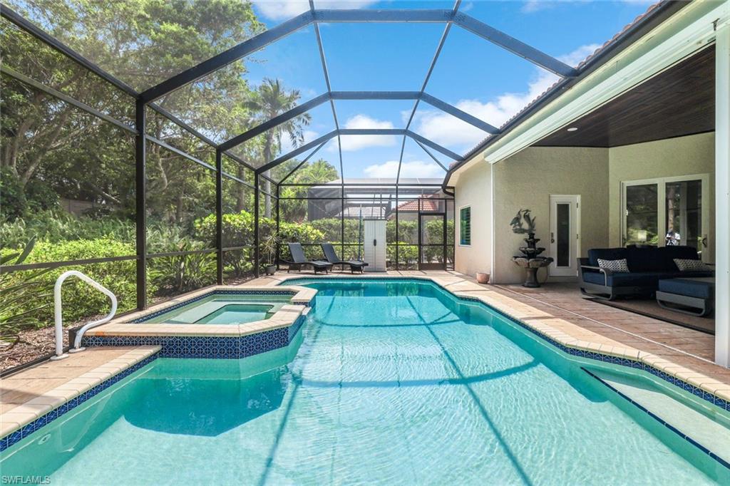 Move-In Ready Gem in Pelican Marsh – Stunning Renovation in Ventura! Don’t miss this rare opportunity to own a beautifully renovated single-family home in Ventura at Pelican Marsh, one of Naples’ most sought-after, amenity-rich communities. With limited single family home inventory in the neighborhood, this transformed residence is a true standout. Step inside to discover a spacious open-concept layout, filled with natural light and refined details throughout. Designer light fixtures, stylish fans, & wood three-panel shaker-style doors add a touch of sophistication. Doorways were raised to 96”. The opening to the den can be closed off with glass sliding barn doors for privacy. Culinary enthusiasts will love the Bosch stainless-steel appliances in the sleek kitchen, complete with premium finishes and ample cabinetry. Every room features custom built-in organized storage systems, while the entire home is adorned with plantation shutters, premium crown molding, 6-inch baseboards, and large-format porcelain tile flooring for a consistent, upscale feel. Additionally, there is an accent wall of darker porcelain tile. The 2nd bedroom serves as a multipurpose room and is enhanced with a Queen-sized Murphy style bed with reading lights, pocketing desk and nightstand. (See photos) The primary suite is a private sanctuary with direct access to the lanai. Indulge in the spa-like bathroom featuring an Italian, floating vanity, backlit mirror, and frameless glass shower. Enjoy peace of mind with impact windows, double-pane sliding doors, and electric storm protection on the lanai. Fresh interior paint, elegant finishes, and energy-efficient upgrades make this home truly move-in ready. The A/C & tile roof were replaced in 2021. Step outside to your tropical retreat, complete with a heated pool and spillover spa, lush landscaping, and a covered lanai with casual seating and a serene freestanding fountain. The 2-car garage offers plenty of storage with a finished epoxy floor, free-standing cabinet, and overhead racks. Ventura is a pet-friendly, meticulously maintained enclave within Pelican Marsh, where residents enjoy socializing at the Courtside restaurant and bar, adjacent to tennis, pickleball & bocce courts and a state-of-the-art fitness center. which is well-attended with trainers and a social director. Live the active lifestyle you’ve dreamed of, close to the beach. This is truly an exceptional home and is ready for you.