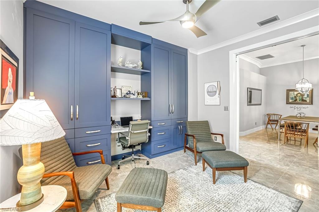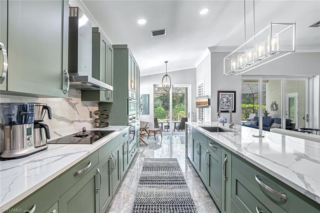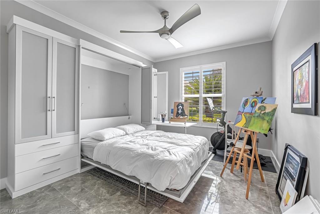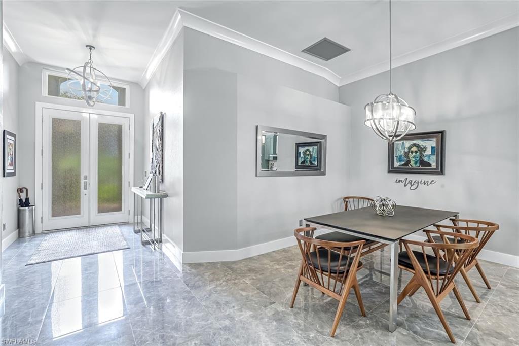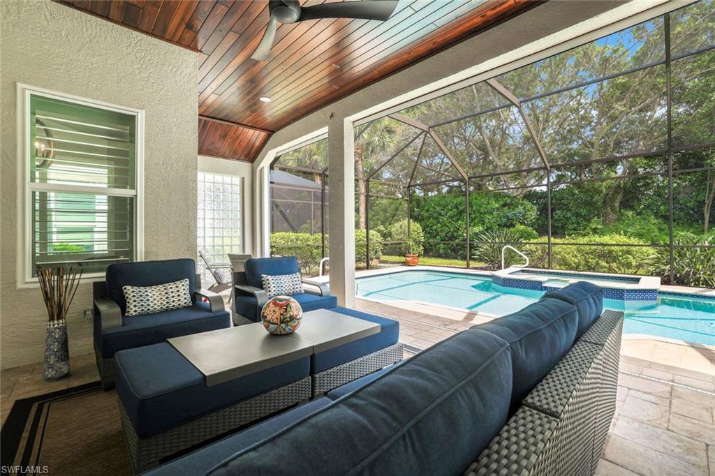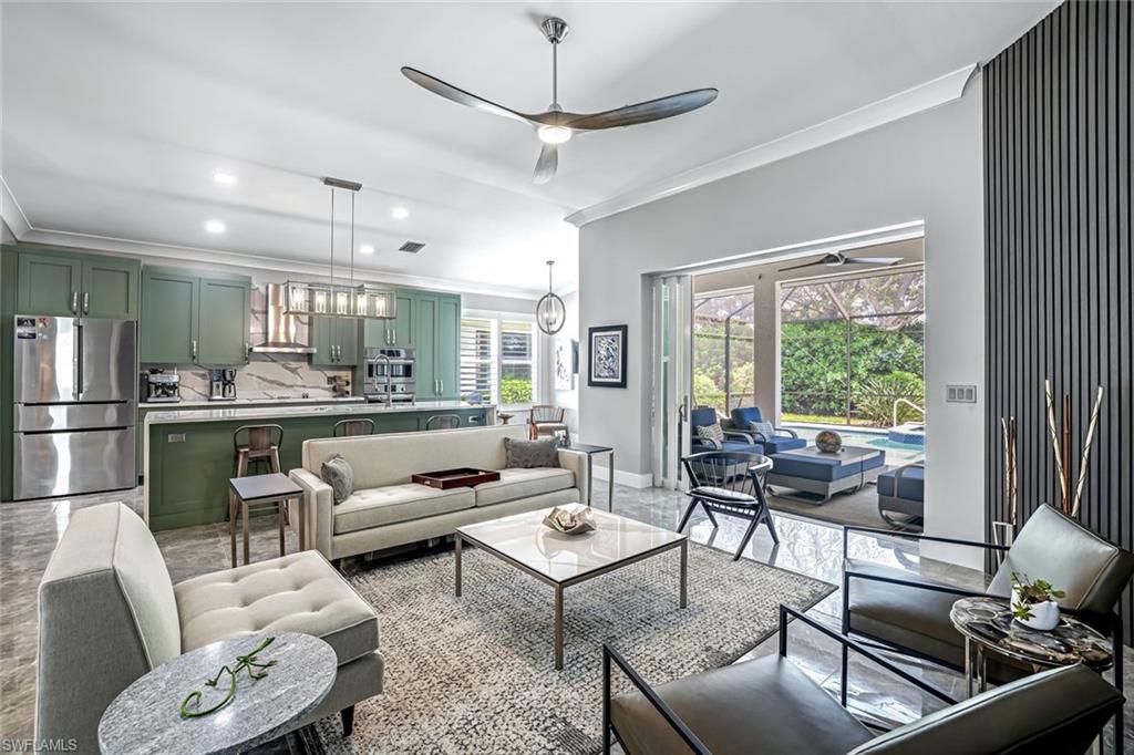 Move-In Ready Gem in Pelican Marsh – Stunning Renovation in Ventura! Don’t miss this rare opportunity to own a beautifully renovated single-family home in Ventura at Pelican Marsh, one of Naples’ most sought-after, amenity-rich communities. With limited single family home inventory in the neighborhood, this transformed residence is a true standout. Step inside to discover a spacious open-concept layout, filled with natural light and refined details throughout. Designer light fixtures, stylish fans, & wood three-panel shaker-style doors add a touch of sophistication. Doorways were raised to 96”. The opening to the den can be closed off with glass sliding barn doors for privacy. Culinary enthusiasts will love the Bosch stainless-steel appliances in the sleek kitchen, complete with premium finishes and ample cabinetry. Every room features custom built-in organized storage systems, while the entire home is adorned with plantation shutters, premium crown molding, 6-inch baseboards, and large-format porcelain tile flooring for a consistent, upscale feel. Additionally, there is an accent wall of darker porcelain tile. The 2nd bedroom serves as a multipurpose room and is enhanced with a Queen-sized Murphy style bed with reading lights, pocketing desk and nightstand. (See photos) The primary suite is a private sanctuary with direct access to the lanai. Indulge in the spa-like bathroom featuring an Italian, floating vanity, backlit mirror, and frameless glass shower. Enjoy peace of mind with impact windows, double-pane sliding doors, and electric storm protection on the lanai. Fresh interior paint, elegant finishes, and energy-efficient upgrades make this home truly move-in ready. The A/C & tile roof were replaced in 2021. Step outside to your tropical retreat, complete with a heated pool and spillover spa, lush landscaping, and a covered lanai with casual seating and a serene freestanding fountain. The 2-car garage offers plenty of storage with a finished epoxy floor, free-standing cabinet, and overhead racks. Ventura is a pet-friendly, meticulously maintained enclave within Pelican Marsh, where residents enjoy socializing at the Courtside restaurant and bar, adjacent to tennis, pickleball & bocce courts and a state-of-the-art fitness center. which is well-attended with trainers and a social director. Live the active lifestyle you’ve dreamed of, close to the beach. This is truly an exceptional home and is ready for you.