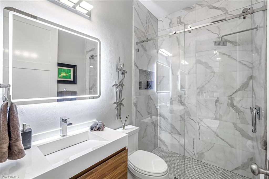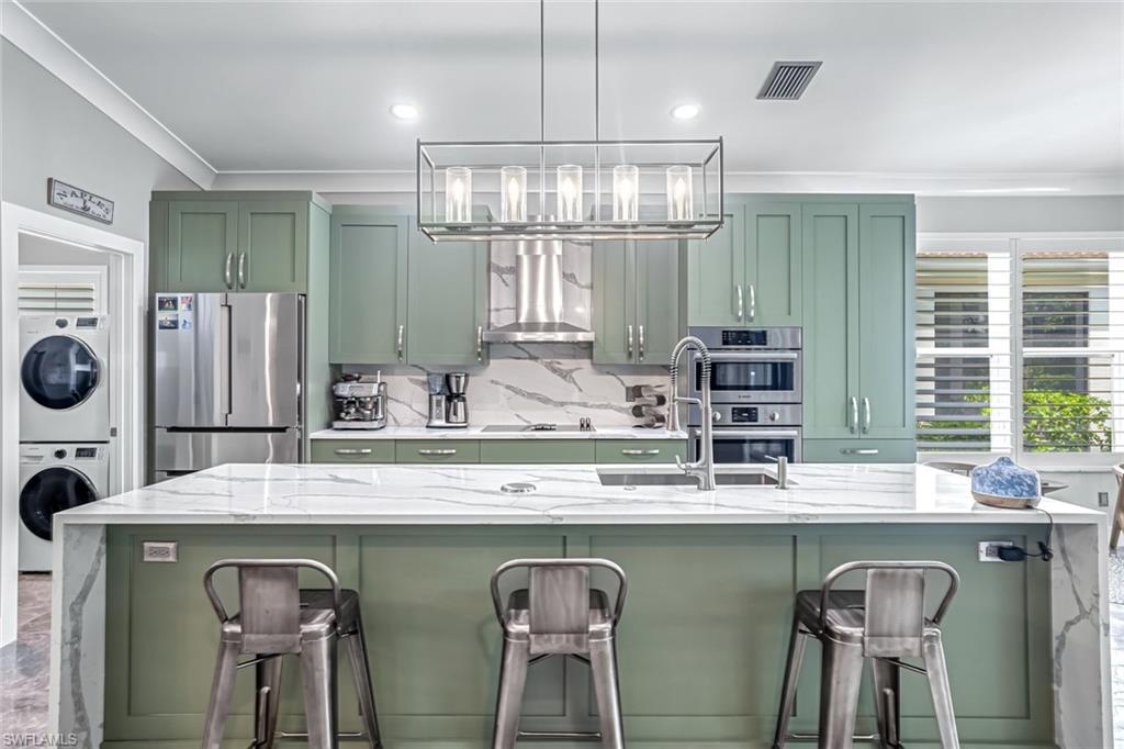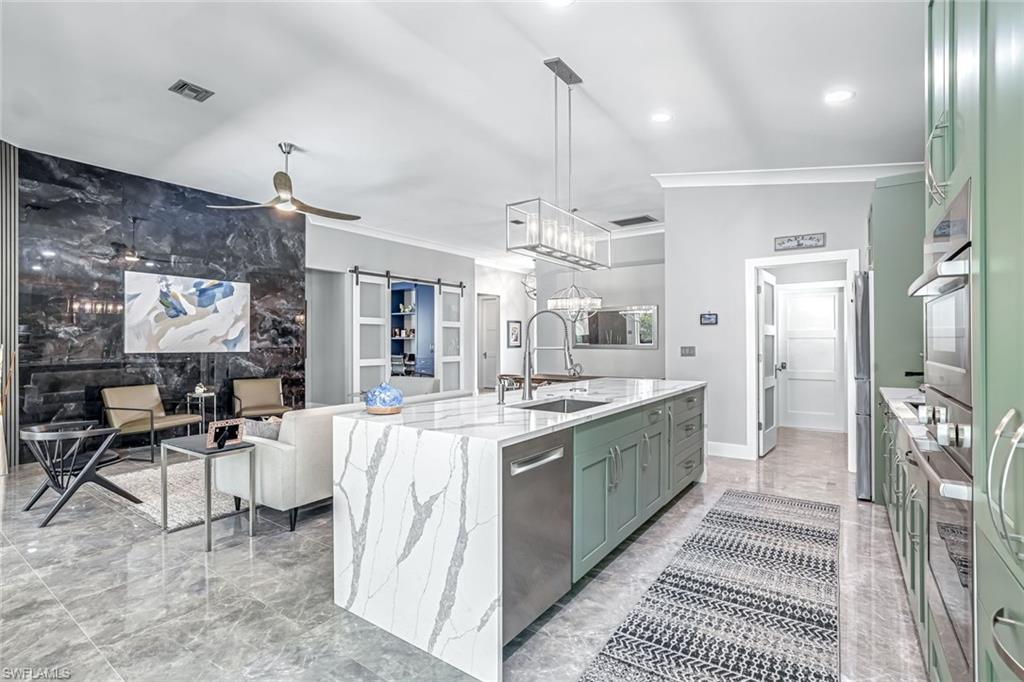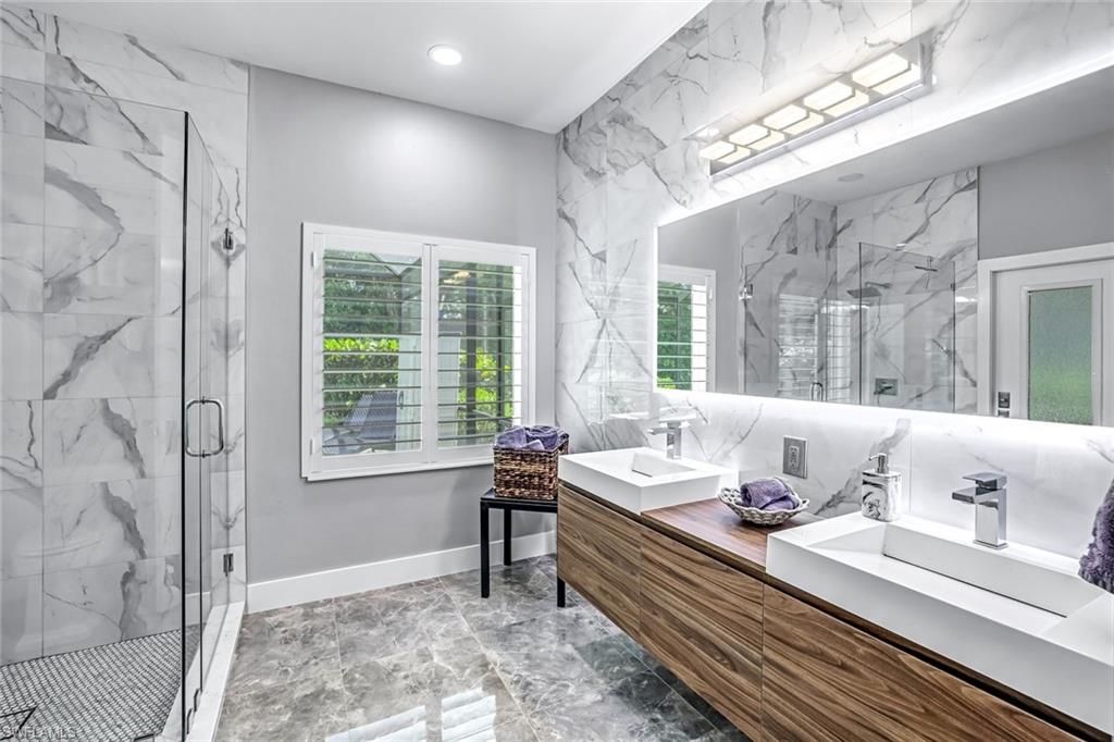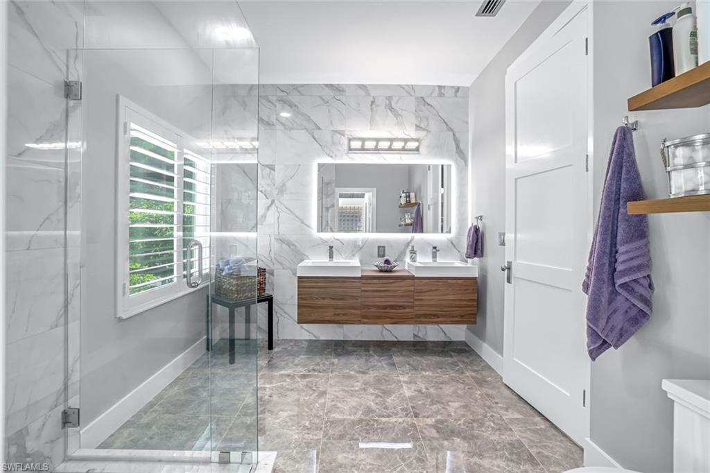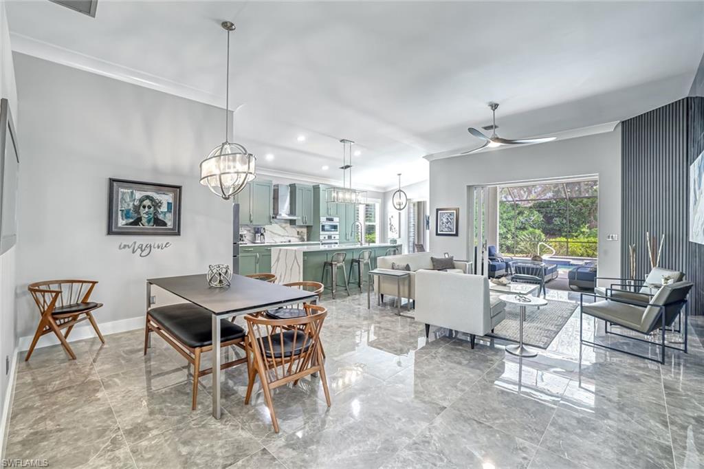 Move-In Ready Gem in Pelican Marsh – Stunning Renovation in Ventura! Don’t miss this rare opportunity to own a beautifully renovated single-family home in Ventura at Pelican Marsh, one of Naples’ most sought-after, amenity-rich communities. With limited single family home inventory in the neighborhood, this transformed residence is a true standout. Step inside to discover a spacious open-concept layout, filled with natural light and refined details throughout. Designer light fixtures, stylish fans, & wood three-panel shaker-style doors add a touch of sophistication. Doorways were raised to 96”. The opening to the den can be closed off with glass sliding barn doors for privacy. Culinary enthusiasts will love the Bosch stainless-steel appliances in the sleek kitchen, complete with premium finishes and ample cabinetry. Every room features custom built-in organized storage systems, while the entire home is adorned with plantation shutters, premium crown molding, 6-inch baseboards, and large-format porcelain tile flooring for a consistent, upscale feel. Additionally, there is an accent wall of darker porcelain tile. The 2nd bedroom serves as a multipurpose room and is enhanced with a Queen-sized Murphy style bed with reading lights, pocketing desk and nightstand. (See photos) The primary suite is a private sanctuary with direct access to the lanai. Indulge in the spa-like bathroom featuring an Italian, floating vanity, backlit mirror, and frameless glass shower. Enjoy peace of mind with impact windows, double-pane sliding doors, and electric storm protection on the lanai. Fresh interior paint, elegant finishes, and energy-efficient upgrades make this home truly move-in ready. The A/C & tile roof were replaced in 2021. Step outside to your tropical retreat, complete with a heated pool and spillover spa, lush landscaping, and a covered lanai with casual seating and a serene freestanding fountain. The 2-car garage offers plenty of storage with a finished epoxy floor, free-standing cabinet, and overhead racks. Ventura is a pet-friendly, meticulously maintained enclave within Pelican Marsh, where residents enjoy socializing at the Courtside restaurant and bar, adjacent to tennis, pickleball & bocce courts and a state-of-the-art fitness center. which is well-attended with trainers and a social director. Live the active lifestyle you’ve dreamed of, close to the beach. This is truly an exceptional home and is ready for you.