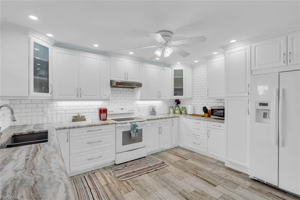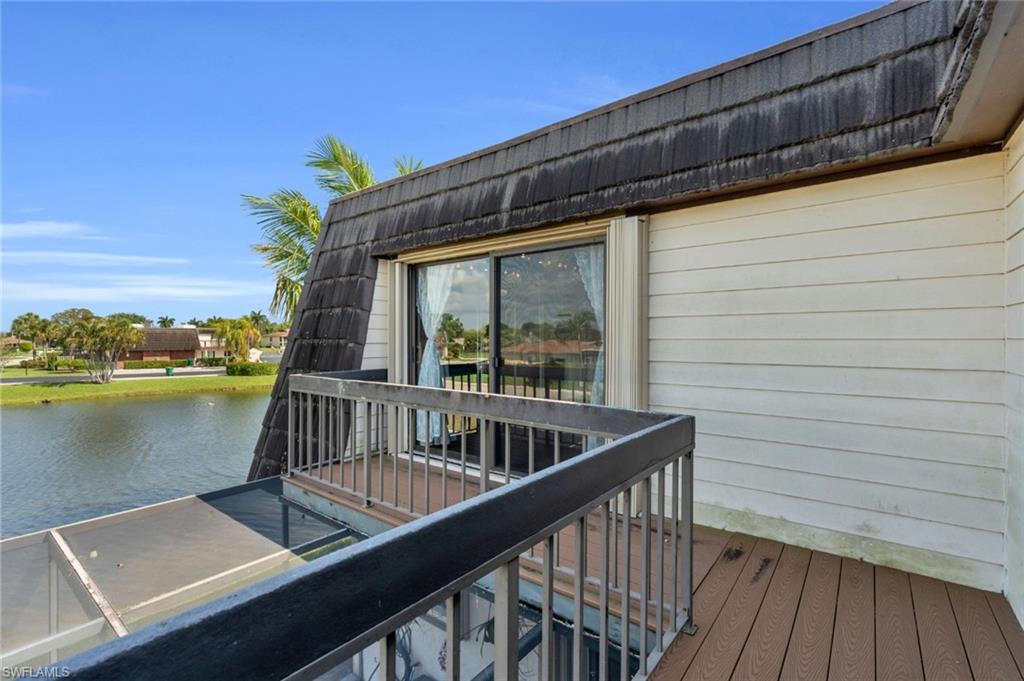 Exceptional Waterfront Townhouse Retreat – Corner Unit! Welcome to your dream home nestled in a tranquil waterfront setting! This stunning 2-story corner-unit townhouse offers the perfect blend of modern comfort and serene living. Featuring 2 bedrooms, 2.5 bathrooms, and countless upgrades, this property is a true standout in today's market. Step inside to discover a bright and renovated kitchen with thoughtful updates, including light-up and under-cabinet lighting, sleek granite countertops, and stylish wood-grain tile flooring throughout the main level. The spacious eat-in kitchen is ideal for casual dining or entertaining, opening seamlessly into the inviting living area. A custom designer tile wall adds a touch of luxury to both the living room and stairwell, enhancing the home’s unique character. The recently installed New Roof (2024) provides peace of mind and long-term value and AC 2017.Upstairs, you'll find two generously sized bedrooms. The primary suite is a private retreat featuring a renovated en-suite bathroom, complete with granite tile finishes, that creates a spa-like experience. The second bedroom features its ensuite bathroom and a large walk-in closet, perfect for family members or guests. Step outside to the screened lanai overlooking a peaceful lake view, the ideal spot to enjoy your morning coffee or unwind at sunrise. A convenient half bathroom on the main level adds extra comfort for visitors. This exceptional townhouse combines style, comfort, and location, offering waterfront living in a quiet, desirable community. Don’t miss your opportunity to own this one-of-a-kind retreat. Schedule your private showing today and fall in love with your new waterfront oasis!