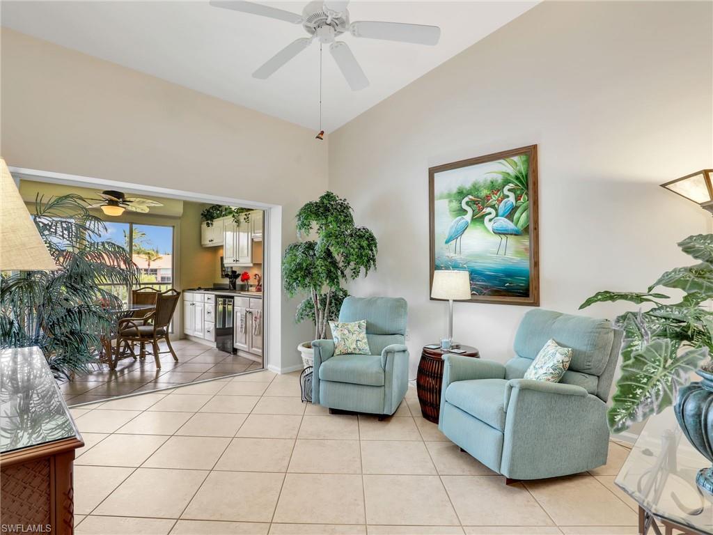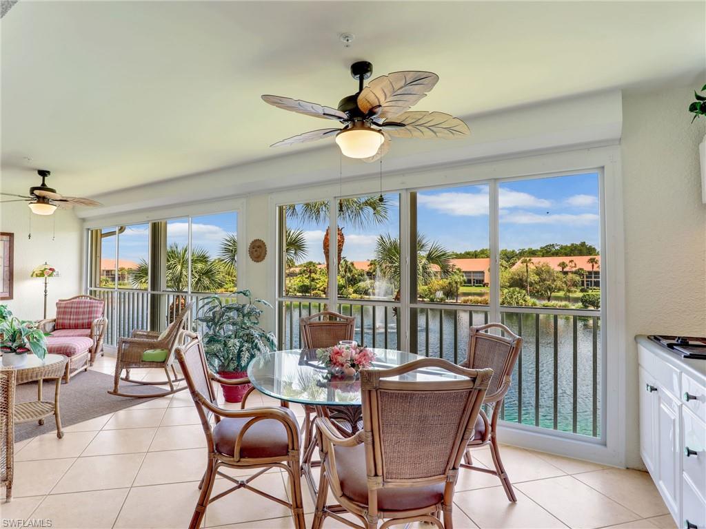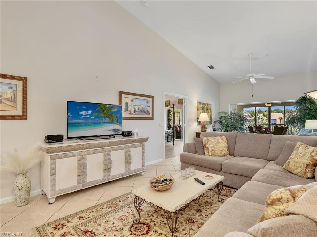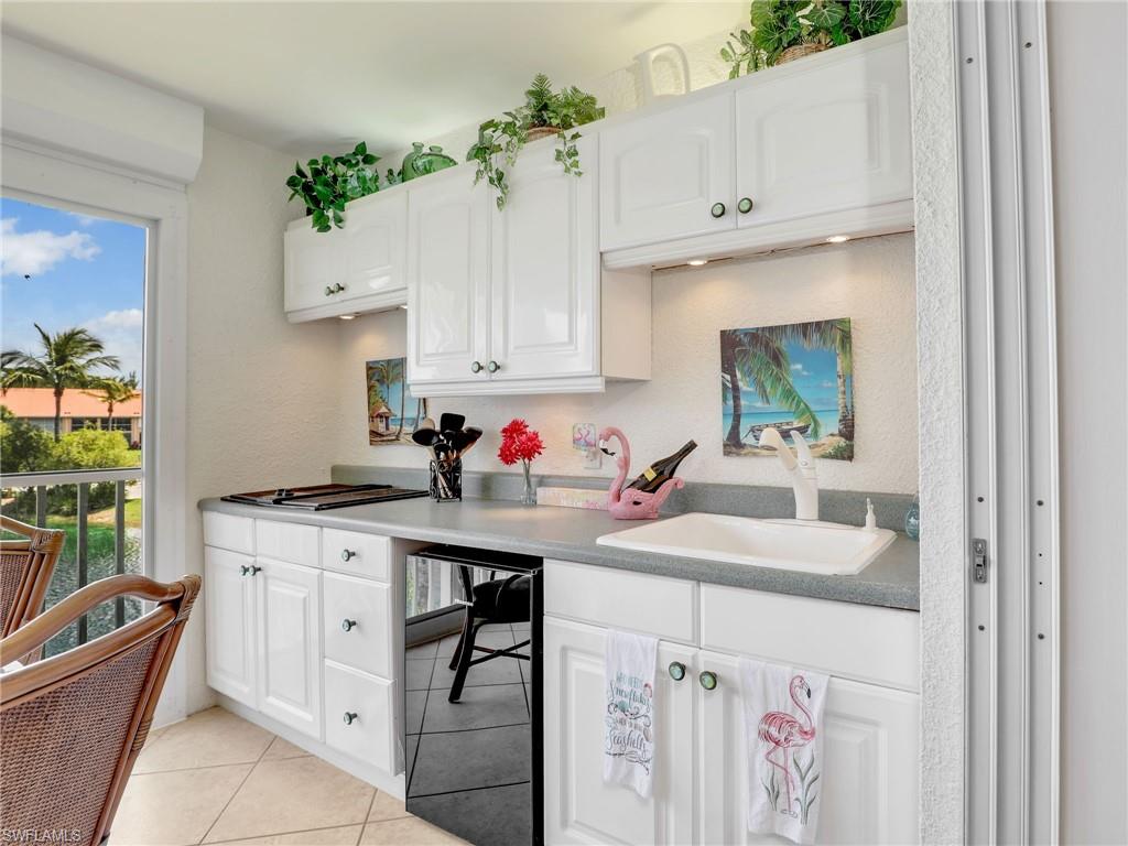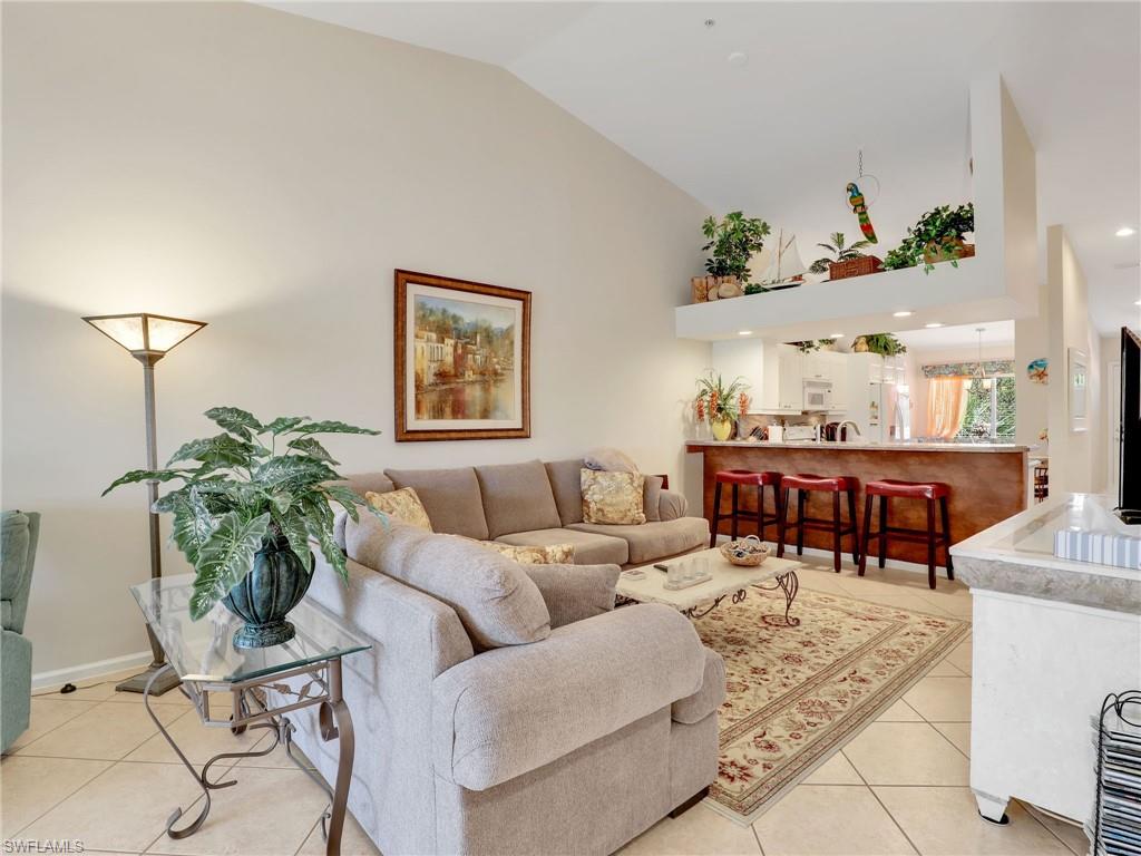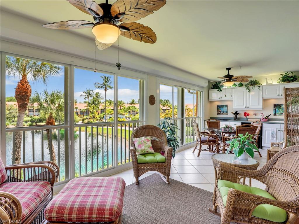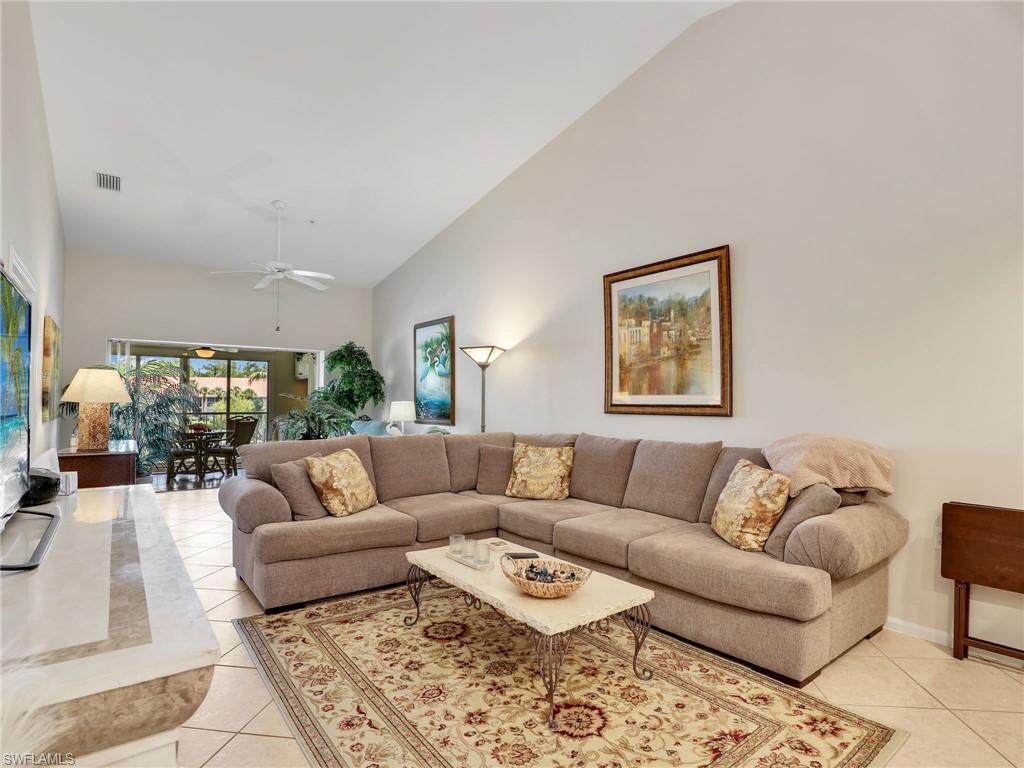 Discover this stunning, second-floor condo featuring breathtaking lake and fountain views. This spacious,Turnkey-furnished home boasts soaring ceilings, oversized, diagonally laid tile, and a neutral decor throughout. The impressive open kitchen features bright white cabinetry, abundant storage, gleaming granite countertops, and ample natural light. The expansive living area flows seamlessly into a large lanai, complete with an outdoor kitchen and recenty added sliders to expand the living area—perfect for entertaining. Residents can enjoy a short stroll to the resort-style pool with a lazy river, offering ultimate relaxation. This slice of paradise also includes a detached one-car garage for added privacy and convenience. Beyond the lazy river, Falling Waters Beach Resort provides an array of amenities for an active lifestyle, including a sparkling lap pool, pickleball courts, tennis courts, shuffleboard, and bocce ball. The community also fosters a vibrant social scene with numerous clubhouse activities, along with ample opportunities for walking, jogging, and biking. Ideally nestled between Naples and Marco Island, the resort's prime location provides convenient access to world-class shopping, dining, and the renowned Naples sugar sand beaches. Condo fees cover basic cable, water, sewer, trash, pest control, and lawn and tree maintenance, ensuring a worry-free living experience. This home is ready for immediate occupancy and has no tenant agreements!