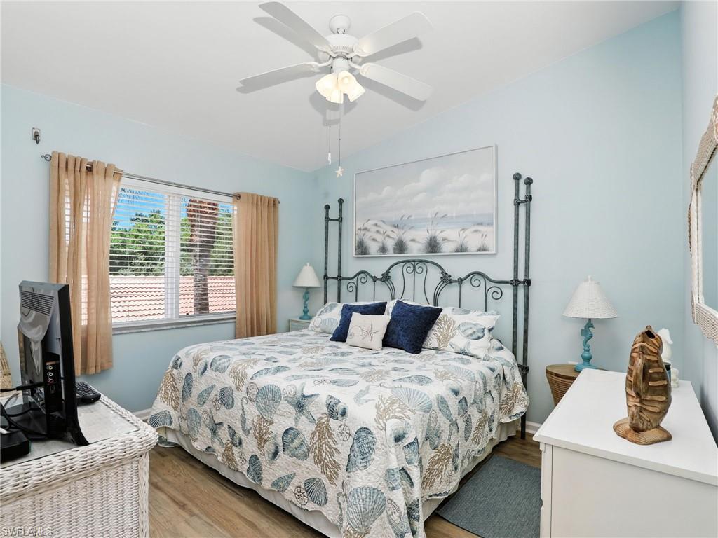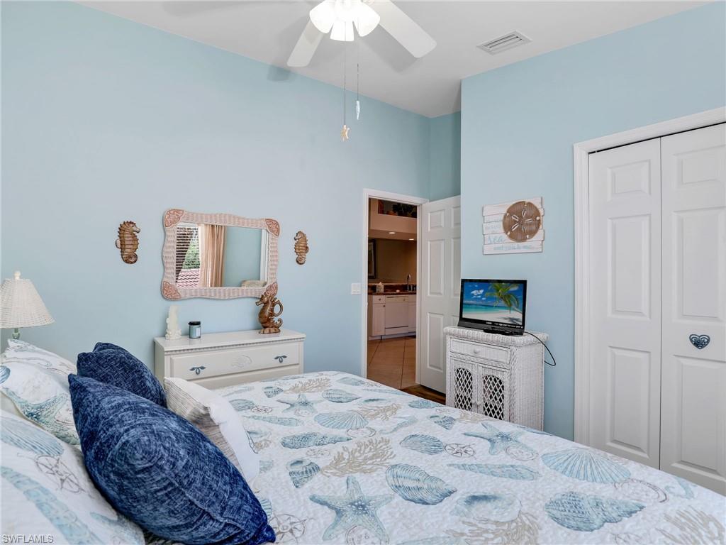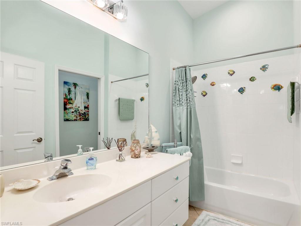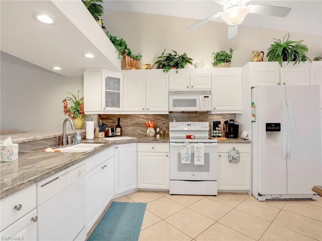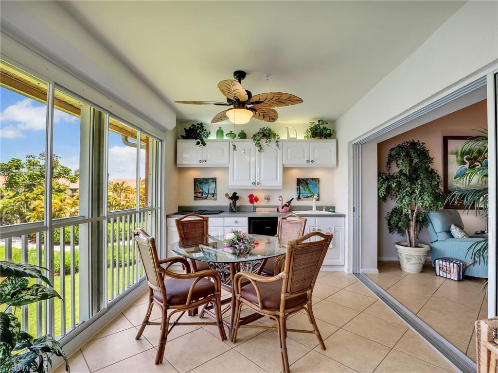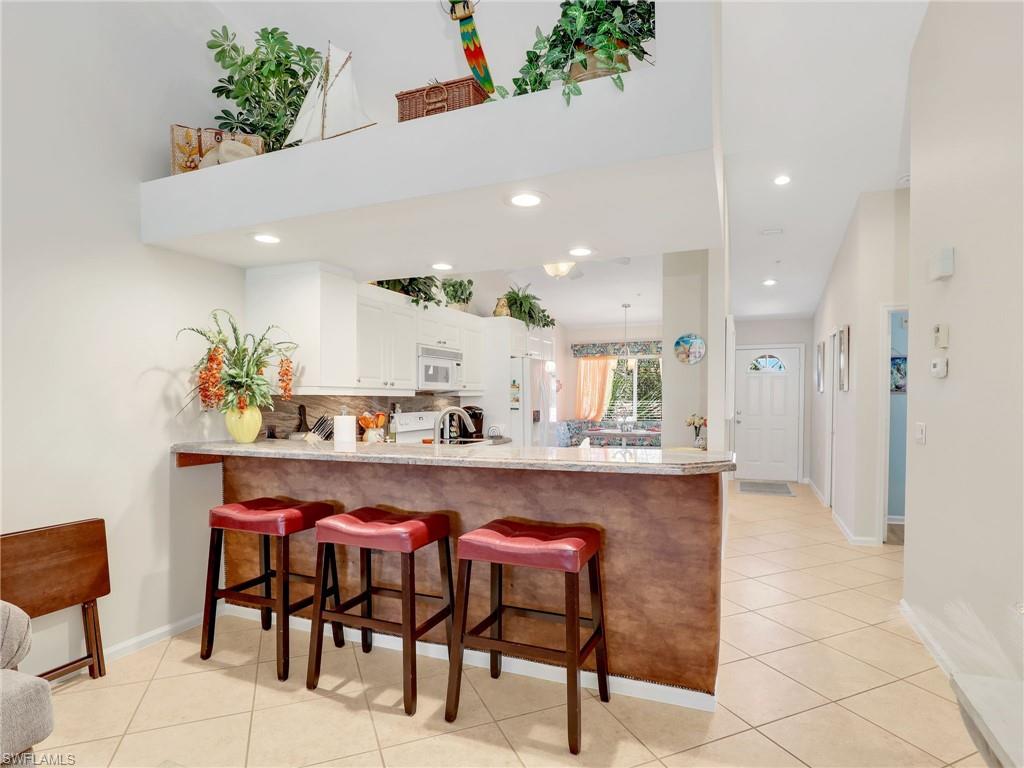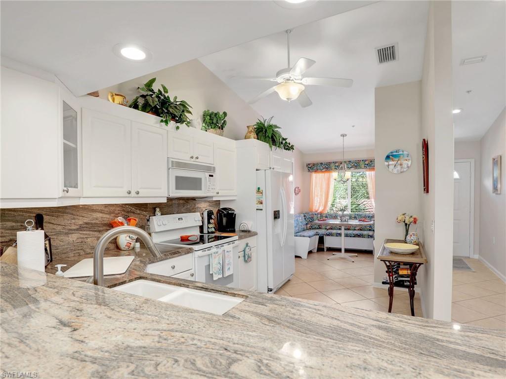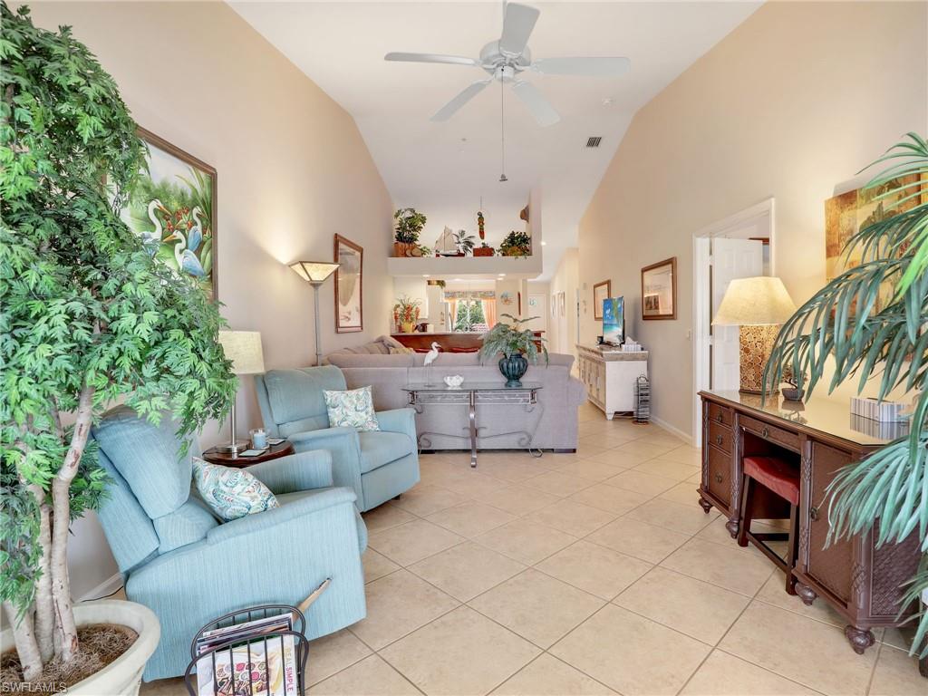 Discover this stunning, second-floor condo featuring breathtaking lake and fountain views. This spacious,Turnkey-furnished home boasts soaring ceilings, oversized, diagonally laid tile, and a neutral decor throughout. The impressive open kitchen features bright white cabinetry, abundant storage, gleaming granite countertops, and ample natural light. The expansive living area flows seamlessly into a large lanai, complete with an outdoor kitchen and recenty added sliders to expand the living area—perfect for entertaining. Residents can enjoy a short stroll to the resort-style pool with a lazy river, offering ultimate relaxation. This slice of paradise also includes a detached one-car garage for added privacy and convenience. Beyond the lazy river, Falling Waters Beach Resort provides an array of amenities for an active lifestyle, including a sparkling lap pool, pickleball courts, tennis courts, shuffleboard, and bocce ball. The community also fosters a vibrant social scene with numerous clubhouse activities, along with ample opportunities for walking, jogging, and biking. Ideally nestled between Naples and Marco Island, the resort's prime location provides convenient access to world-class shopping, dining, and the renowned Naples sugar sand beaches. Condo fees cover basic cable, water, sewer, trash, pest control, and lawn and tree maintenance, ensuring a worry-free living experience. This home is ready for immediate occupancy and has no tenant agreements!