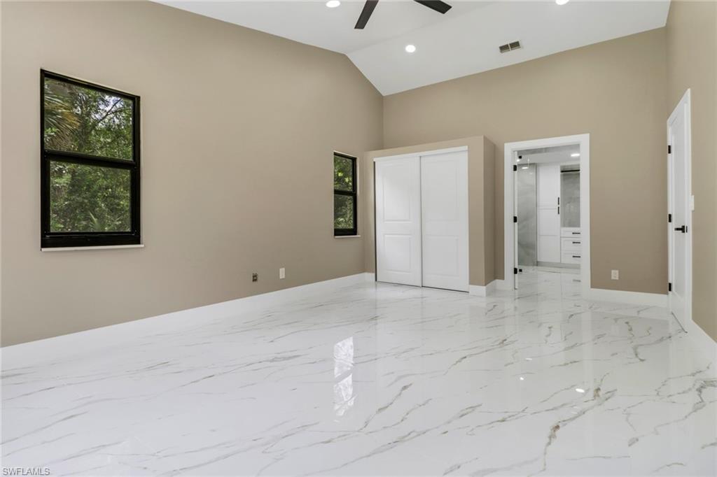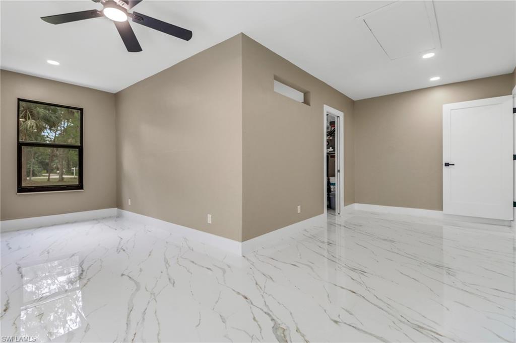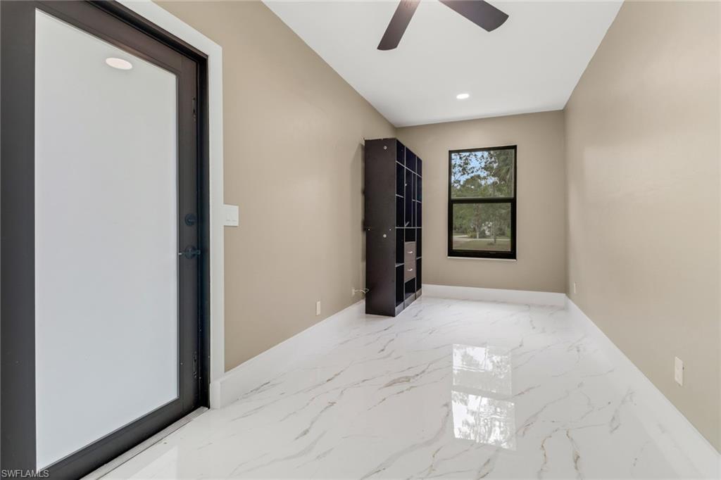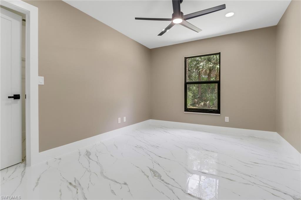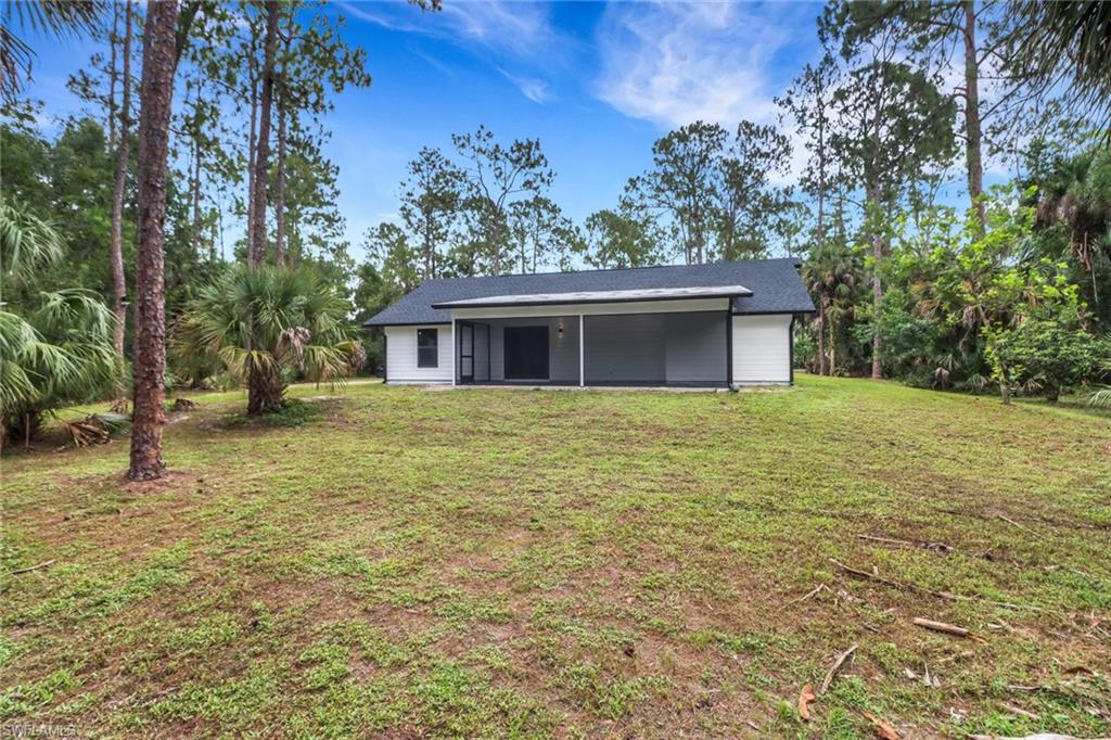 5 ACRES! 100 % UPLANDS! Discover the perfect blend of modern living and peaceful seclusion with this beautifully remodeled 4-bedroom, 3-bath home, situated on 5 acres of wooded uplands just minutes from the heart of Naples. Step inside to an open floor plan highlighted by large white marble tile throughout, sleek modern fixtures, and custom cabinetry. At the center of the home, the spacious kitchen and oversized island create a natural gathering space, ideal for entertaining. The master suite offers exceptional natural light with two bay windows and additional side windows. Its spa-inspired bathroom features full-height designer tile, a stand-alone soaking tub, separate walk-in shower with rainfall showerheads, dual vanities, and touchless sensor toilet. Additionally, the converted garage now serves as a fully finished 1-bedroom, 1-bath in-law or guest suite—ideal for extended family or visitors. Recent upgrades include a brand-new roof, all-new impact-rated windows and doors, and fresh exterior paint. The home’s durable crete-board siding offers the look of wood with added longevity. A screened lanai with stylish finishes and matching large-format grey tile completes the outdoor living space. This property offers both privacy and style—close to all major roads (Golden Gate Blvd, Vanderbilt Ext, Immokalee Rd, and Collier Blvd). Minutes to Publix, CVS, Founders Square and everything Naples has to offer.