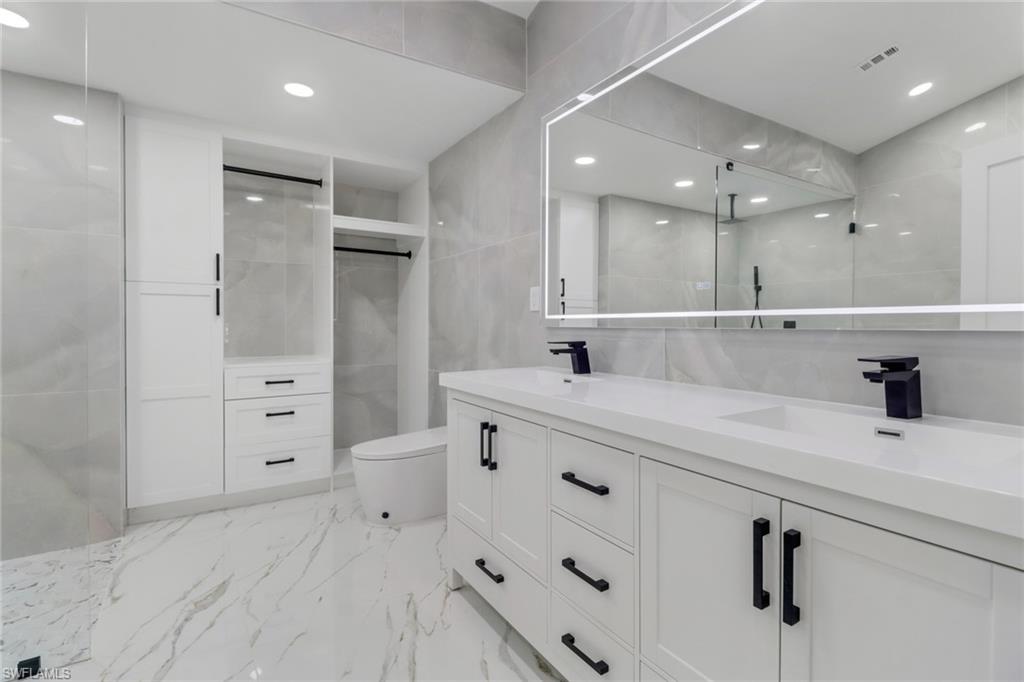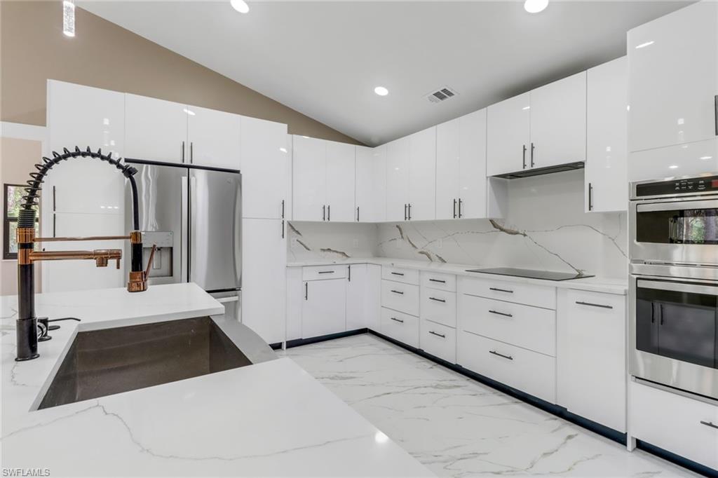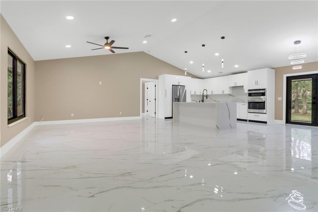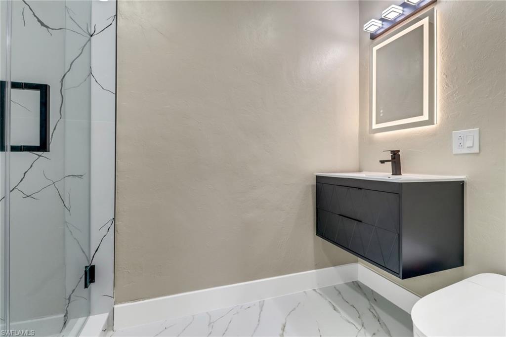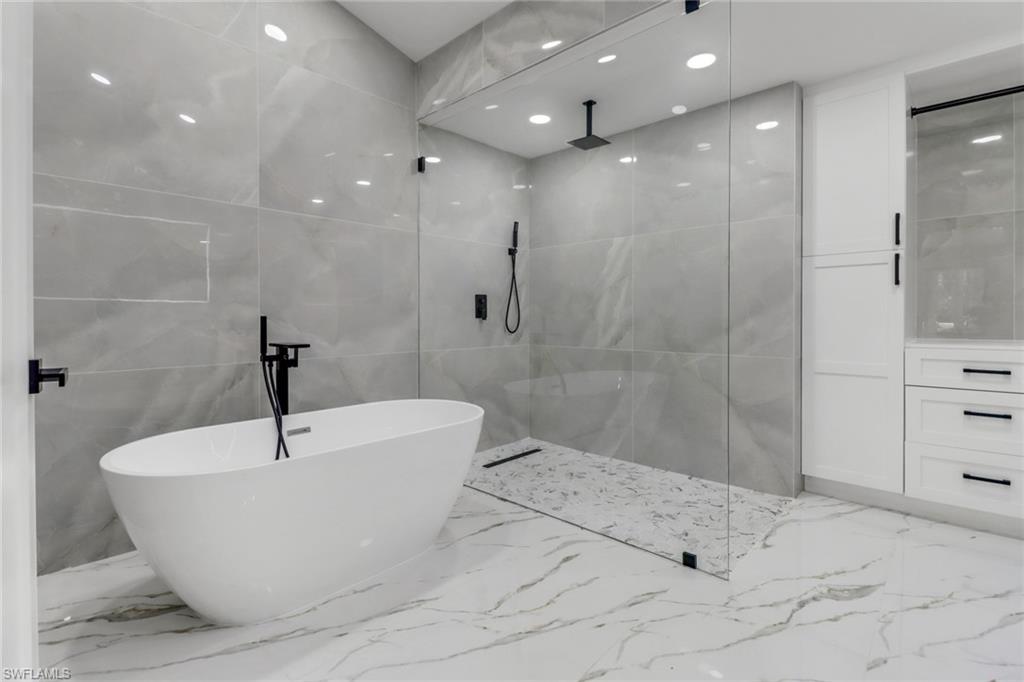 5 ACRES! 100 % UPLANDS! Discover the perfect blend of modern living and peaceful seclusion with this beautifully remodeled 4-bedroom, 3-bath home, situated on 5 acres of wooded uplands just minutes from the heart of Naples. Step inside to an open floor plan highlighted by large white marble tile throughout, sleek modern fixtures, and custom cabinetry. At the center of the home, the spacious kitchen and oversized island create a natural gathering space, ideal for entertaining. The master suite offers exceptional natural light with two bay windows and additional side windows. Its spa-inspired bathroom features full-height designer tile, a stand-alone soaking tub, separate walk-in shower with rainfall showerheads, dual vanities, and touchless sensor toilet. Additionally, the converted garage now serves as a fully finished 1-bedroom, 1-bath in-law or guest suite—ideal for extended family or visitors. Recent upgrades include a brand-new roof, all-new impact-rated windows and doors, and fresh exterior paint. The home’s durable crete-board siding offers the look of wood with added longevity. A screened lanai with stylish finishes and matching large-format grey tile completes the outdoor living space. This property offers both privacy and style—close to all major roads (Golden Gate Blvd, Vanderbilt Ext, Immokalee Rd, and Collier Blvd). Minutes to Publix, CVS, Founders Square and everything Naples has to offer.