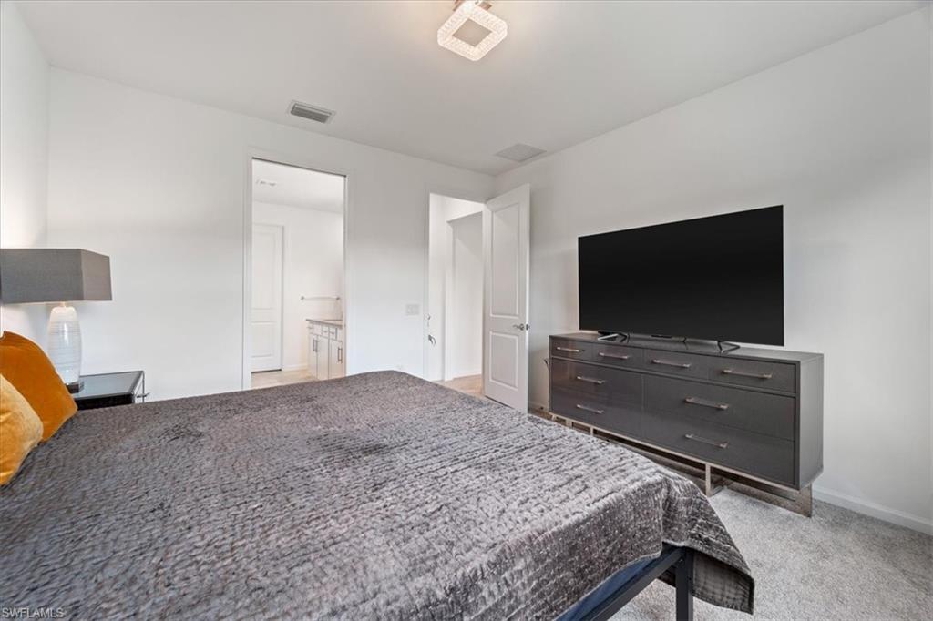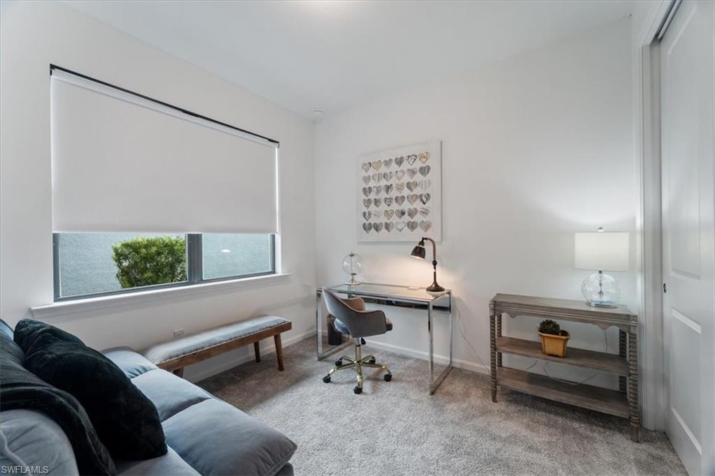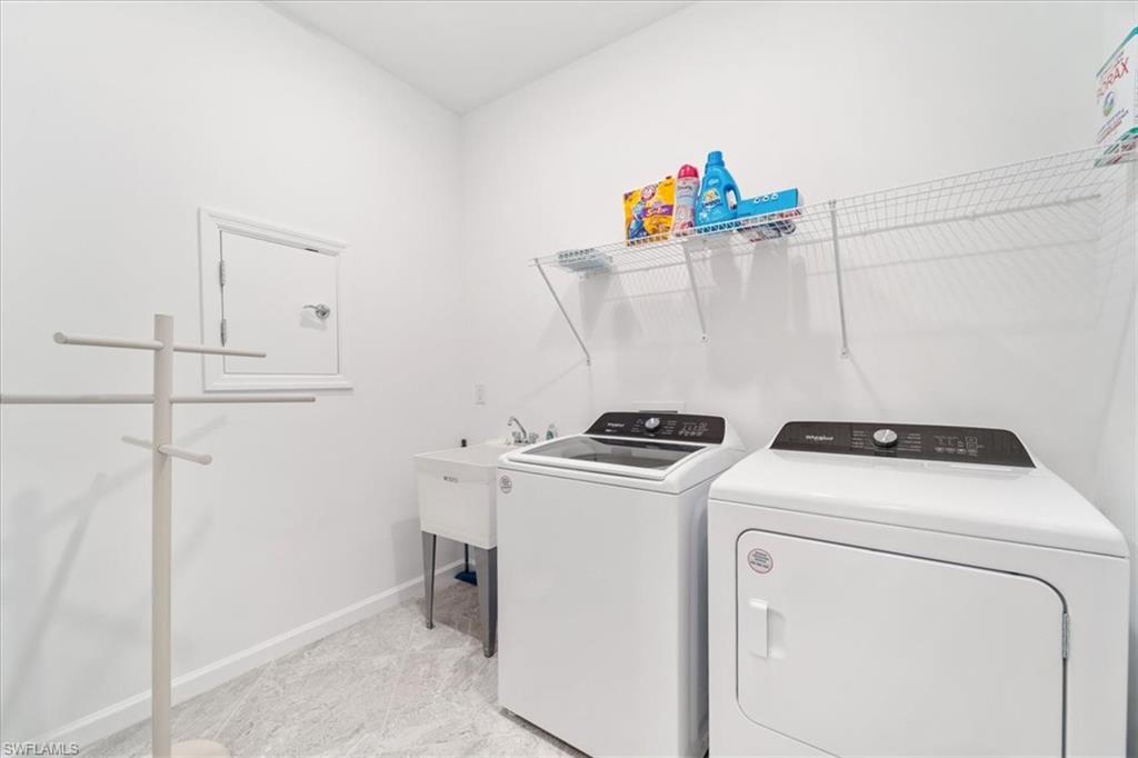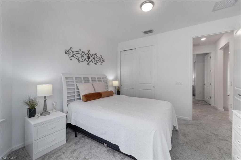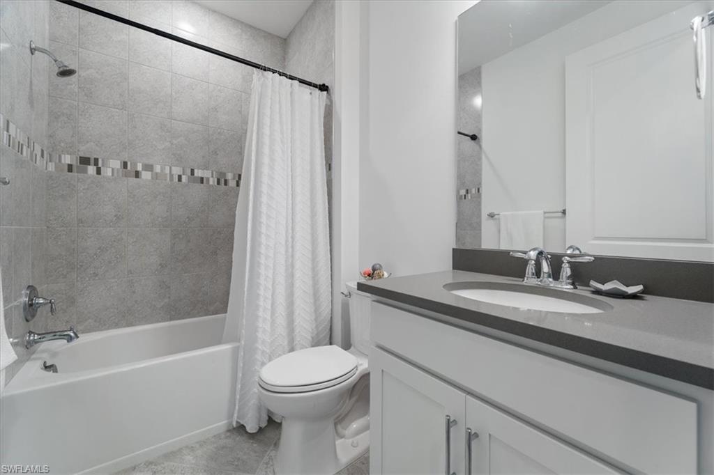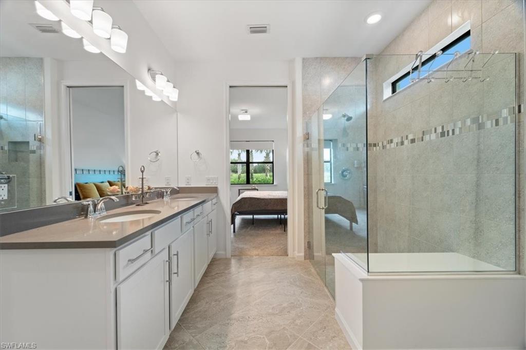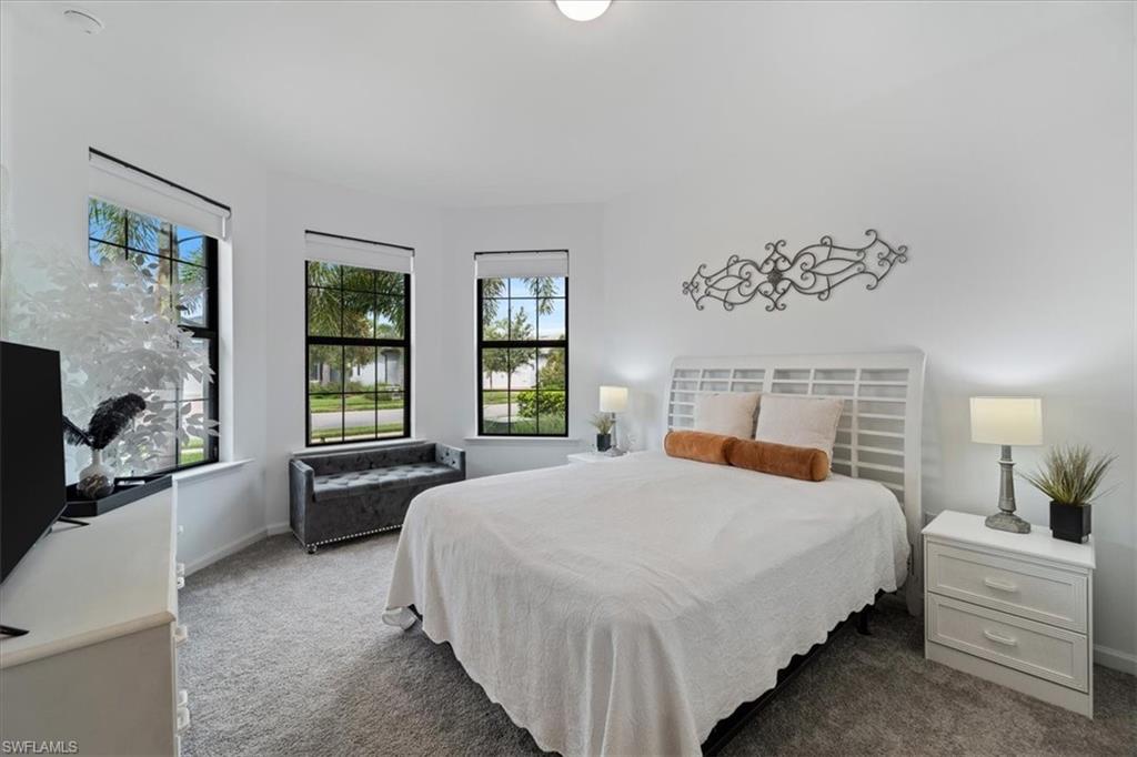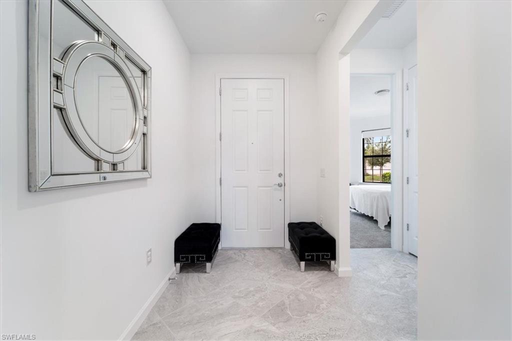 Welcome Home to this spectacular Prestige Pulte built home in the Del Webb 55+ community located in Ave Maria, FL. Tasteful upscale enhancements abound in this highly UPGRADED home! EXTENDED room off dining area with sliders in both the extended room and the living room area, SONOS Sound system, upgraded cabinets throughout including crown molding and extended draws in kitchen, quartz counters, SS appliances, large kitchen island, upgraded tile level placed on the diagonal, 8 ft doors, professionally installed blinds throughout with cordless blinds in all windows for easy up and down motion and a remote controlled blind in the sliders. The living room has built-in Sonos surround sound, installed floor outlet in center of room. Whole home is set up as a smart home with extended WIFI that can be extended out to the Lanai, plus every room wired for cable hookup including the Lanai. The Master bathroom has seamless glass shower door, quartz counters with double sinks, floor to ceiling tiles in both bathrooms. The exterior front elevation is upgraded, landscaping is enhanced with outdoor lighting, the lanai is plumbed for an outdoor kitchen installation. The master bathroom also has a convenient pass through window (with door) to the laundry room. Amenities include two pools, spa, pickleball, library, cafe, large event room, fitness gym, card, billiards and meeting rooms. Come experience life to the fullest where there are activities for everyone. With the negotiable furniture, this home could be effortlessly ready to step into so you can begin your Florida lifestyle. Welcome Home!
