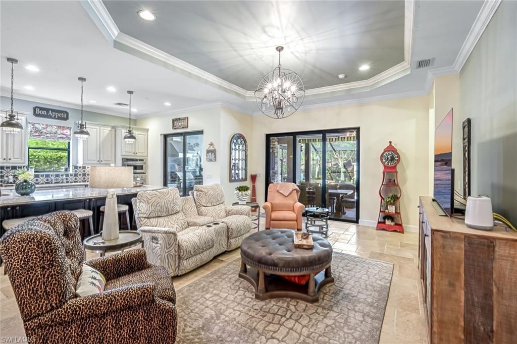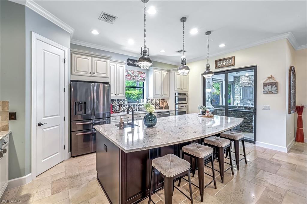 Private Oasis in Pebble Pointe at The Brooks – 3 Bed + Den | 3 Bath Pool Home with Outdoor Kitchen & Whole-House Generator with Impact windows and doors. Welcome to your slice of paradise in the heart of Southwest Florida! This beautifully appointed 3-bedroom + den, 3-bath home is nestled at the end of a quiet street in Pebble Pointe at The Brooks, offering exceptional privacy with no neighbor on one side and the community dog park next door. Step into your private outdoor retreat, where lush tropical landscaping surrounds the screened lanai with panoramic picture window screens. Enjoy year-round entertaining with a fully equipped outdoor kitchen featuring a built-in grill, mini fridge, sink, and bar seating. Watch the big game from the covered TV lounge with electric storm screens, take a dip in the sparkling pool & spa, or dine al fresco in comfort beneath the retractable awning. Inside, the home showcases elegant touches throughout — including crown molding, 3” baseboards, tray ceilings, upgraded designer light fixtures, and custom accent walls. The open-concept kitchen is the centerpiece of the home, boasting a large island with wine cooler and ice maker, gas cooktop with upgraded hood, wall oven, granite countertops, and a striking backsplash. The spacious primary suite is a true retreat with bay windows overlooking the tranquil backyard, an expansive walk-in shower, dual vanities, and a custom walk-in closet with built-in cabinetry. A second ensuite bedroom provides a private haven for guests, while a third bedroom at the front of the home adds flexible living space. Additional features include impact windows, a whole-house generator, and thoughtful upgrades throughout. Pebble Pointe is a boutique gated community of just 90 homes, offering a serene lifestyle in a prime Estero location — just minutes to Coconut Point Mall, top-rated dining, medical facilities, RSW Airport, and stunning Gulf beaches. This is Southwest Florida living at its finest — schedule your private showing today!