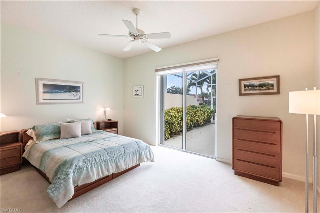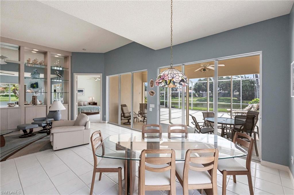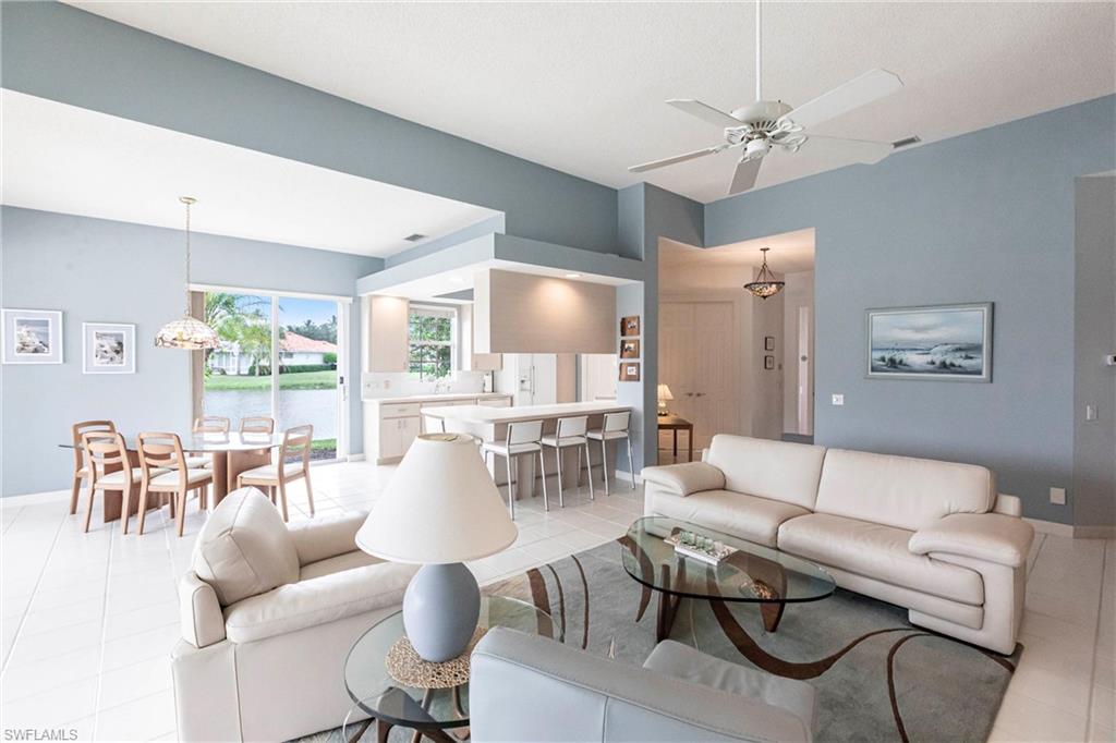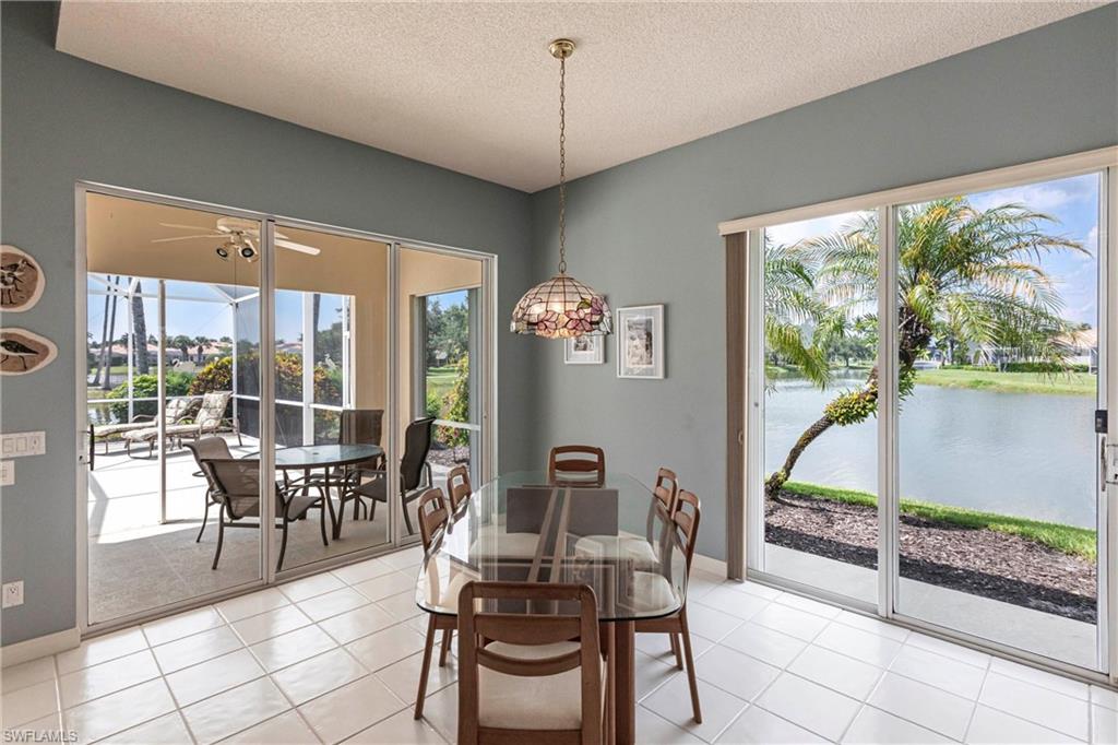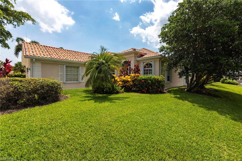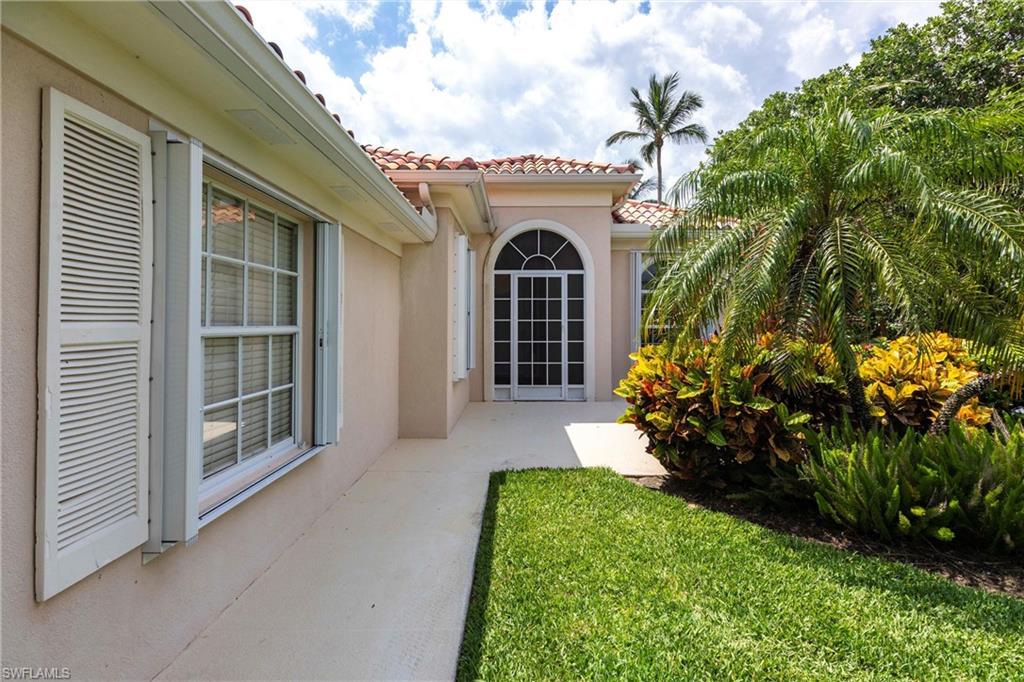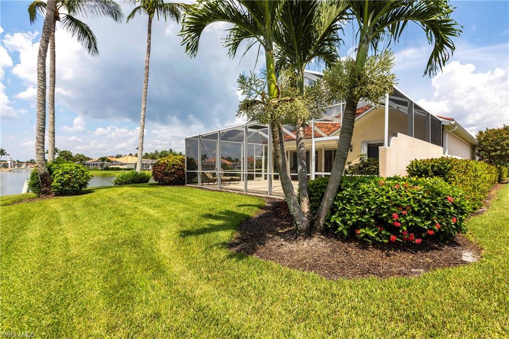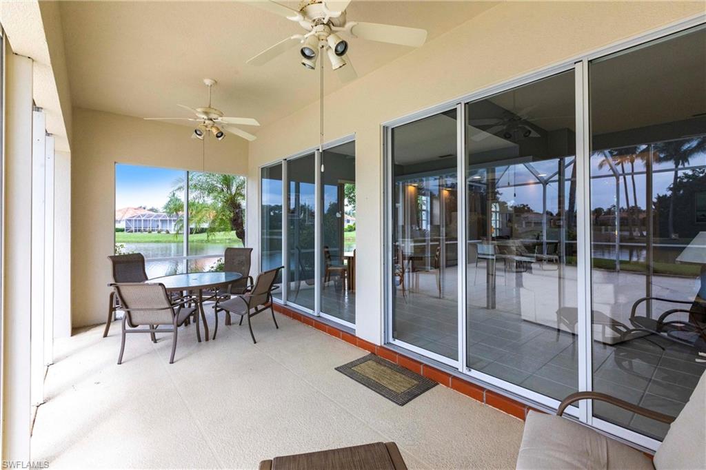 This end of cul-de-sac location is a rare find! It is just like living on an island with spectacular water views on 3 sides! There are special views out each window!! This single family 3 bedroom, plus den, 2 bath home, is the most popular floor plan this builder ever constructed. Features include, an extra large patio with a 2019 screen enclosure, roof was replaced in 2018, full hurricane shutter protection, and an extra long driveway. Village Walk in North Naples is 5 miles from Vanderbilt Beach and 4 miles to the shopping and dining gem - Mercato! Community amenities include 2 heated resort pools, har-tru tennis courts, pickleball, bocce ball, gym with lap pool, on-site restaurant, miles of paved walking paths, and so much more. You will love this special location and living in Village Walk!