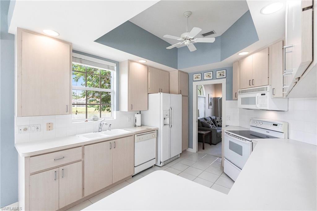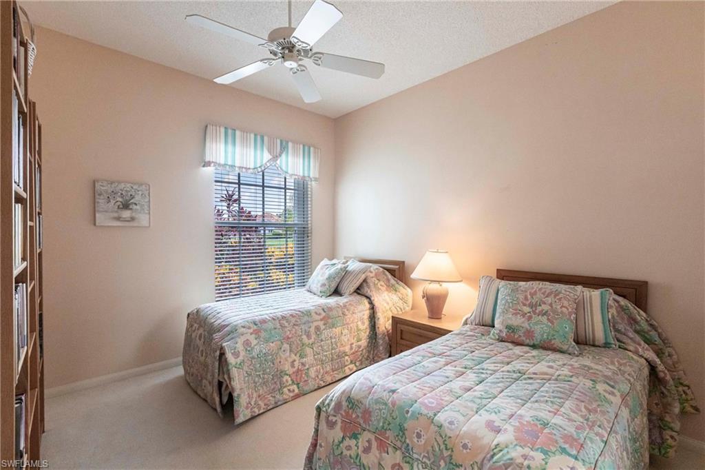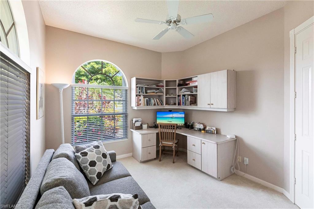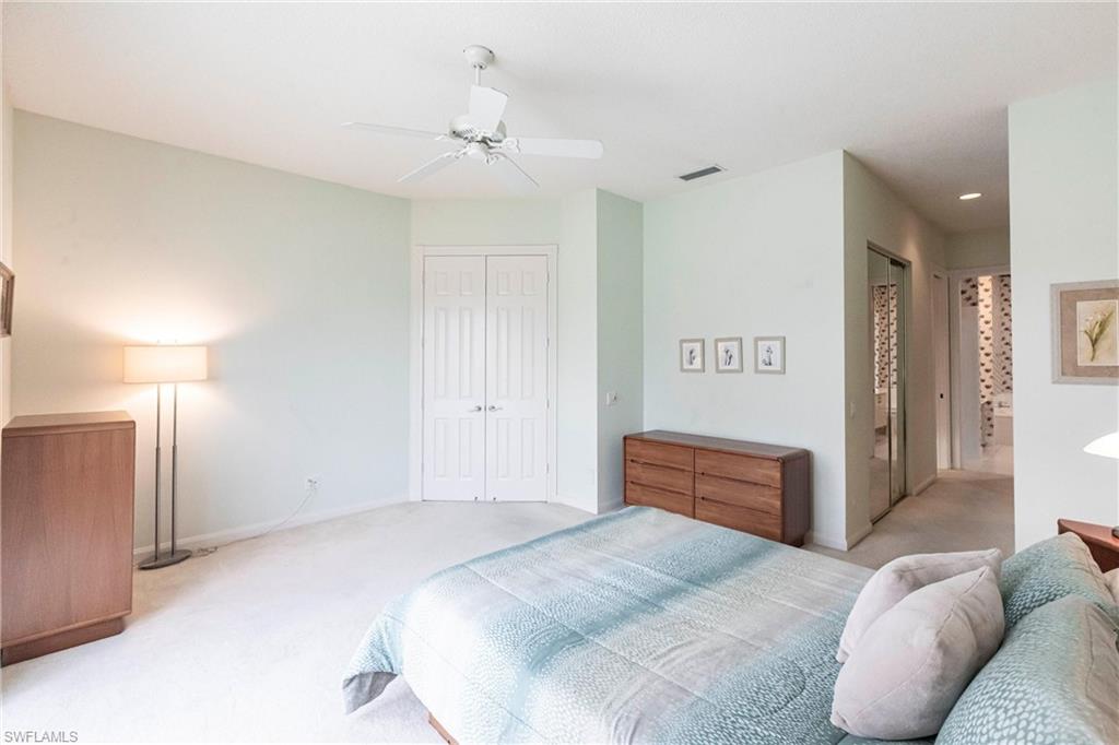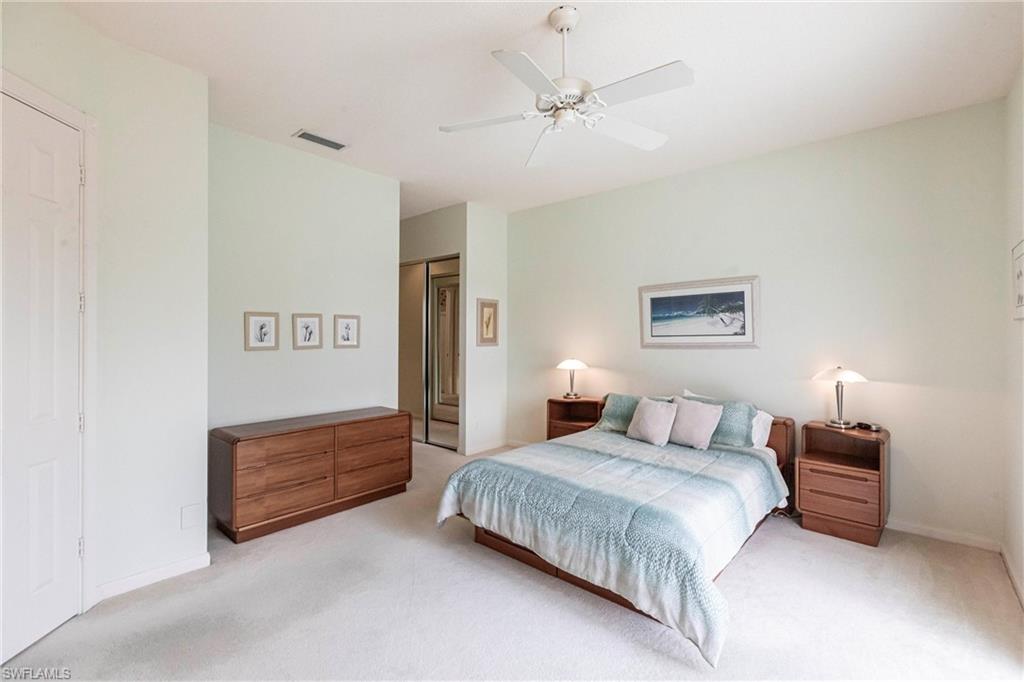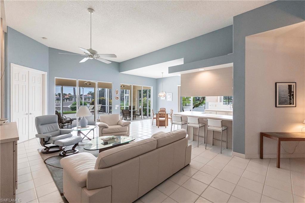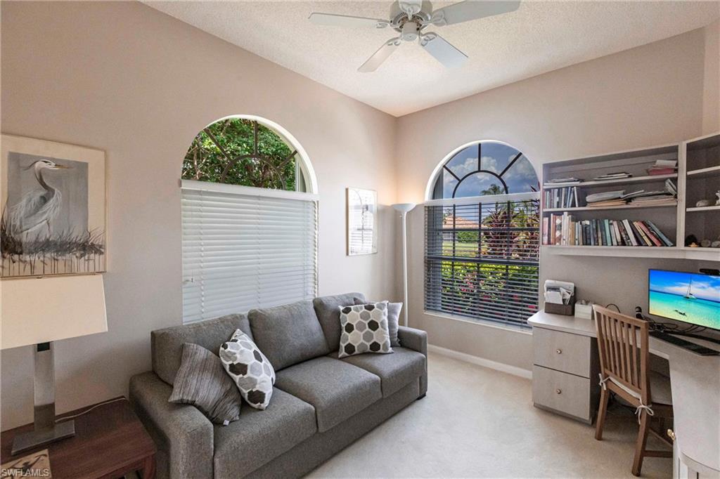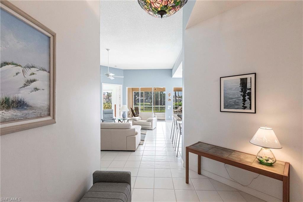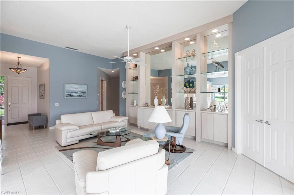 This end of cul-de-sac location is a rare find! It is just like living on an island with spectacular water views on 3 sides! There are special views out each window!! This single family 3 bedroom, plus den, 2 bath home, is the most popular floor plan this builder ever constructed. Features include, an extra large patio with a 2019 screen enclosure, roof was replaced in 2018, full hurricane shutter protection, and an extra long driveway. Village Walk in North Naples is 5 miles from Vanderbilt Beach and 4 miles to the shopping and dining gem - Mercato! Community amenities include 2 heated resort pools, har-tru tennis courts, pickleball, bocce ball, gym with lap pool, on-site restaurant, miles of paved walking paths, and so much more. You will love this special location and living in Village Walk!