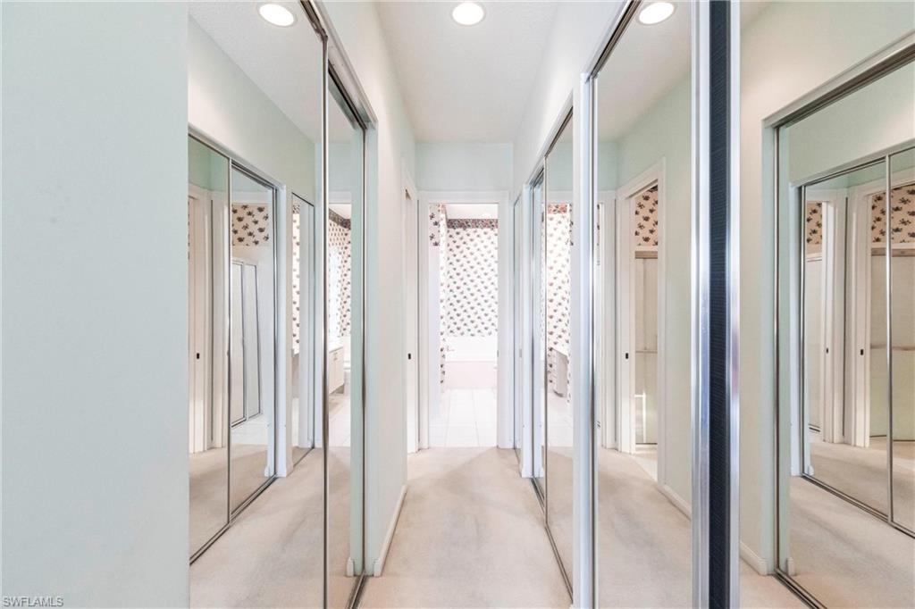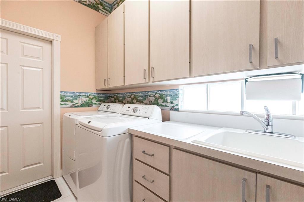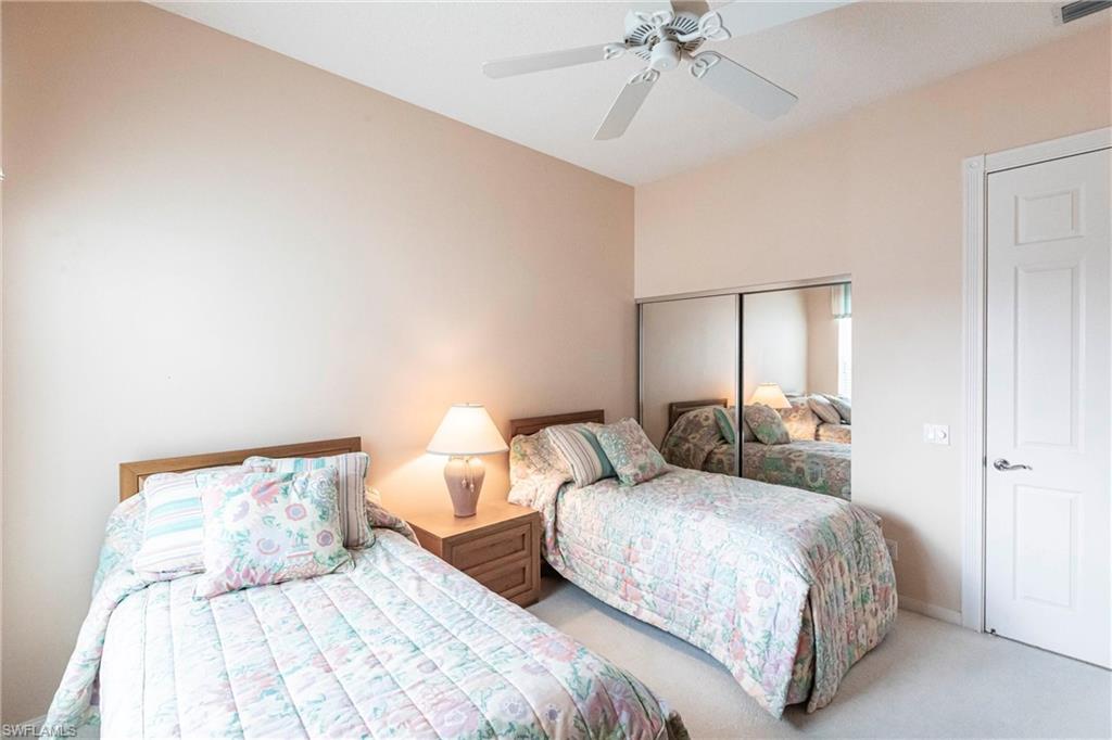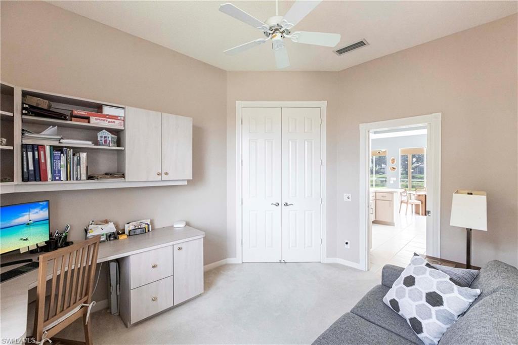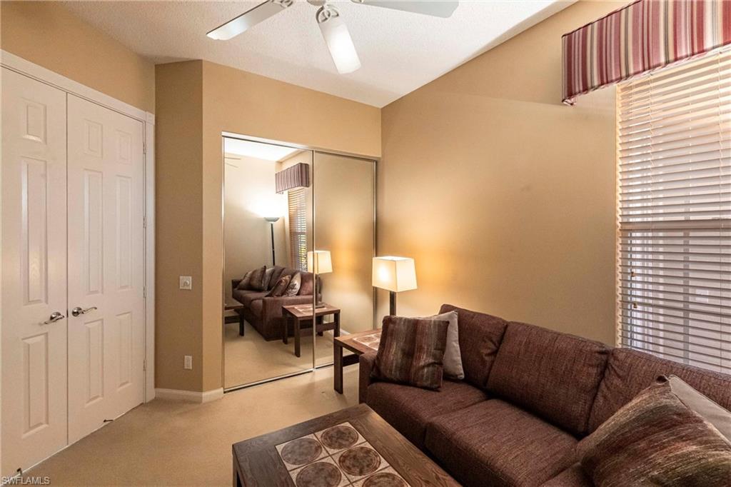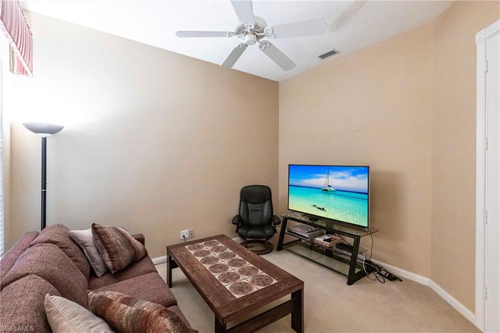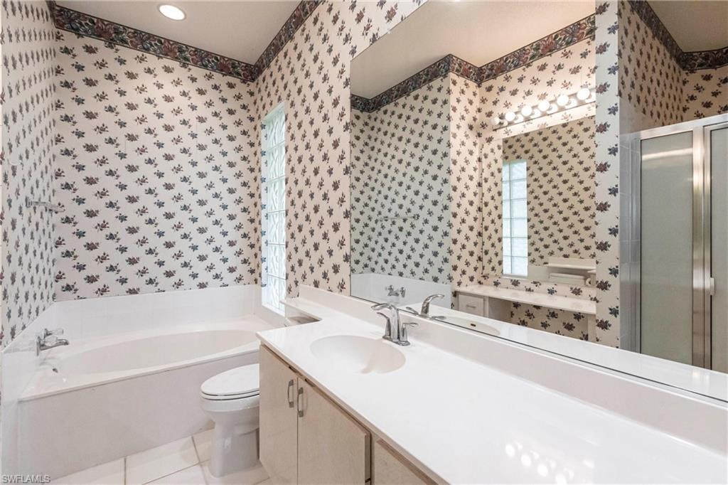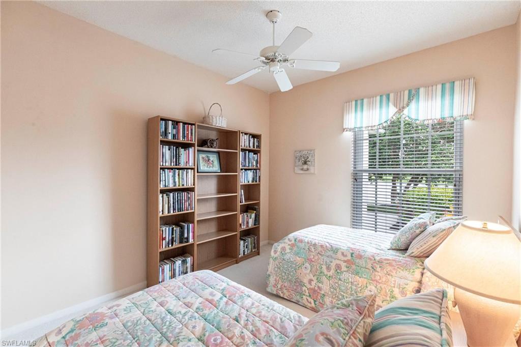 This end of cul-de-sac location is a rare find! It is just like living on an island with spectacular water views on 3 sides! There are special views out each window!! This single family 3 bedroom, plus den, 2 bath home, is the most popular floor plan this builder ever constructed. Features include, an extra large patio with a 2019 screen enclosure, roof was replaced in 2018, full hurricane shutter protection, and an extra long driveway. Village Walk in North Naples is 5 miles from Vanderbilt Beach and 4 miles to the shopping and dining gem - Mercato! Community amenities include 2 heated resort pools, har-tru tennis courts, pickleball, bocce ball, gym with lap pool, on-site restaurant, miles of paved walking paths, and so much more. You will love this special location and living in Village Walk!