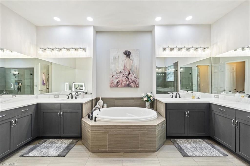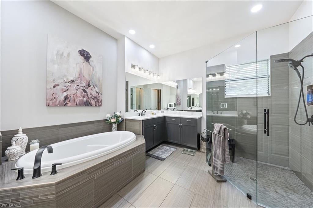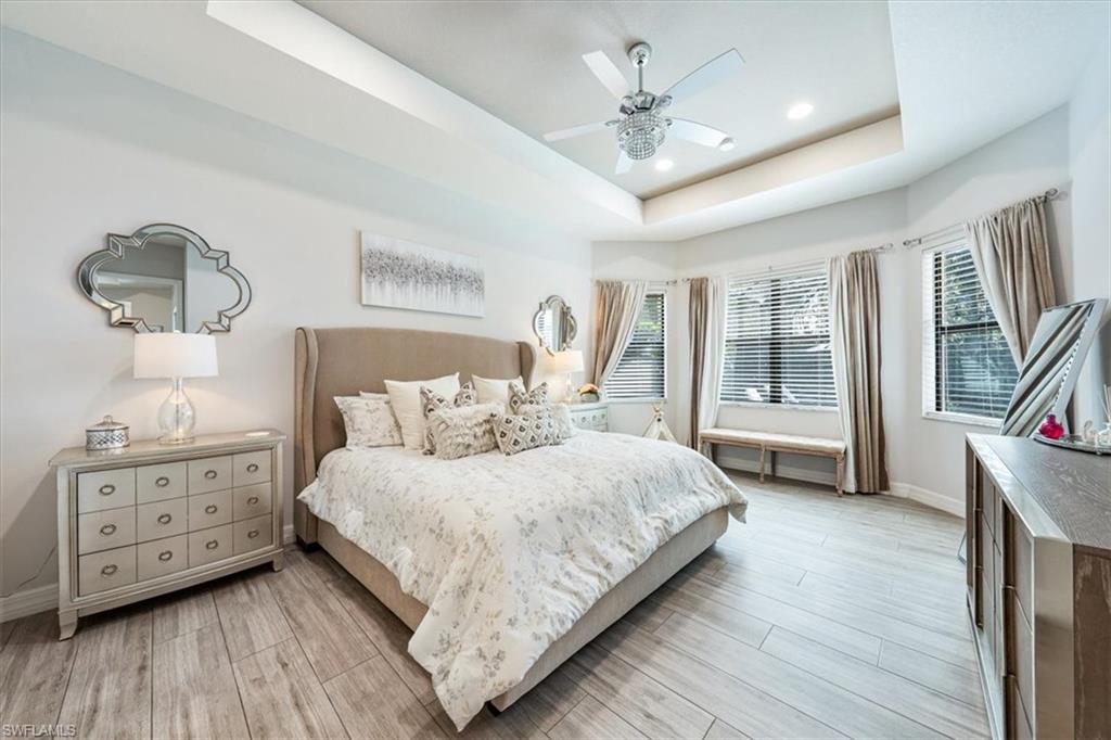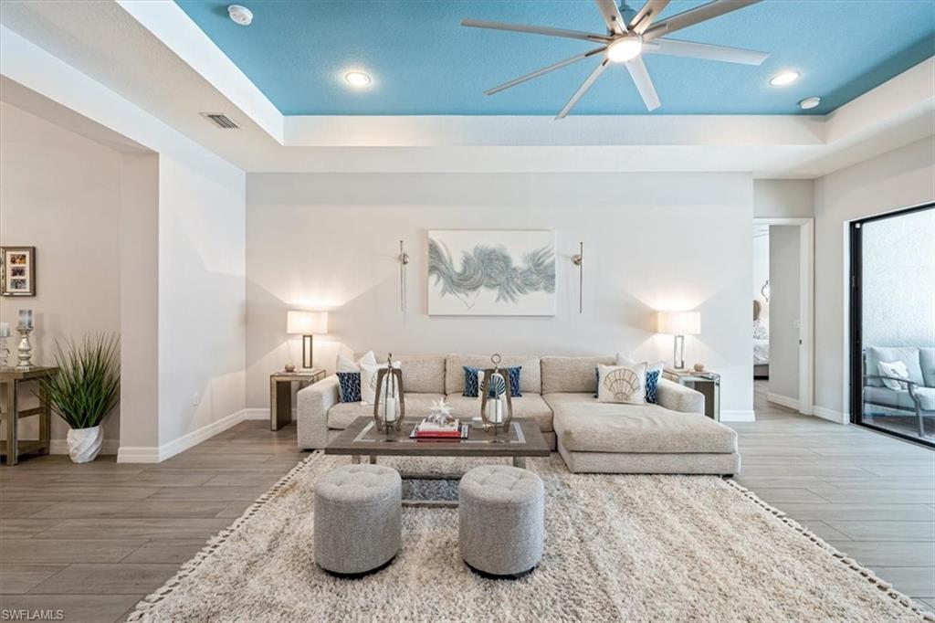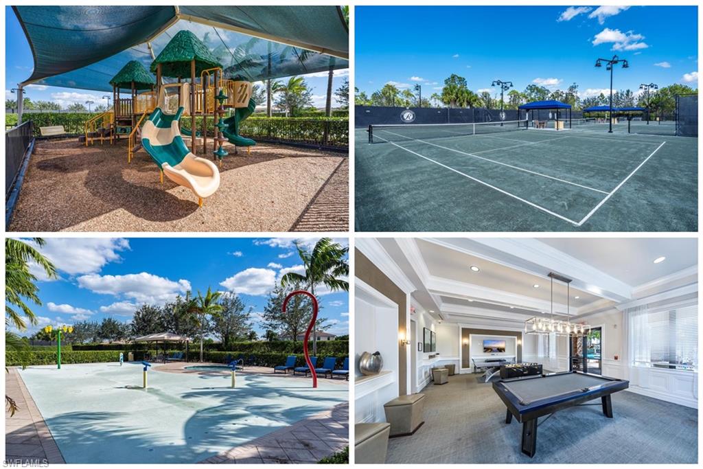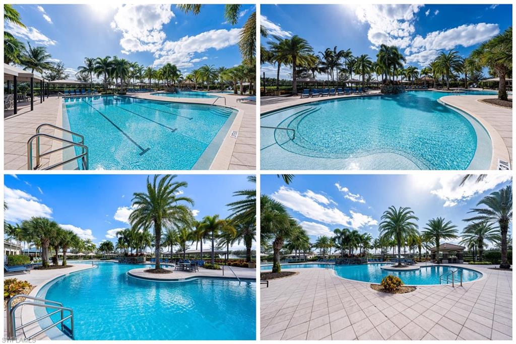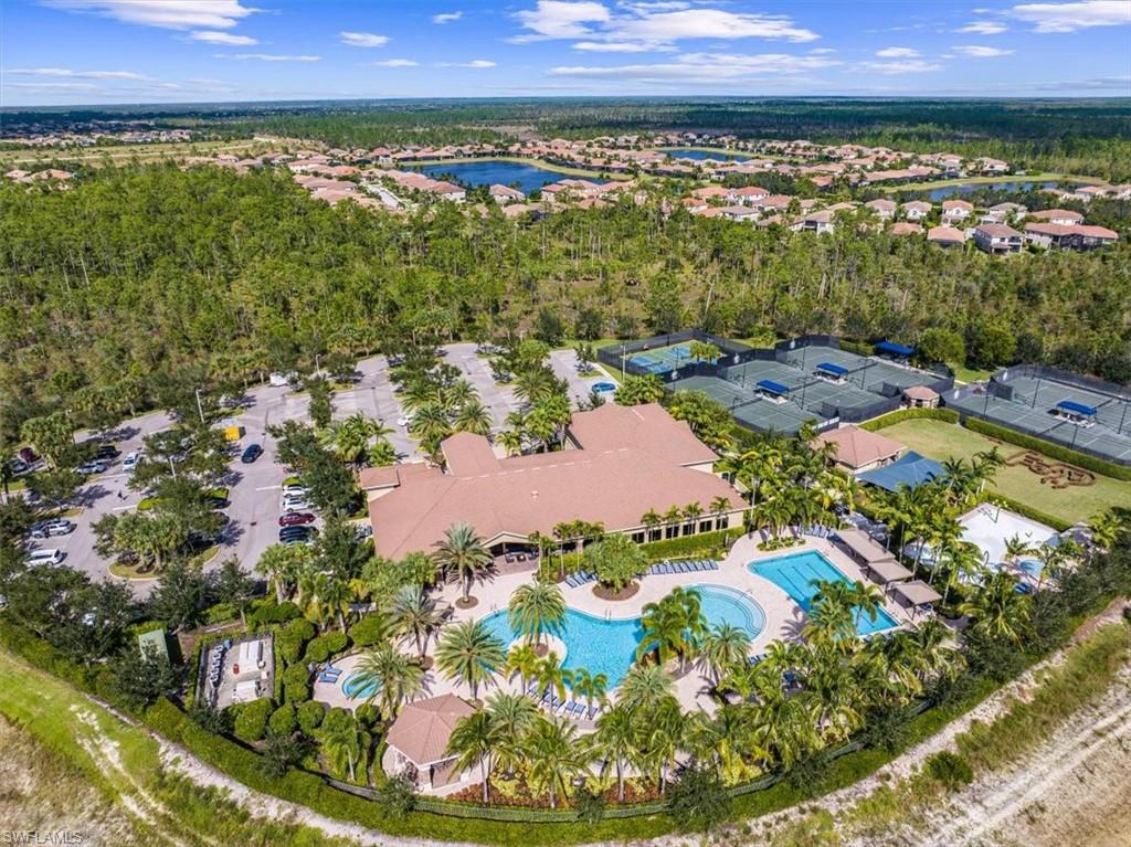 PRICED TO SELL! The largest single-story floor plan in Riverstone... the rare Drake Model! At 3,360 square feet, this sprawling home features 4 large Bedrooms, one in each corner of the home, PLUS a separate Den or Office and 4 Full Bathrooms. The luxurious layout is a perfect blend of elegance, size and comfort. With a split 3-Car Garage and huge horseshoe shaped driveway, there is always ample room for guests. This updated home offers spacious living with meticulous design. The kitchen features quartz countertops, stainless steel appliances, and a reverse osmosis water system. Two separate living areas provide flexibility for gatherings and relaxation, while the large den with bay window offers a private retreat, office, or separate media Room. The master suite boasts a newly remodeled bathroom with walk-in shower, soaking tub, & two walk-in closets. Step outside to your own completely private oasis with a heated pool, enclosed lanai, and beautifully landscaped view. NEW Pool Pump & New A/C Unit July 2025. Located in the active and ever popular Riverstone community, you are a short 10 minute drive to white sandy beaches and have access to some of the best schools and restaurants in Naples. This gated community offers a resort-style pool, lap pool, splash pad, jacuzzi, tiki bar, tennis & pickleball, indoor & outdoor basketball courts, playground, fitness center, activities director, yoga room, billiards game room and 24 hour security. Welcome Home!