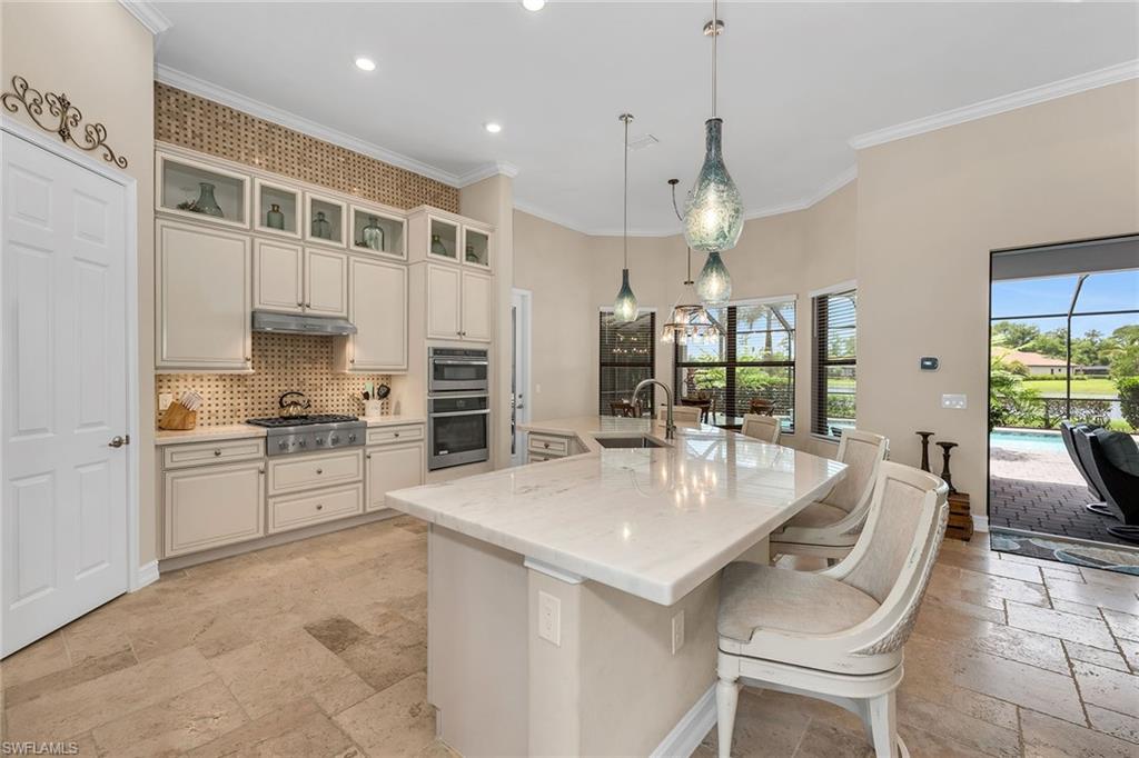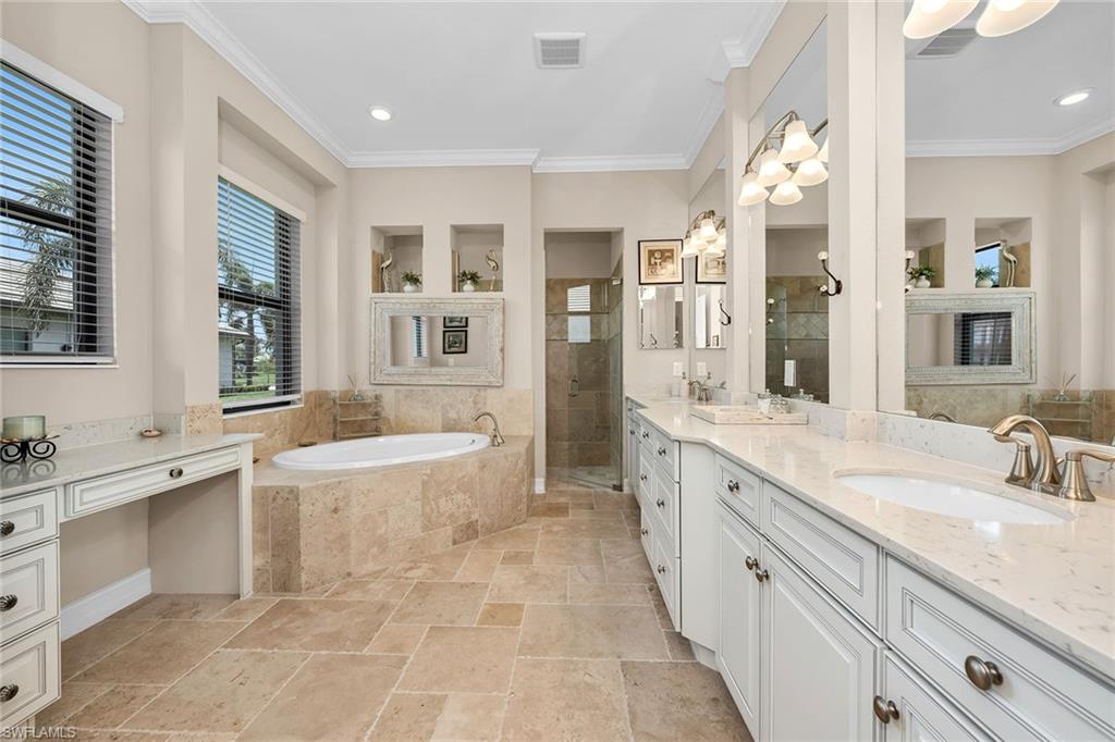 A once-in-a-lifetime opportunity to own a piece of paradise in one of the sought-after coastal communities in the world. Quietly tucked along one of the most beautiful and desirable streets in North Naples' LaMorada gated community, arrives a meticulously cared for single-story custom estate home featuring jaw-dropping panoramic lake views, nearly one-half-acre of lushly landscaped grounds and coveted rear southwest exposure for picturesque sunsets all year long. Available for only the second time ever, this beautiful home boasts four spacious bedrooms, three full baths, an outdoor entertainment oasis featuring a custom heated saltwater pool and spa, and one of the largest lots in any gated community in the city of Naples. Other features of this newer construction masterpiece include a chef’s kitchen with natural gas cooking, guest en suites for absolute privacy, hurricane impact windows and doors throughout, storm smart shutters, a new generator, large volume ceilings, an oversized brick paver entry driveway with three-car garage and offered fully furnished/turnkey for total simplicity and immediate enjoyment. Within walking or biking distance to Founder’s Square, numerous golf courses and endless fine dining, shopping and entertainment opportunities, LaMorada offers an unmatched experience of community living with endless socializing opportunities and low HOA fees. Residents of LaMorada also enjoy access to an expansive and engaging clubhouse, tennis courts, pickleball courts, a state-of-the-art fitness center, private theatre room and more. 116x221x70x202.