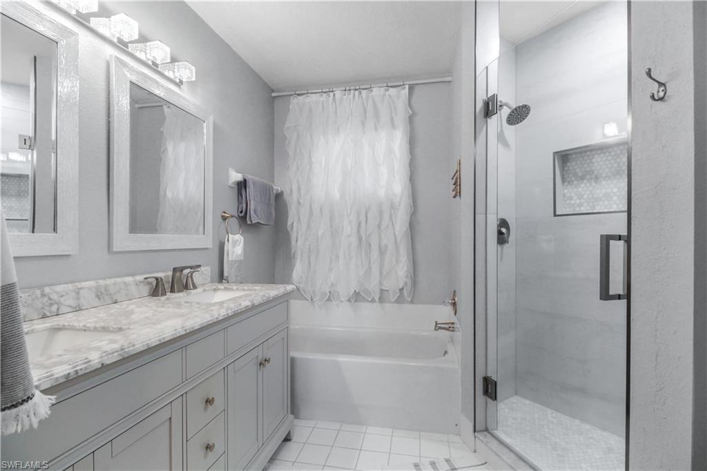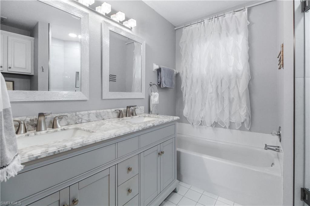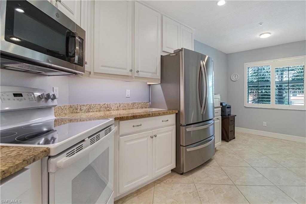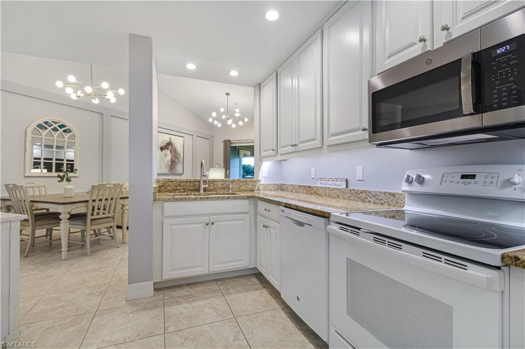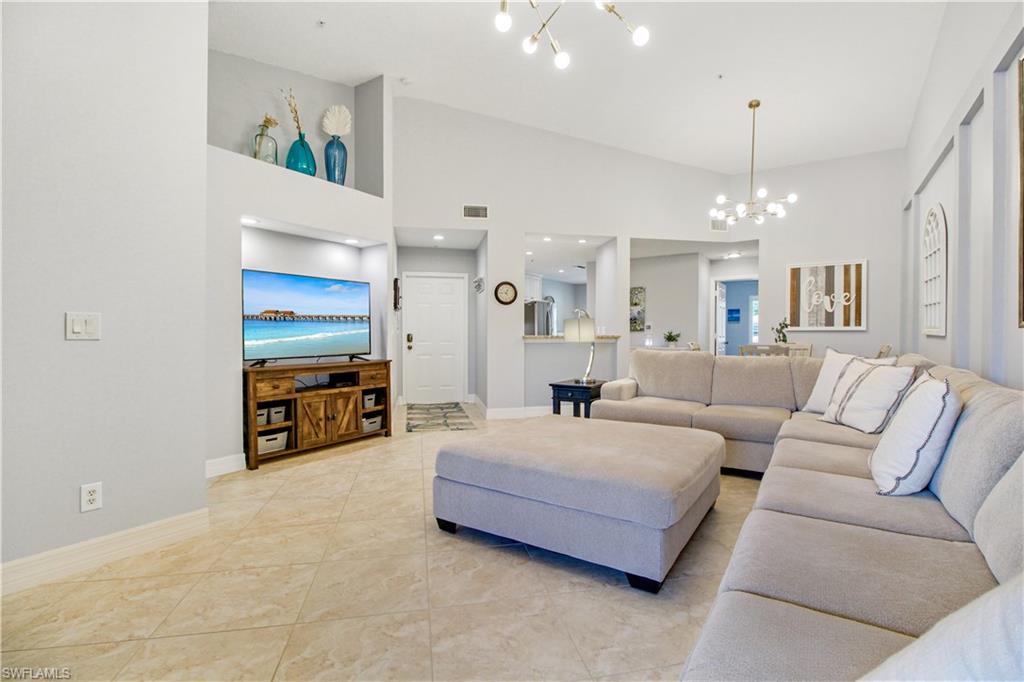 Beautiful lakefront move-in ready condo in the highly sought-after gated community of Huntington Lakes in North Naples! This furnished home is perfectly situated within the community just steps from the sparkling satellite pool, and your own detached garage. As you step inside this freshly painted 2nd floor home, you are welcomed by the soaring ceilings, modern light fixtures, and light and bright open floor plan. The large gourmet kitchen features plenty of cabinets and counter space, a spacious eat-in area, and a pantry. Impact glass sliders lead you to incredible lake views from your Florida room/lanai which allows for year round enjoyment. The living room, dining room, and gourmet kitchen combine to make the perfect place to entertain. The large master bedroom suite also enjoys the stunning lake view, and the lavish master bath has dual sinks, quartz counters, large soaking tub, and newly renovated shower. The community offers incredible amenities including a clubhouse, sparkling swimming pools, tennis and bocce courts, and fitness center. This tastefully decorated home is being sold furnished, and we highly recommend you schedule your private tour of this rare property quickly. Huntington Lakes is conveniently located near incredible sugar sand beaches, top a-rated schools and world-class shopping and dining.