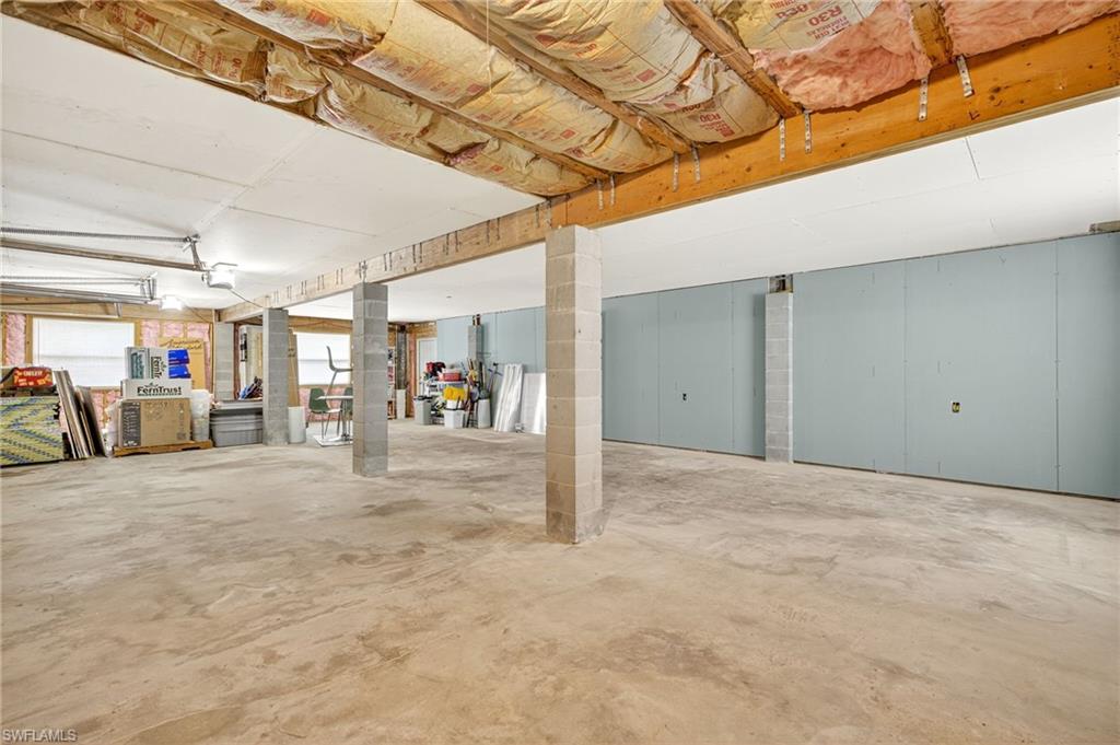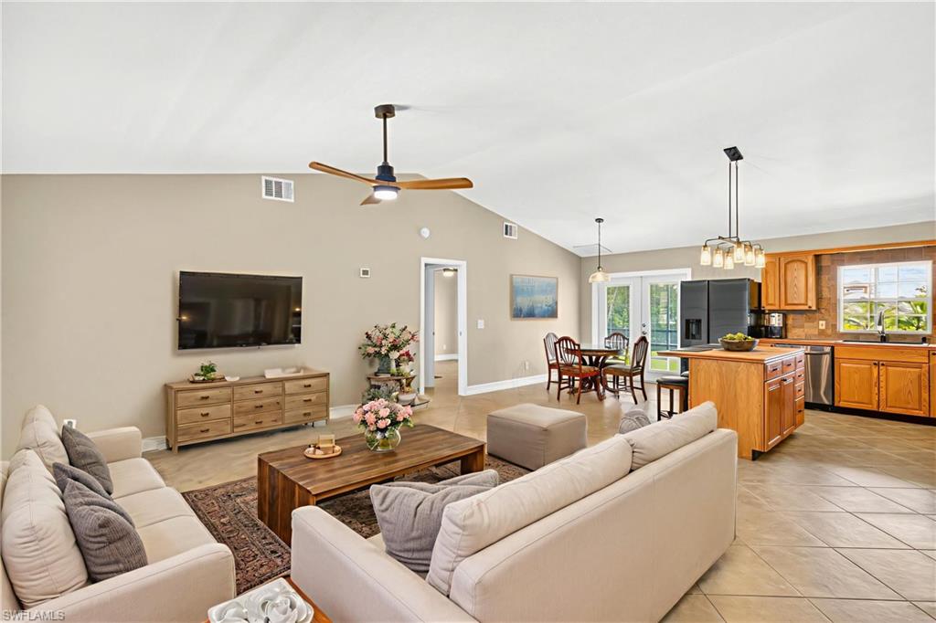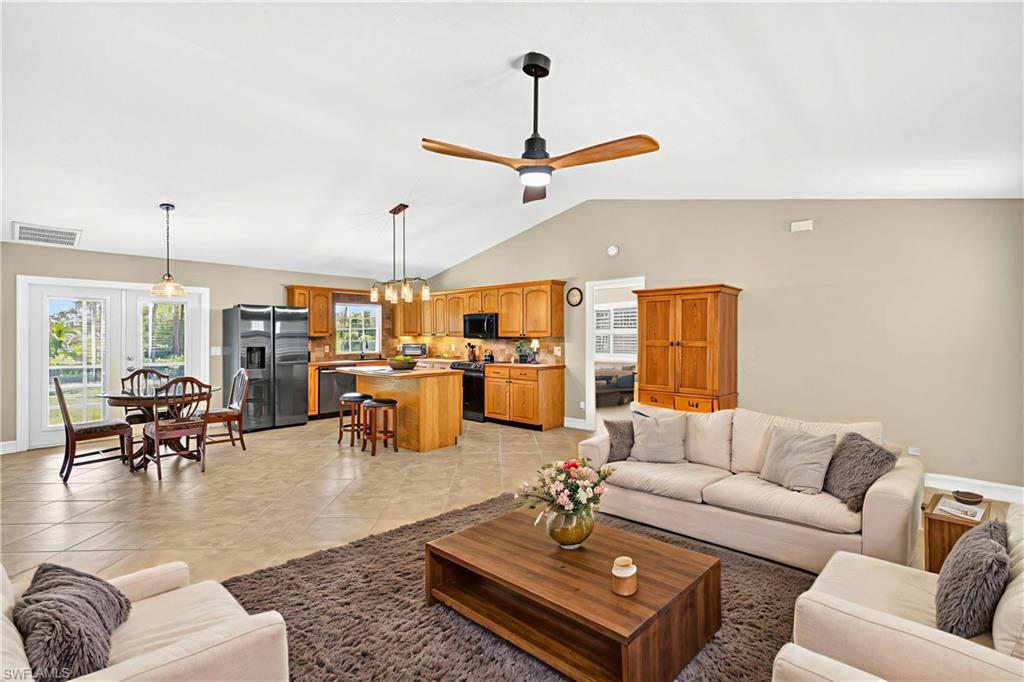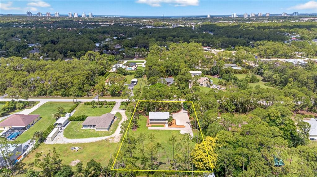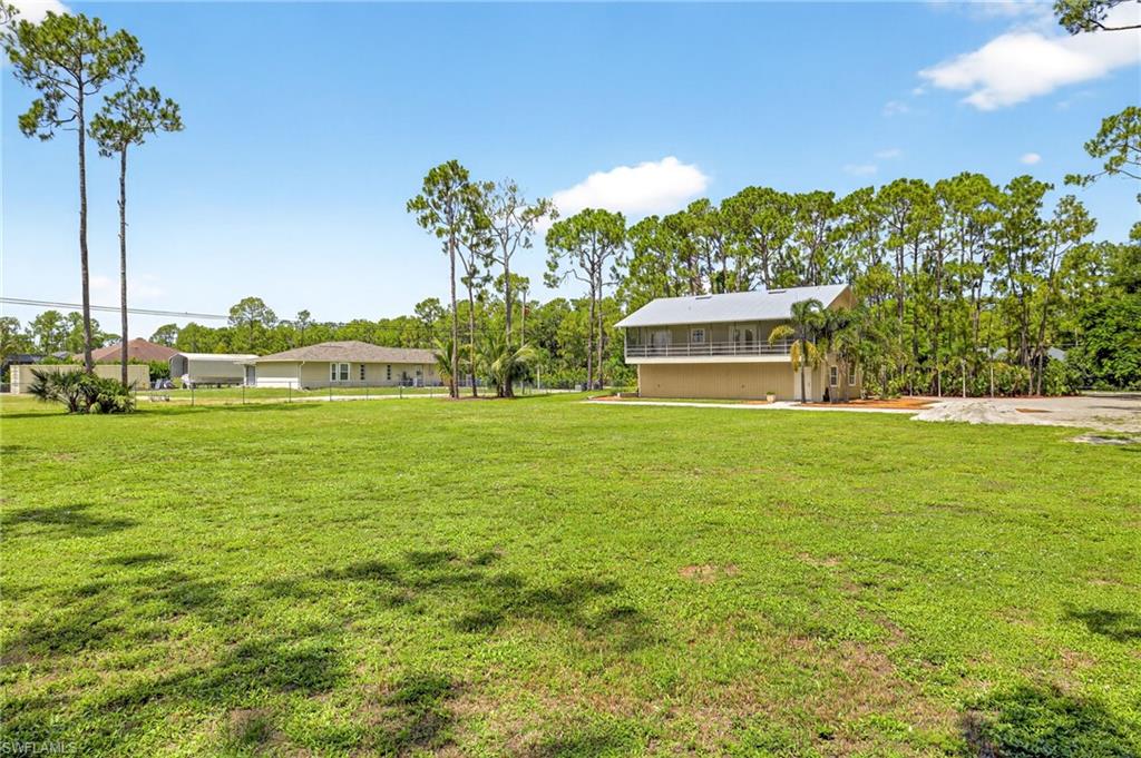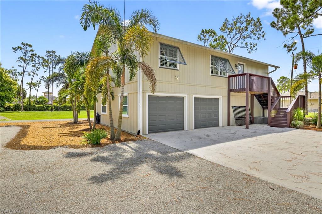 "I LOVE LUCI!!!"...and with its super cool and cute as a button 3 bedroom, 2 bath, 2 car garage home on a cleared and park-like 1.25 ACRE LOT who wouldn't?? This one is sure to have you screaming "Luci, I'm home!". Features include solid concrete poured stilt construction; private and powered entry gates, FENCED YARD (except front), lush natural front yard landscape, manicured lawn, tons of parking, gravel RV pad with septic connection, and did I mention NO HOA!!! That's right, DO WHAT YOU WANT WITH YOUR PROPERTY! The possibilities are limitless! As for the home, features include desirable split bedroom floorplan, soaring tall ceilings, porcelain tile floors throughout (no carpet), updated kitchen with black stainless steel appliances and center island bar; wonderful dining area with views to the backyard, large primary suite with access to the lanai and beautiful en-suite bath with new vanity and floor to ceiling wall tile, large primary bedroom walk-in-closet, 2 spacious guest bedrooms, completely renovated guest bath with convenient combo tub/shower, plantation shutters, upgraded fans and light fixtures, ring security cameras, 100% storm protection achieved through a combination of impact resistant windows and doors, Bahama shutters and storm panels; 2013 METAL ROOF, large closets throughout, low homeowner's insurance policy under $3,000/year, property not in a flood zone and so much more!! BONUS!!!!--> On the first level is an oversized 2 car garage with automatic openers, and BONUS partially finished space of over 1232 square feet ready for your personal finish! The options here are endless and many supplies/materials to finish the space are being left by the sellers to the new owners!! Start living the good life where you have land and the freedom to do the things you have always wanted! Have your toys, your huge pool, your sports courts, your boat, RV, firepit, outbuildings, you name it!! This home is centrally located less than a mile to Tamiami Trail and super close to the area's best shopping, dining, entertainment, the action and excitement of Downtown Bonita Springs, white sand beaches and more!! Life the peaceful life while maintaining the convenience of a central location!! Call for your private showing today!! AC AND DUCTWORK REPLACED 2020. HOT WATER HEATER REPLACED 2021.